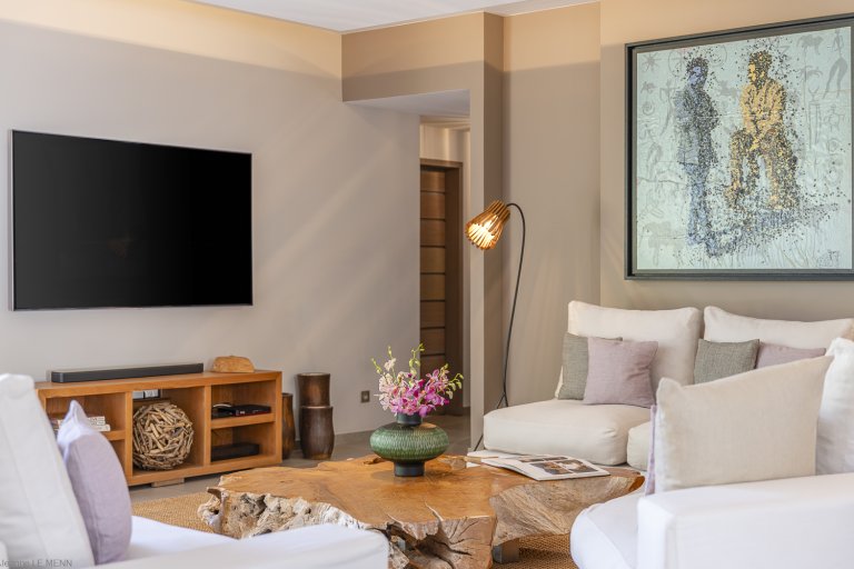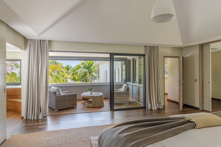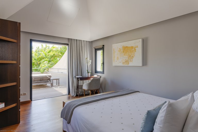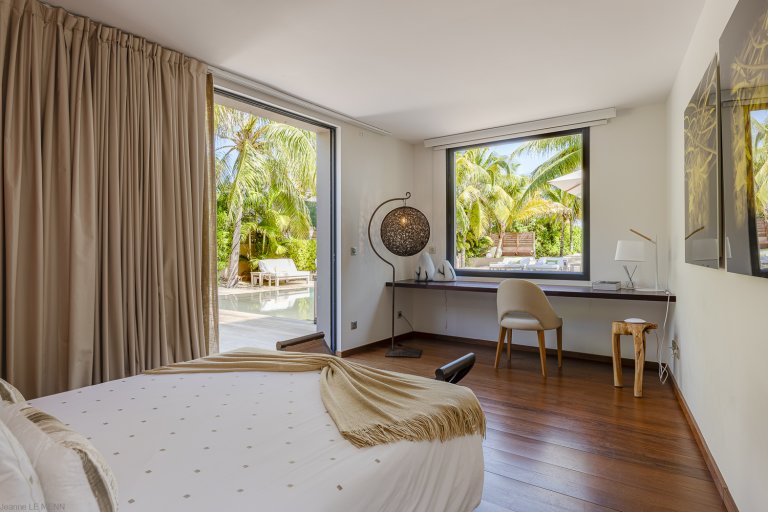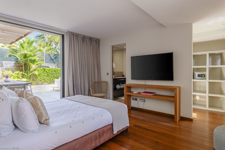 Bed: Full Bed • En-Suite Bath • Dressing Room • Safe • Direct Access to Terrace and Pool • Private Entry