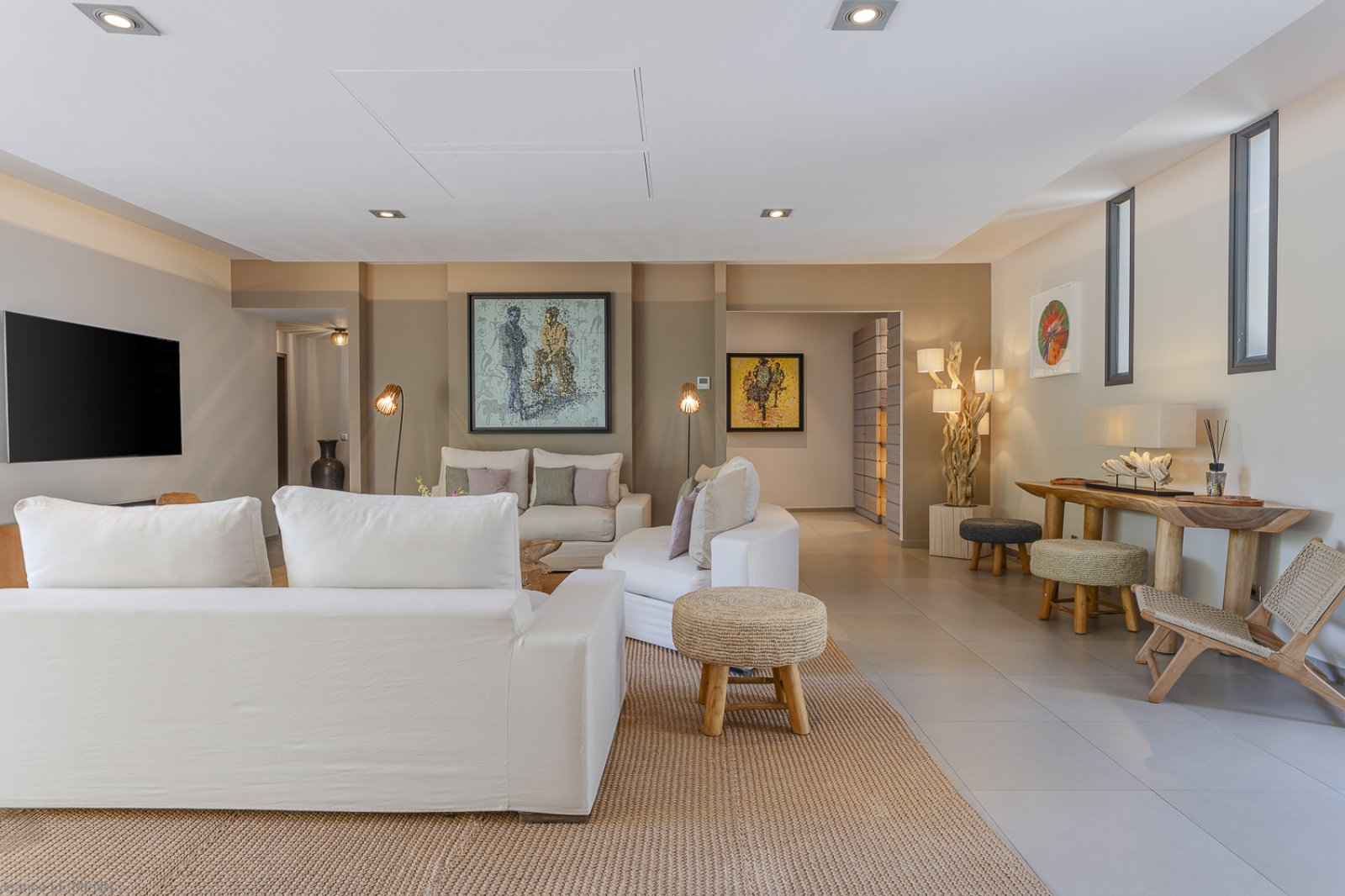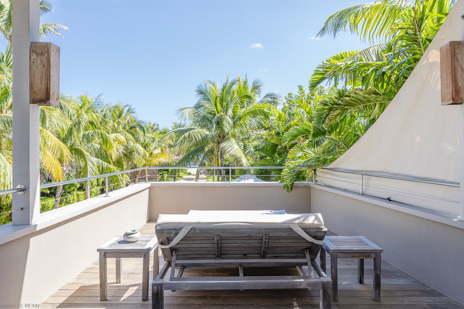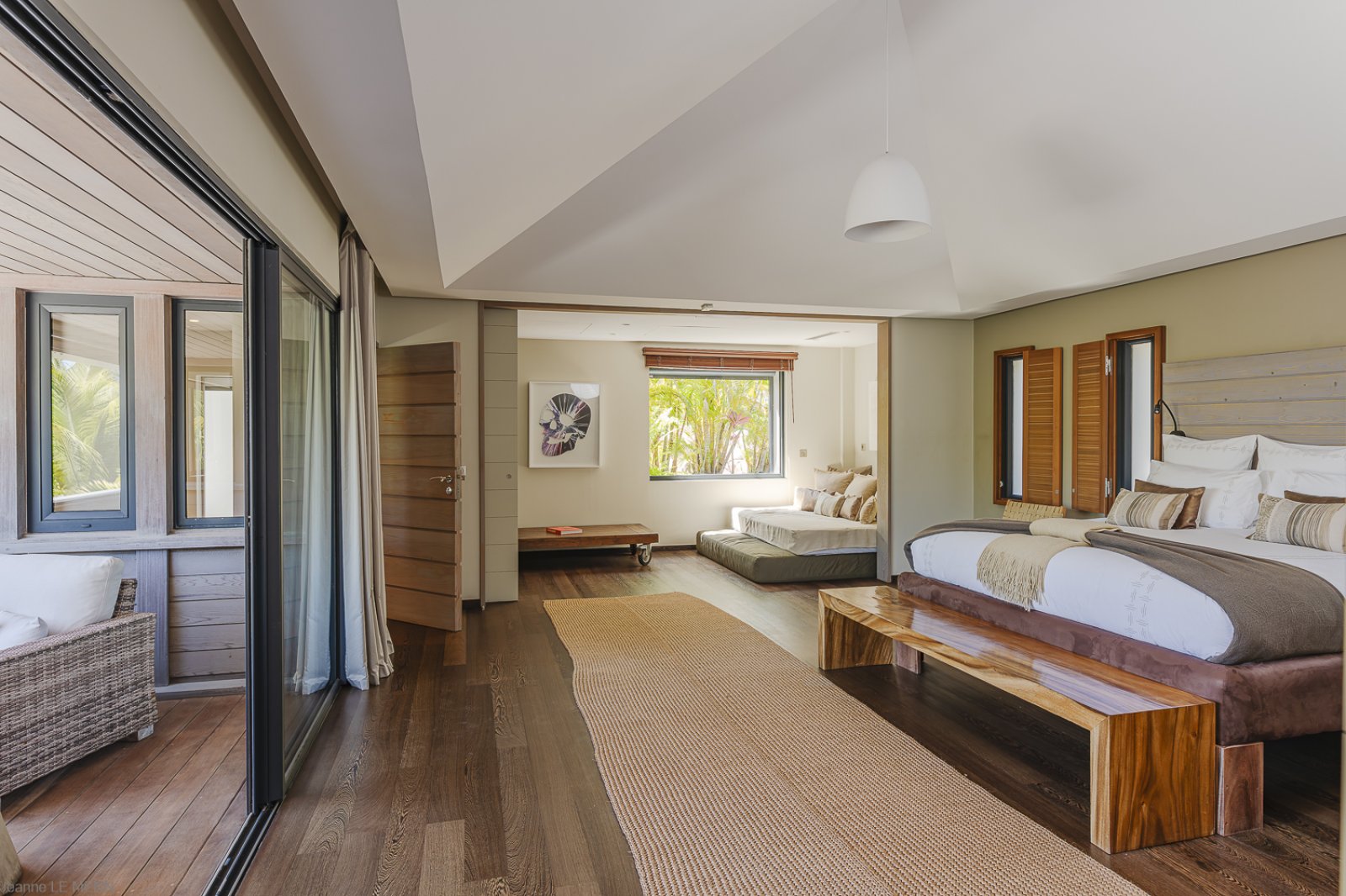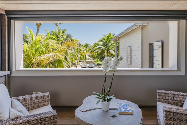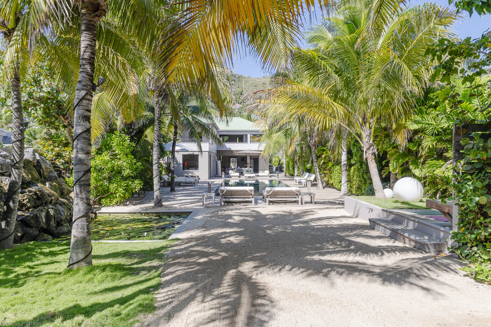 Tucked behind the dune and among coconut palms just steps from the water in Anse de Cayes, Villa K (VLK) adds another jewel to the rare selection of top-level beachfront properties on the island. Recently constructed by the renowned St. Barth architectural design firm of Patrick Raffeneau, Villa K is an exceptional property both inside and out. Well suited to a relaxed yet comfortable tropical lifestyle, the living area, kitchen and outdoor dining area are all contiguous, but the interior space can be closed and fully air conditioned when desired. The kitchen is equally well adapted to family meals or to catering for parties, with professional appliances and a large pantry with a second refrigerator and a Leibherr wine-storage unit. The living area offers comfortable seating, a high-end home theater system and elegant decor. Outdoor dining for ten is pleasant for breakfast and an absolutely magical location at night, beneath the palm fronds and in the dramatic lighting of the landscaped garden.