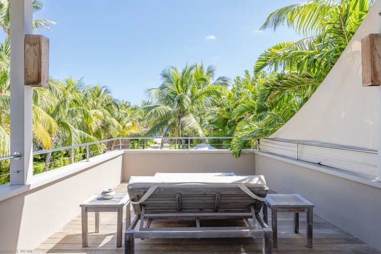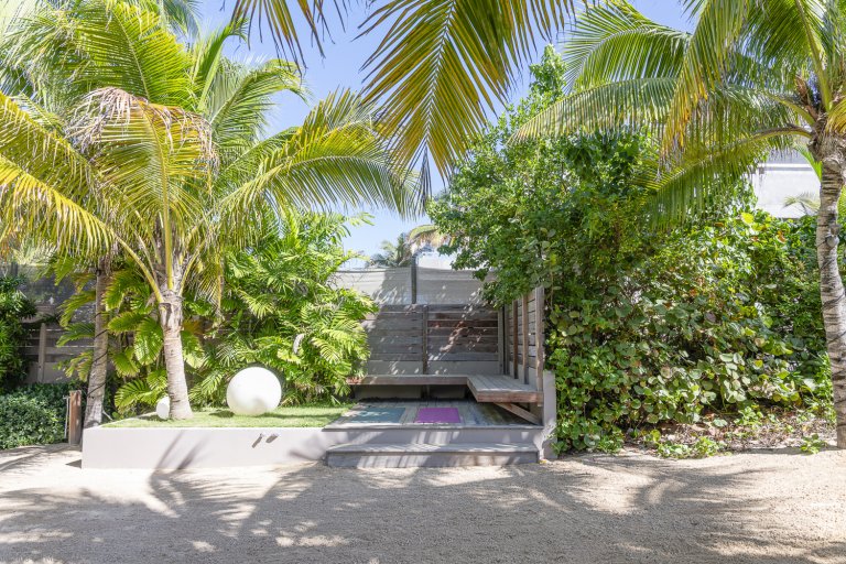 The expansive hardwood deck surrounds an 18-meter, heated mirror pool, with plenty of chaises and daybeds for relaxing in sun or shade. Between the deck and the dune, a natural stone fountain and koi pond help create a soothing atmosphere. The view from the short, sandy path over the dune to the beach will put a smile on your face after only a few steps. Villa K makes the perfect location for families, groups of friends traveling together, and wedding parties.