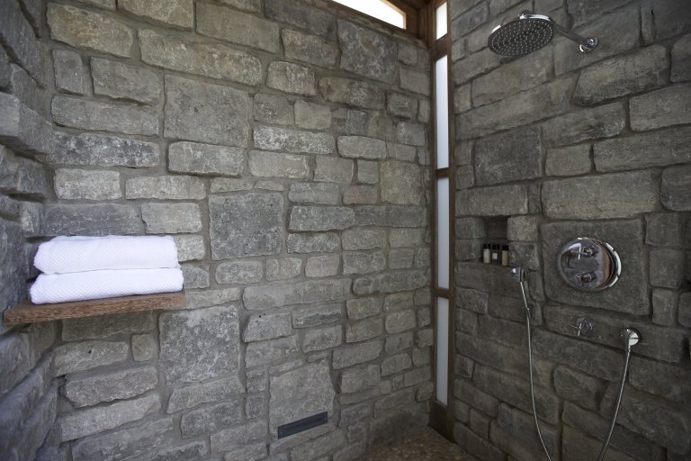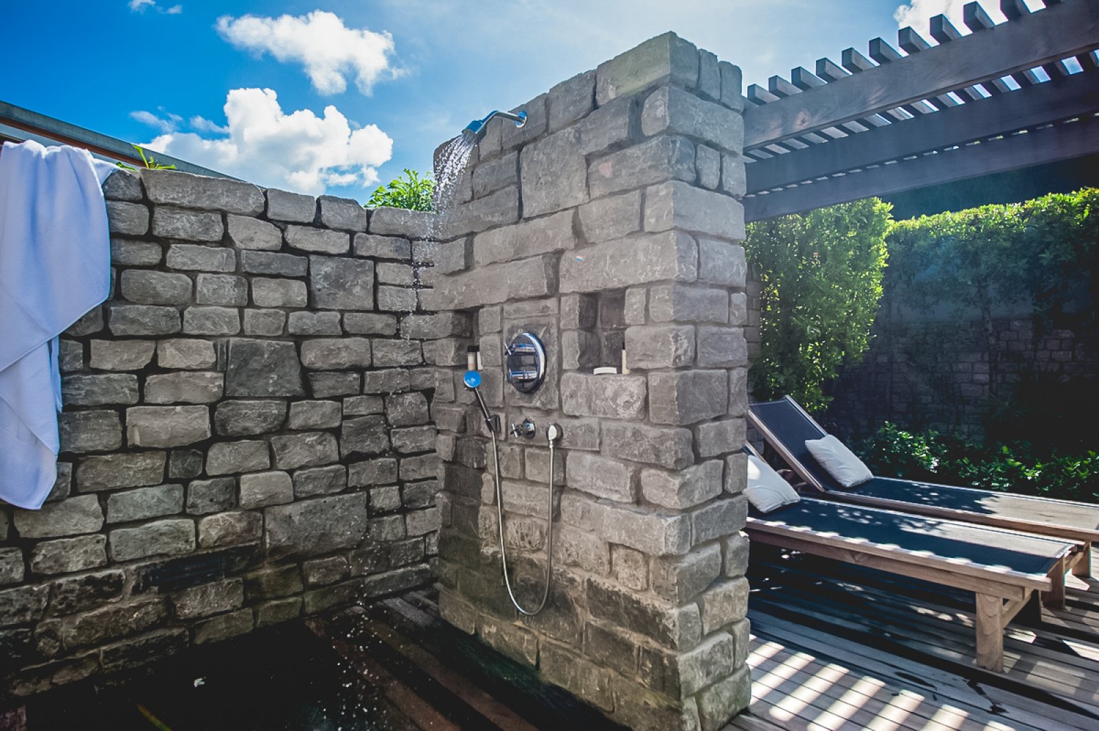 Of course, there's an infinity pool, and what a pool it is! An automatic misting system will keep you cool as your catch some rays on the nearby chaise lounge, enjoying the brilliant surround of pinkish-red bougainvillea blossoms. A Nautilus-shaped outside bath sports a handy, extra-wide shower head, ideal for rinsing your hair and letting it dry au naturale in the soft Caribbean breeze.