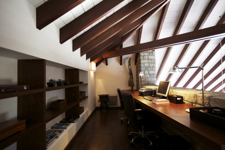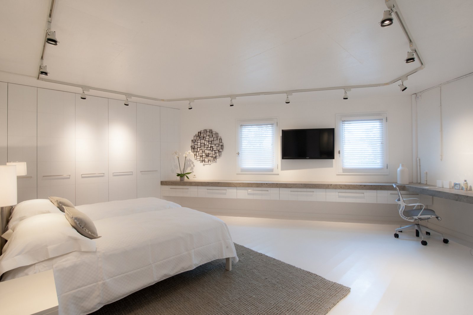 The open-to-the-home professional grade kitchen gives culinary chefs (or wannabes!) a place to play and create. A Viking range top and Delonghi oven, as well as Multiple SubZero refrigerators, won't disappoint. Gather a crowd! The adjoining eating area with a long, elegant dark wood lacquered dining table seats eight family members and guests. There's even a modern home office in the loft area that soars up from living and dining area.