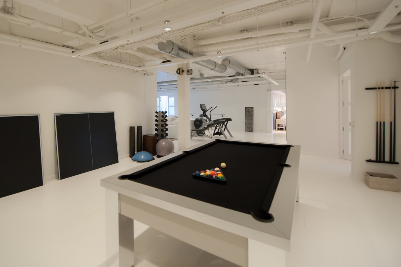 2 Sofas • Flat-Screen, High Definition, Satellite, Apple TV Service TV • Blu-ray Player • Ping Pong Table • Pool Table • Weights • Elliptical Machine
