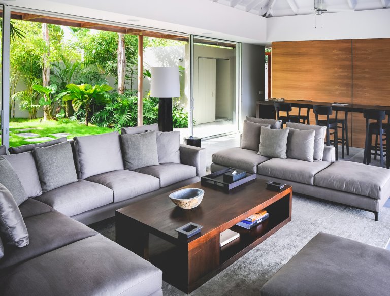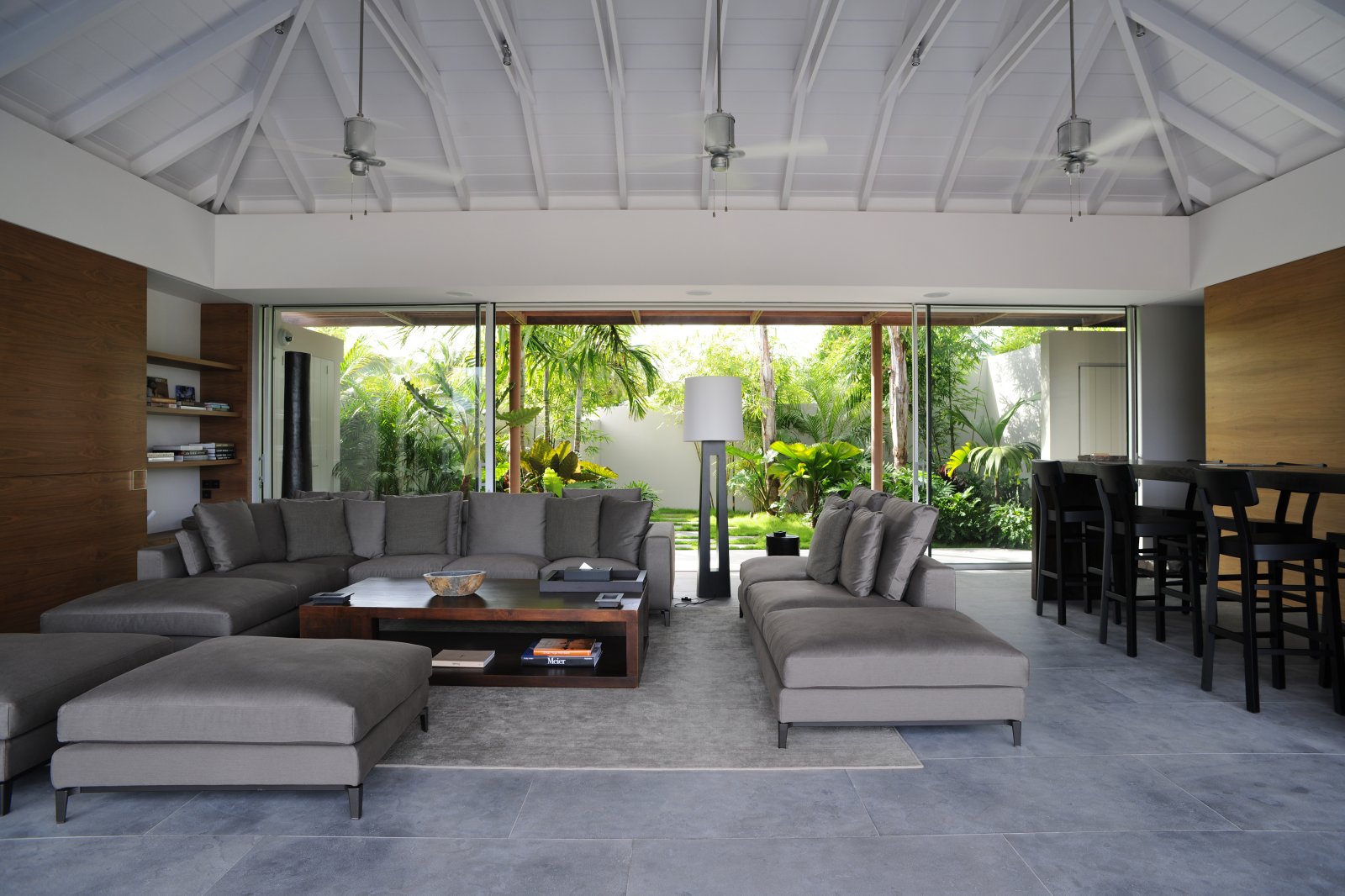 Clean and crisp lines, natural woods, and neutral colors highlight the design scheme of this faultless St. Barts villa. St. Barts Modernist Villa delivers contemporary high-tech touches, seclusion, and expansive views across the remarkable Anse des Cayes.