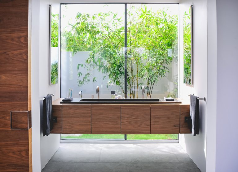 Stepping through the glass doors of the main floor master leads to a private deck and garden; a fantastic spot to engage in morning rituals with a beverage made in your in-room espresso maker. The highlight of the stunning garden is an outdoor stone bathtub ideal for a long hot soak under the stars.