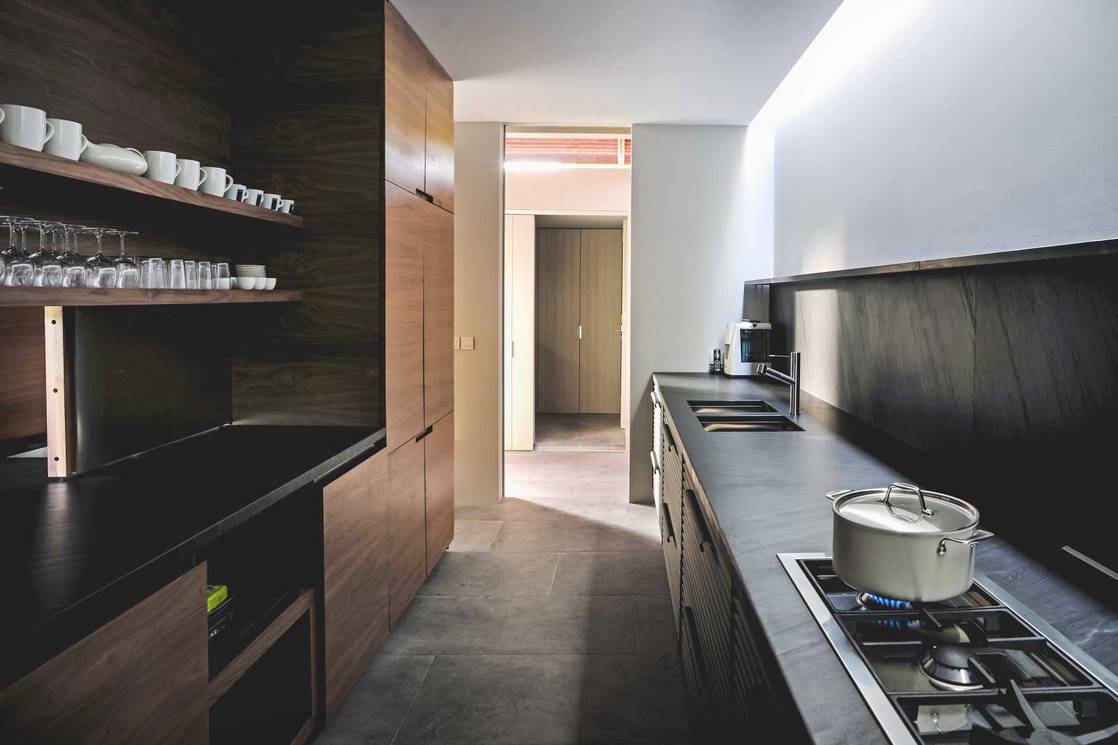 Flawless design continues into the fully stocked kitchen where the marriage of form and function are irrefutable. Pristinely kept and organized, this space offers all of the conveniences of your home kitchen, but in a way as not to interfere with the polished look and feel of the rest of St. Barts Modernist Villa. Abundant counter space, modern appliances, and culinary tools make this a perfect area to fix a family feast.