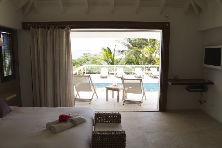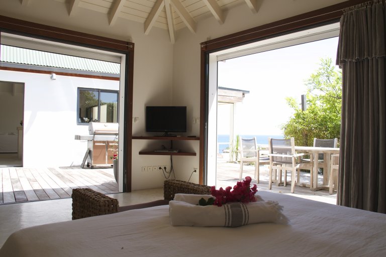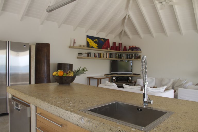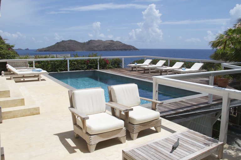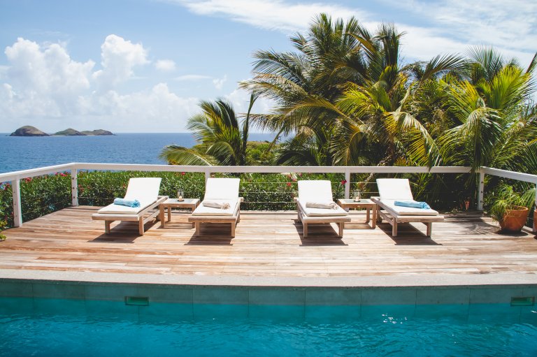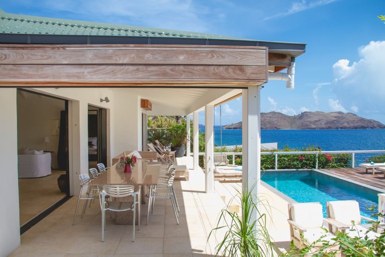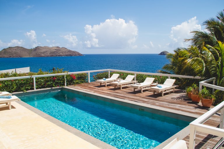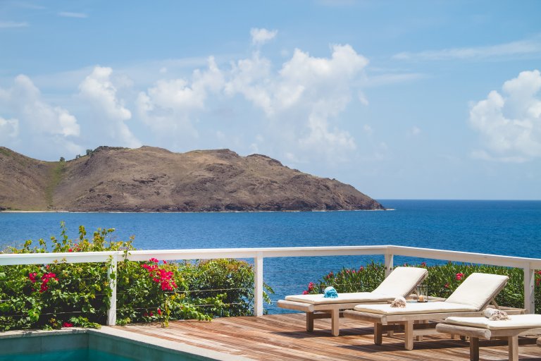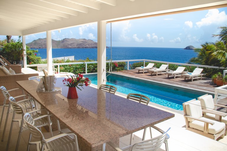 Perched just steps away from the blue waters of the Caribbean, Villa Caribbean Blue is the ultimate St. Barts vacation destination. The private villa, located in the exclusive Anse des Lezards neighborhood, is a study in luxury. Everything at Villa Caribbean Blue from the outdoor terrace to the interior rooms is designed with a clean, upscale aesthetic. The secluded, peaceful location of the ocean-view villa invites guests to relax in their own personal paradise. Spend your Caribbean vacation luxuriating in the privacy of Villa Caribbean Blue and enjoying the crystal clear waters of nearby Flamands Beach.