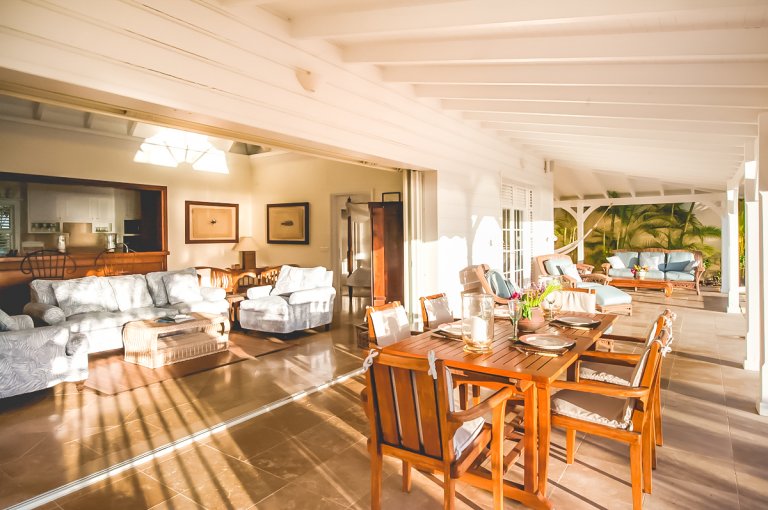 You can open doors to the terrace and enjoy the Caribbean breeze and a