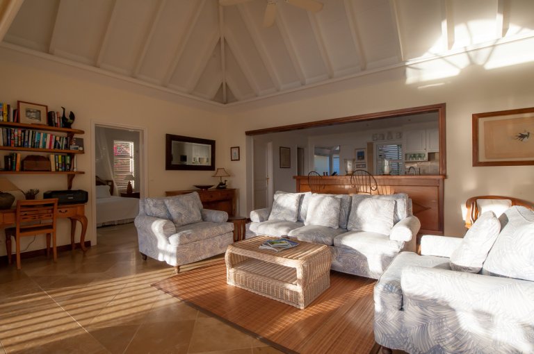 This Caribbean villa also offers plenty to do inside. The ceiling fan in the