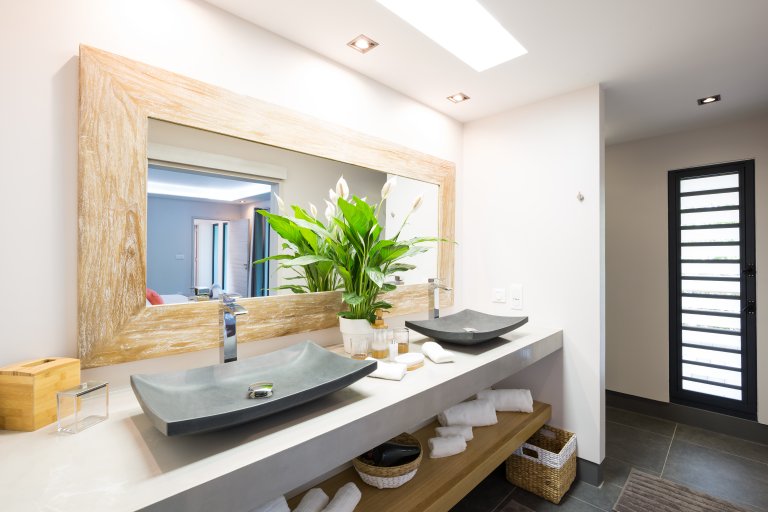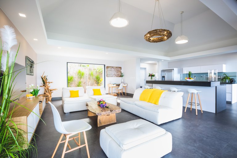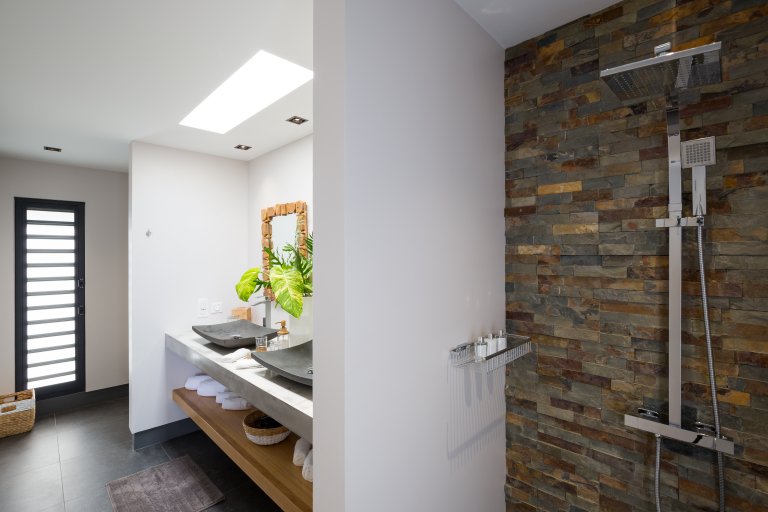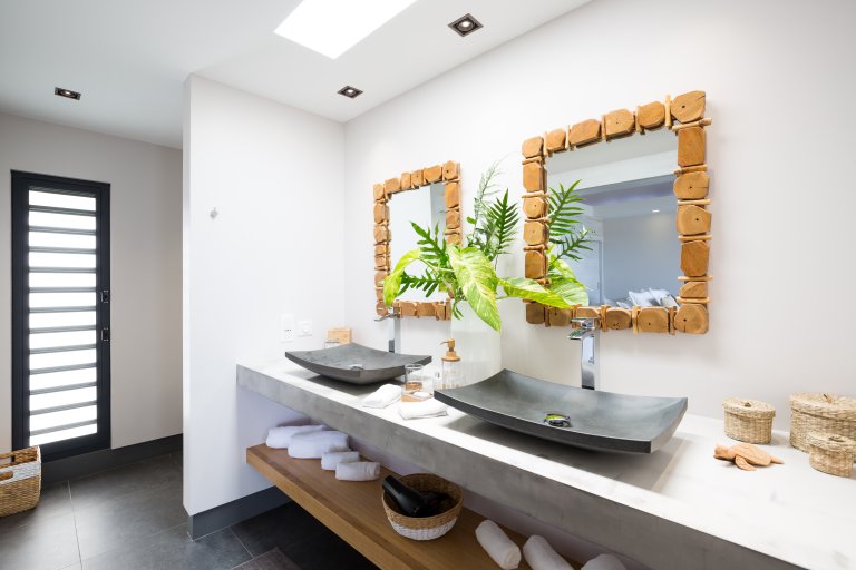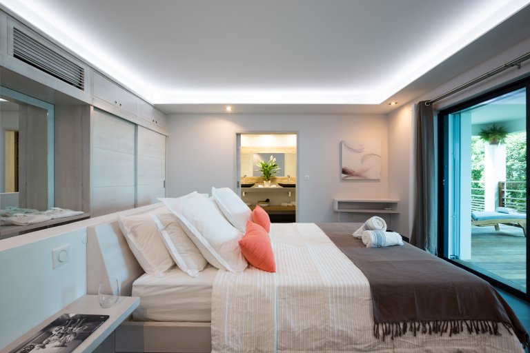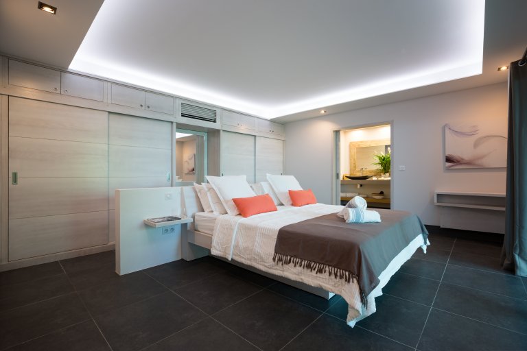 The three bedrooms are located throughout this luxury villa to allow you and your guests plenty of privacy. The large size of the bedrooms makes this villa a perfect vacation home for families or groups of friends.