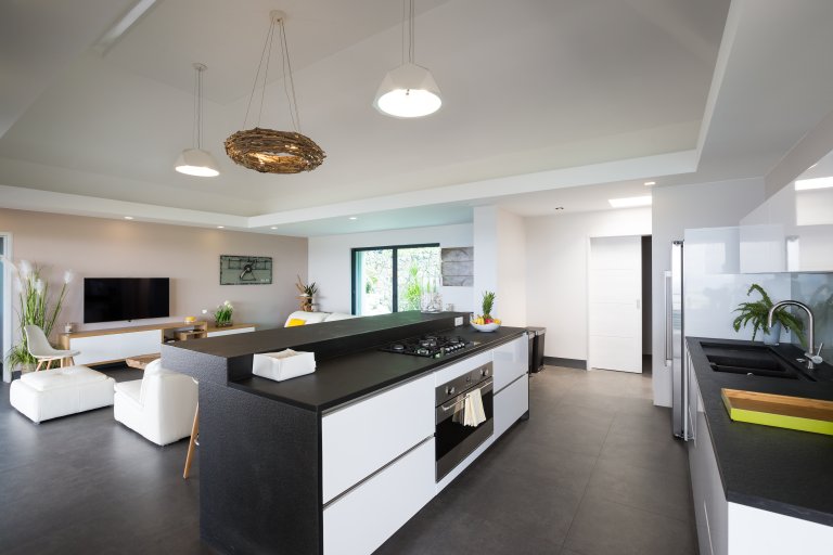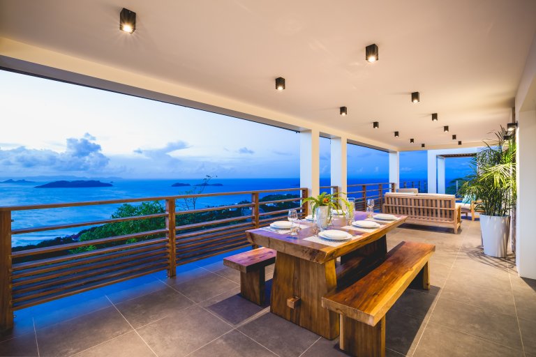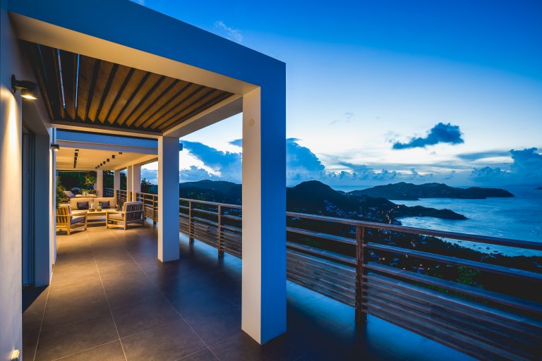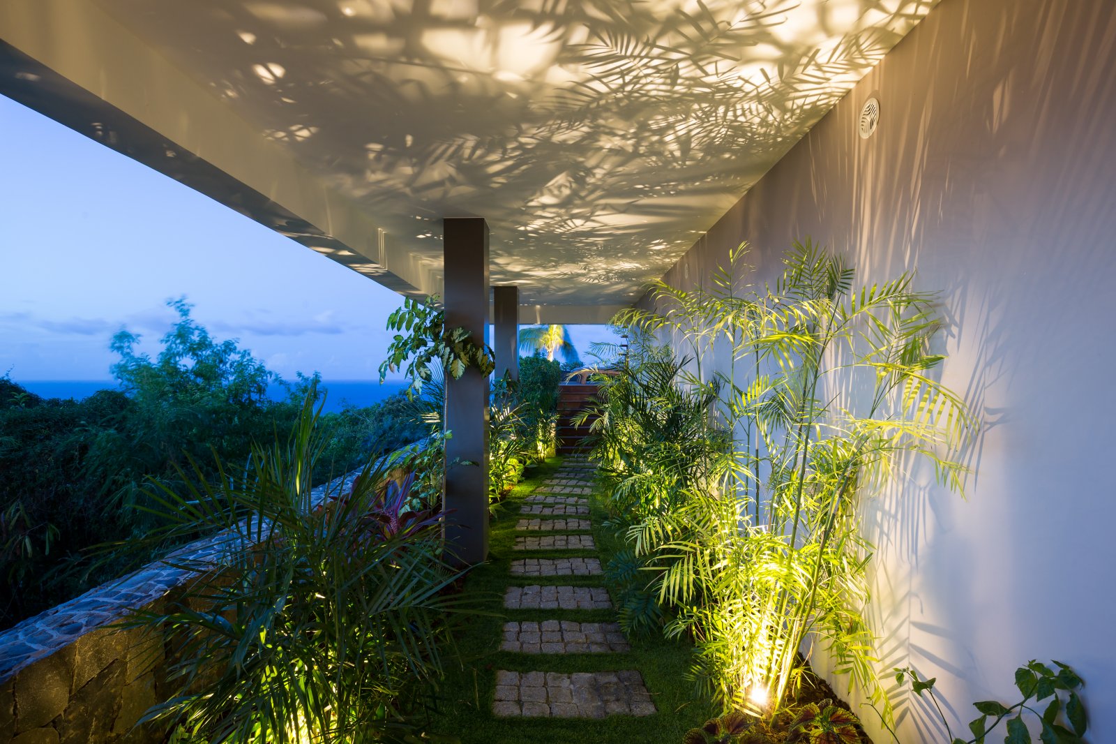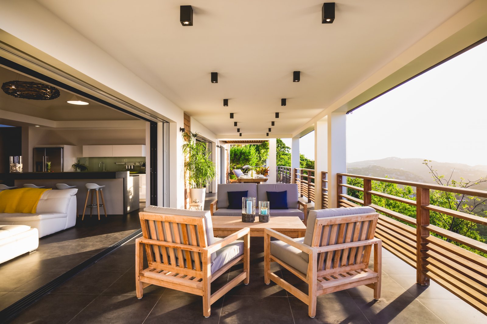 The view from this modern villa down on the water of Lorient Bay in St. Barhs is staggering. Totally modern and positioned to take advantage of the view, the home has an epic covered terrace that naturally draws you outside and into the landscape.