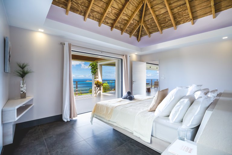 The wraparound terrace offers plenty of room for you to enjoy the Caribbean sunshine and views of the water. Prepare a meal on the gas barbecue and enjoy it at a dining table on the terrace. You can relax in the lounging areas and hanging nest chairs. If you want to soak up the sun after swimming in the heated infinity pool, you will appreciate the poolside loungers.