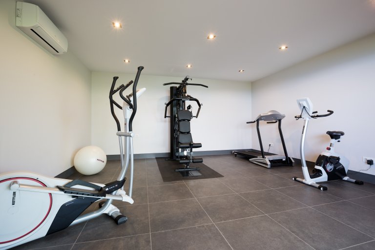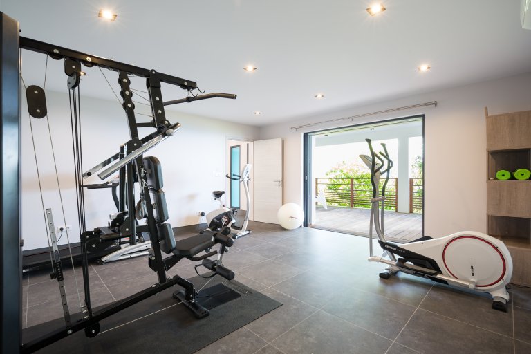 If you want to exercise during your stay in this St. Barts villa, you will appreciate the fitness room on the lower level. You can work out with the weight machine or free weights. The room also has a stationary bike, a treadmill and an elliptical machine. If you want to enjoy the view during your workout, exercise on a yoga mat next to the room's large window.