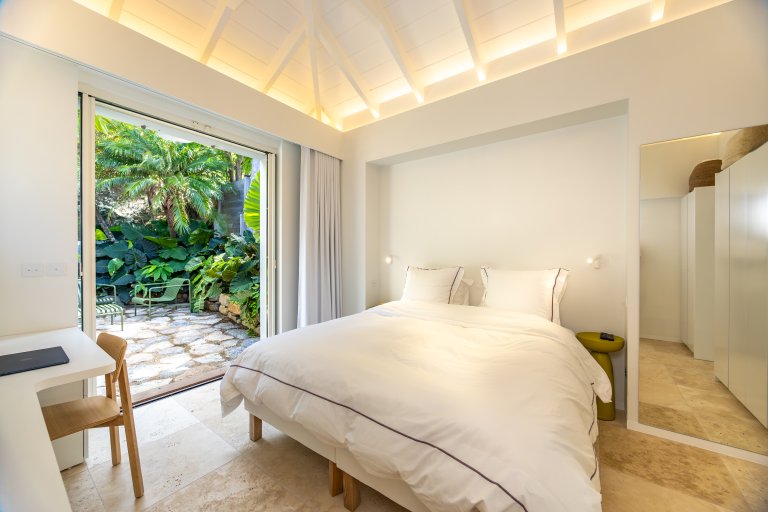 Bed: King Bed • En-Suite Bath with Rainfall Shower and Hair Dryer • Air Conditioning • Safe • Iron & Ironing Board • Direct Access to Private Terrace • Garden View