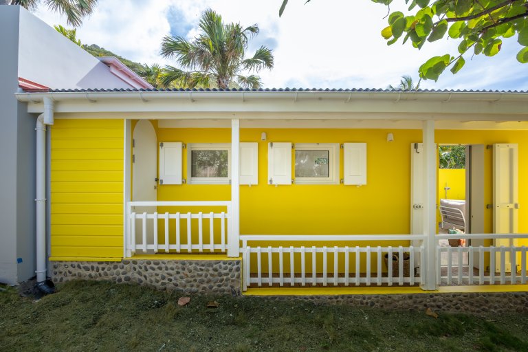Perfectly placed at the end of Anse des Cayes, The Yellow Hut is a rare gem that blends romance with tradition. Across the road from the shoreline, the villa captures the spirit of old St. Barth while offering modern comforts. Its cheerful yellow façade recalls the island’s Caribbean palette and radiates the warmth of sun and summer.