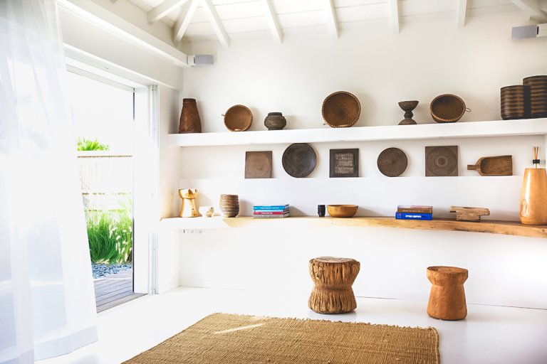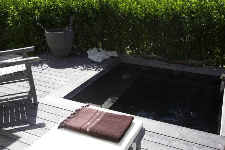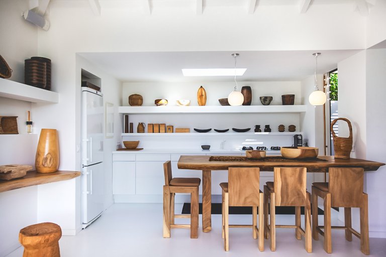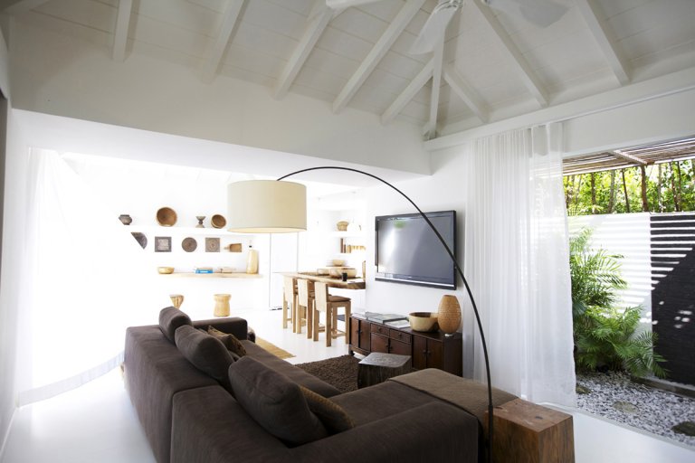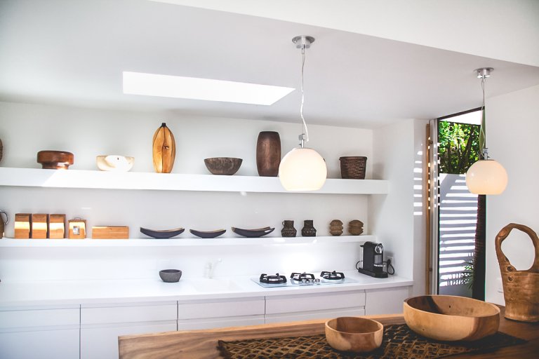 Villa Casamia's cleverly conceived layout creates a sense of openness and natural flow from one room to the next. From the main living area you enter the bedroom, where you can continue out onto the deck or through the dressing room to the outdoor rain-head shower, and from there back to the kitchen. The interior spaces are defined yet still fluid, perfectly melding with one another and with the outdoor environment.