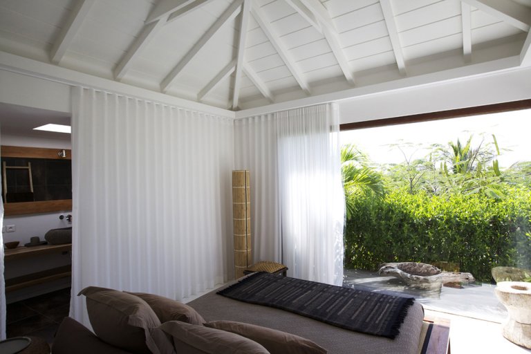 St. Barth's remote and unspoiled Toiny Bay is best known to surfers and the island's more intrepid visitors. The newly constructed Villa Casamia (TTM) is perfectly suited to this pristine region: a secluded oasis with a spirit perfectly in harmony with the beauty of its natural environment. Hidden away among the palms and flambouyant, just a short stroll from the beach, Villa Casamia looks out over the pristine and protected land of St. Barth's cote sauvage.