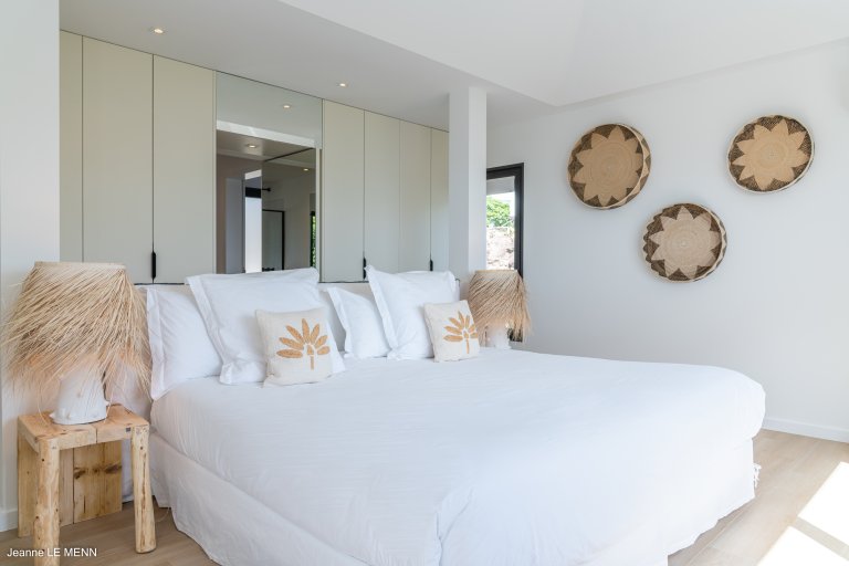 Just as its name suggests the newly built Villa Cute (CTE), is a charming and cozy vacation home. The luxury rental property, walking distance from the beach at Toiny, has a clean, modern, and natural design. It’s swirled-straw lampshades and rough-hewn wood furniture give it a bohemian, barefoot-luxury feeling.