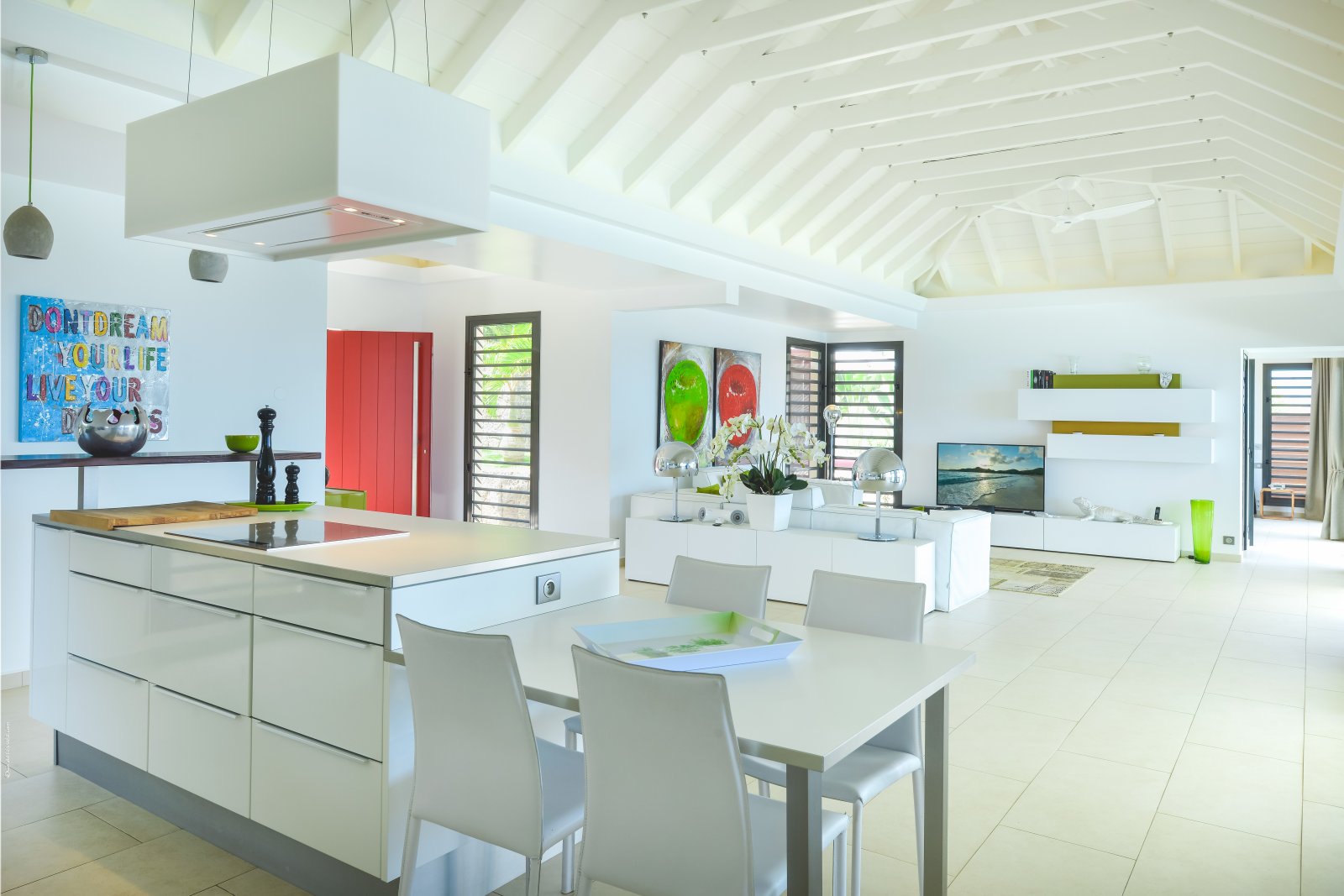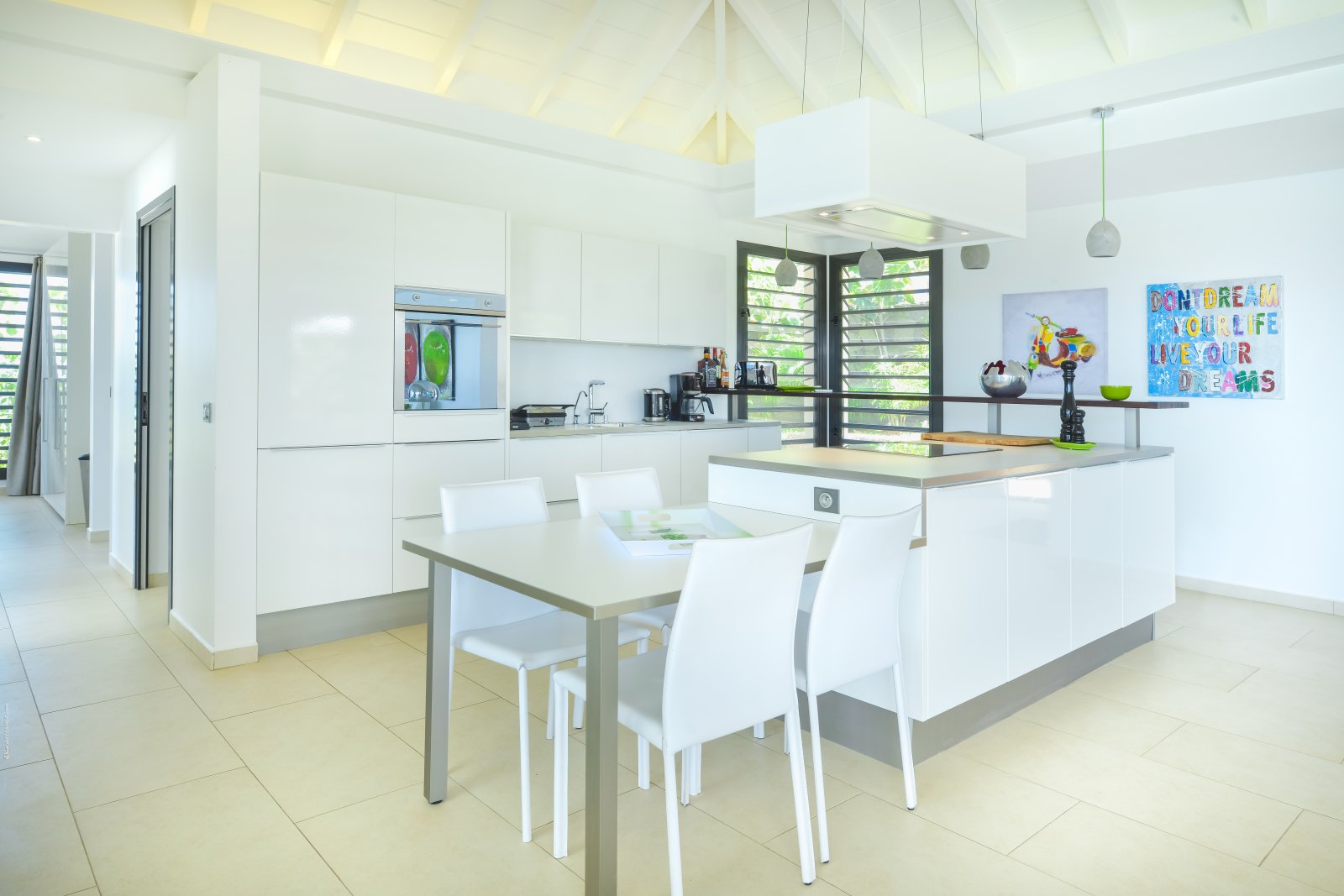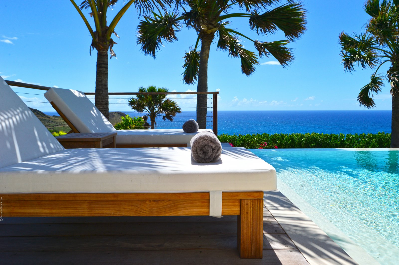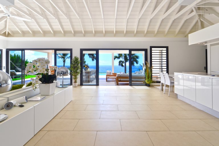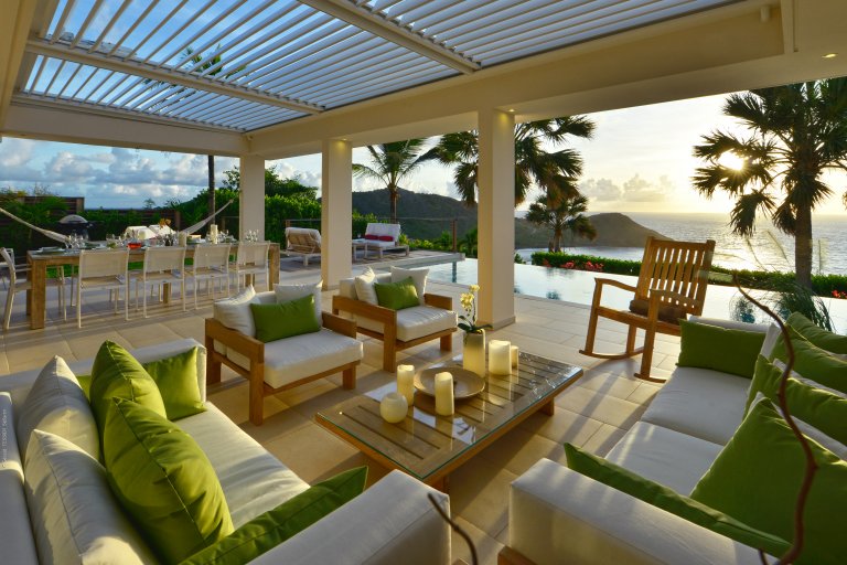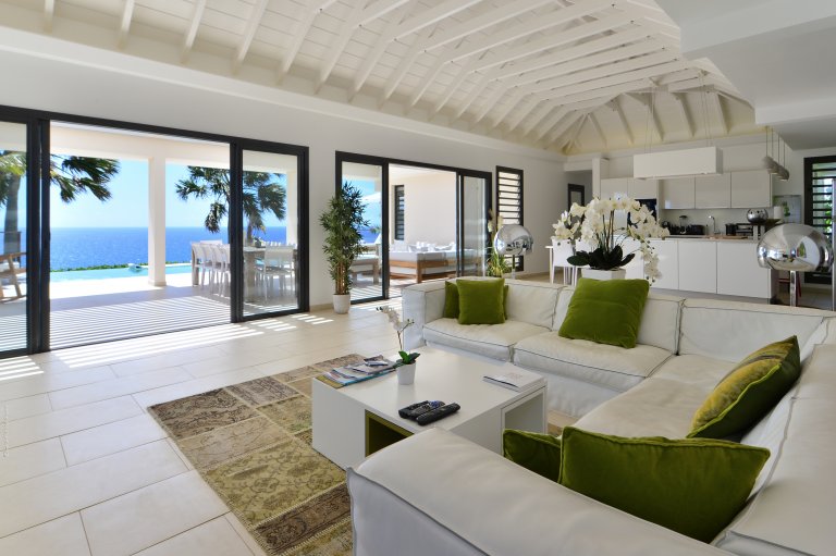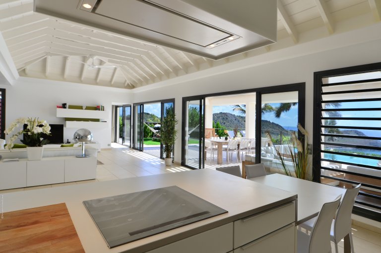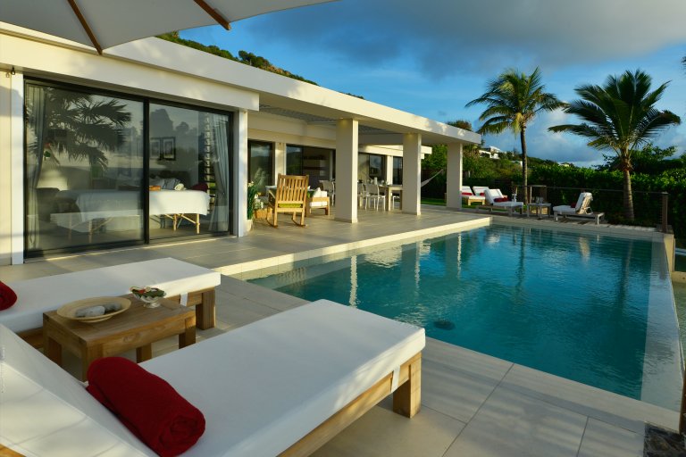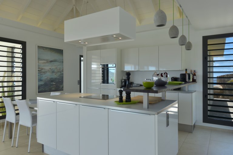 A private, secret world unto itself, Villa Enzuma sits on a hillside high about Toiny. The newly built luxury property is one of few vacation rentals in this area of St. Barth, which gives it superb seclusion and unique views of the Caribbean Sea, something most visitors to the island don't get to see. Fresh, serene, and modern, Villa Enzuma is bedecked with eye-catching contemporary art, including works by local artist Kate Kova.