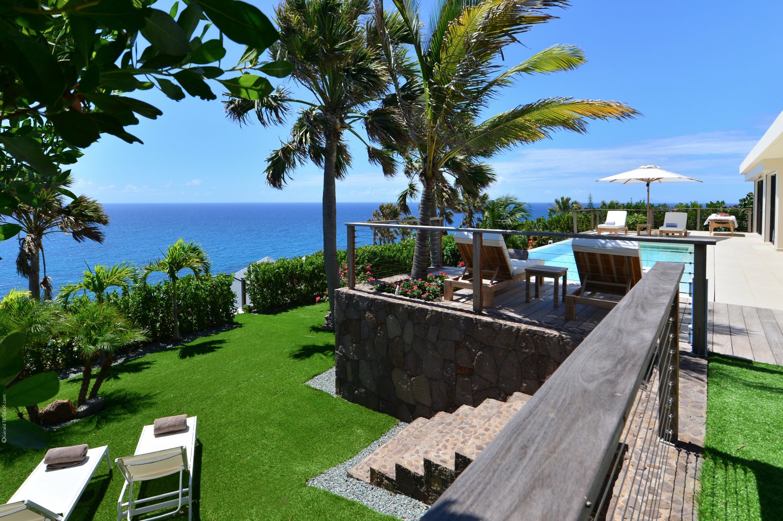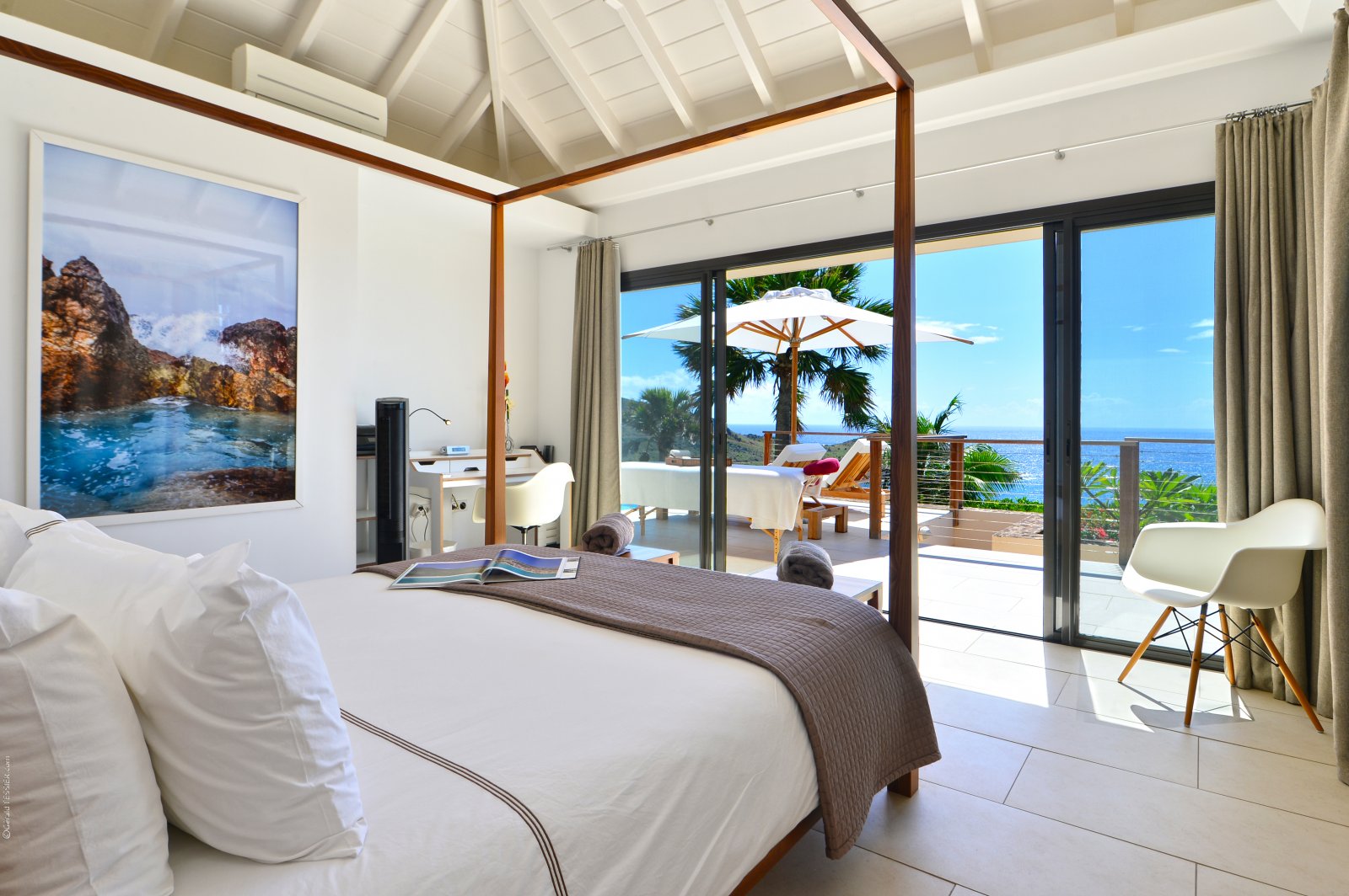 This is a villa designed for utter relaxation, a dream escape for one couple, close friends, or a family to share time together far away from the distractions of the outside world aside, of course, from enjoying the pleasures of the great outdoors: ocean breezes in your hair, warm sun on your skin, the sapphire sea dazzling your eyes. Its remote location ensures distance from the noise and crowds on the other side of the island.