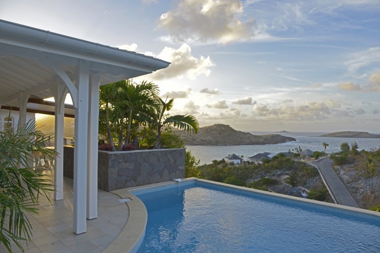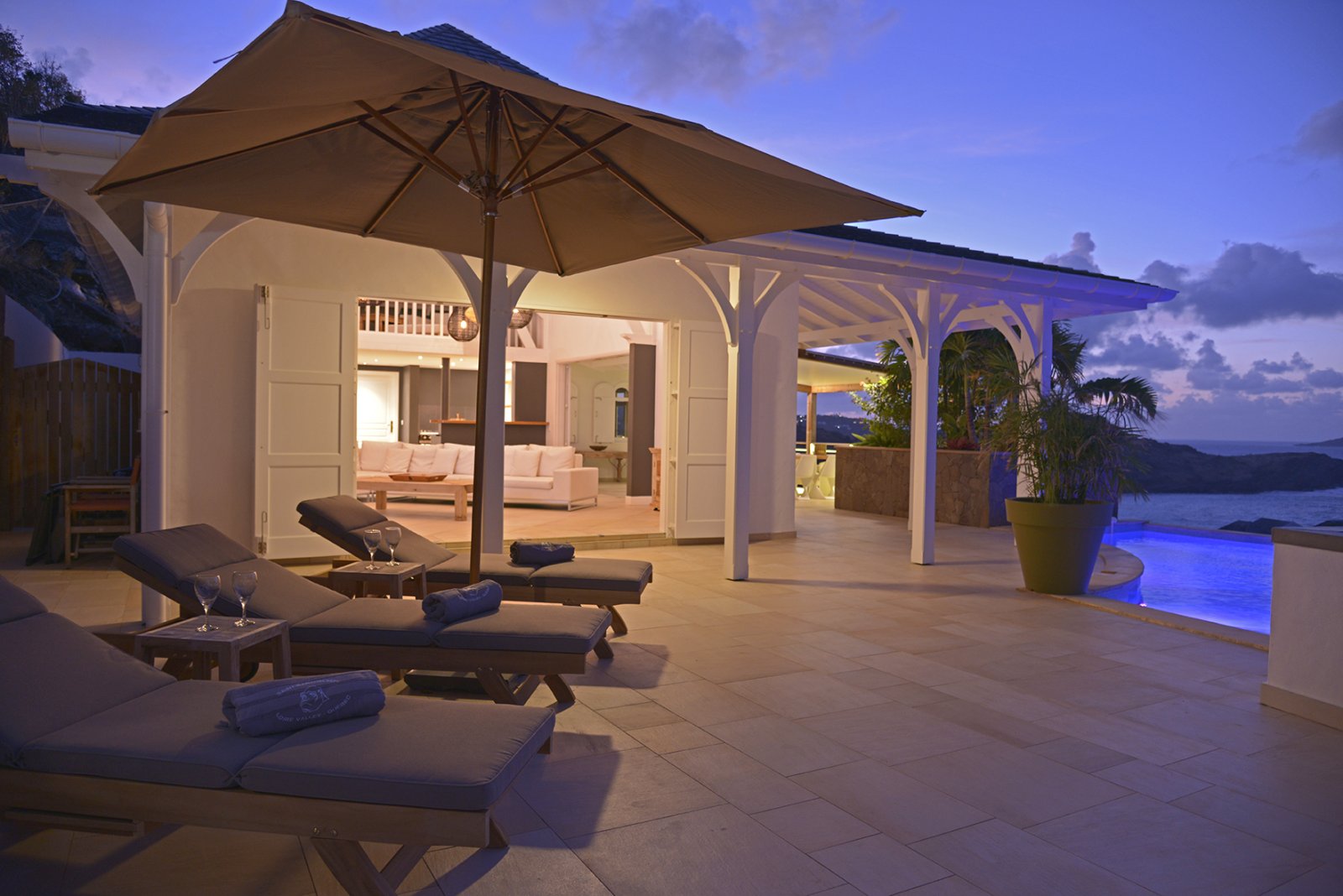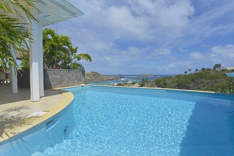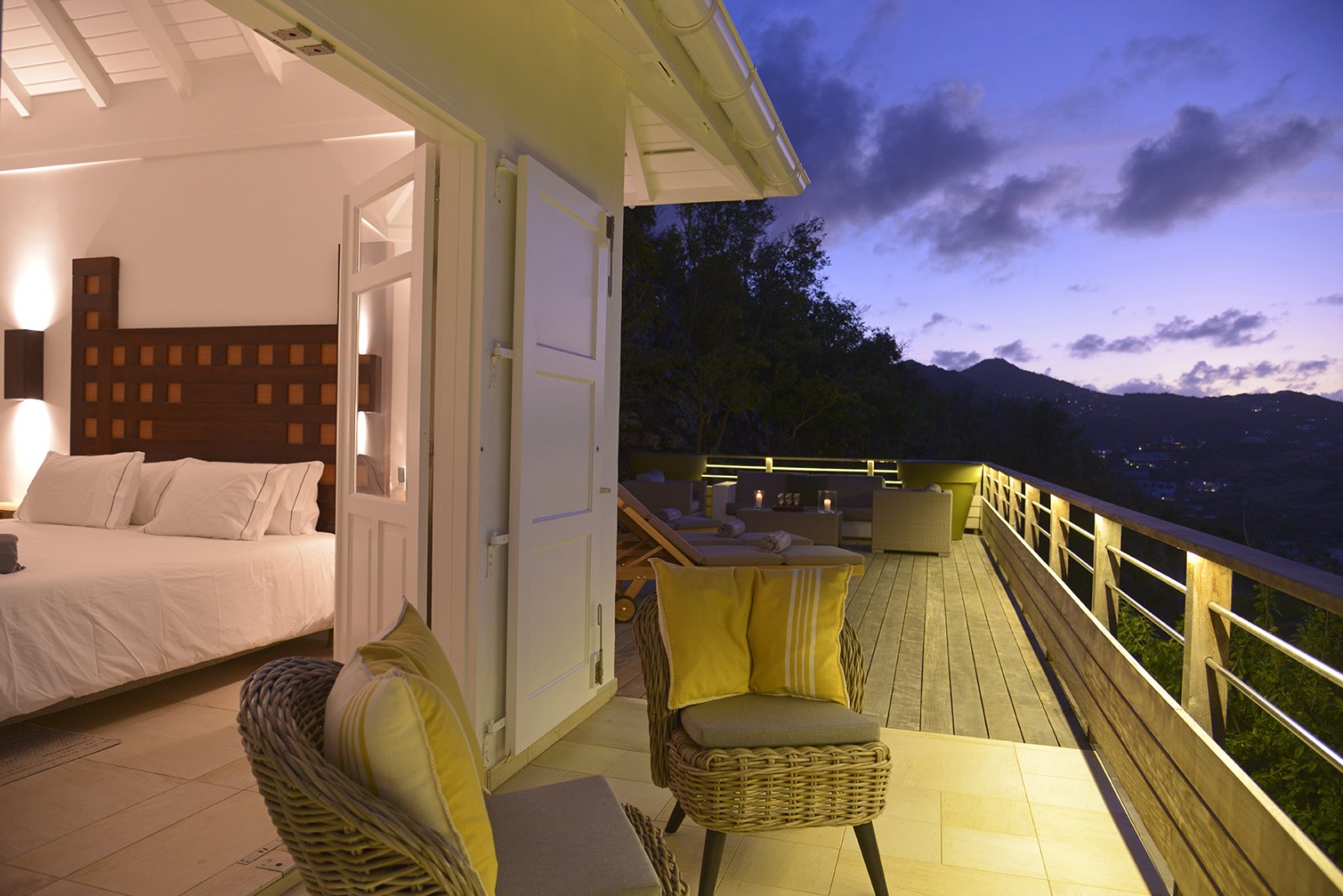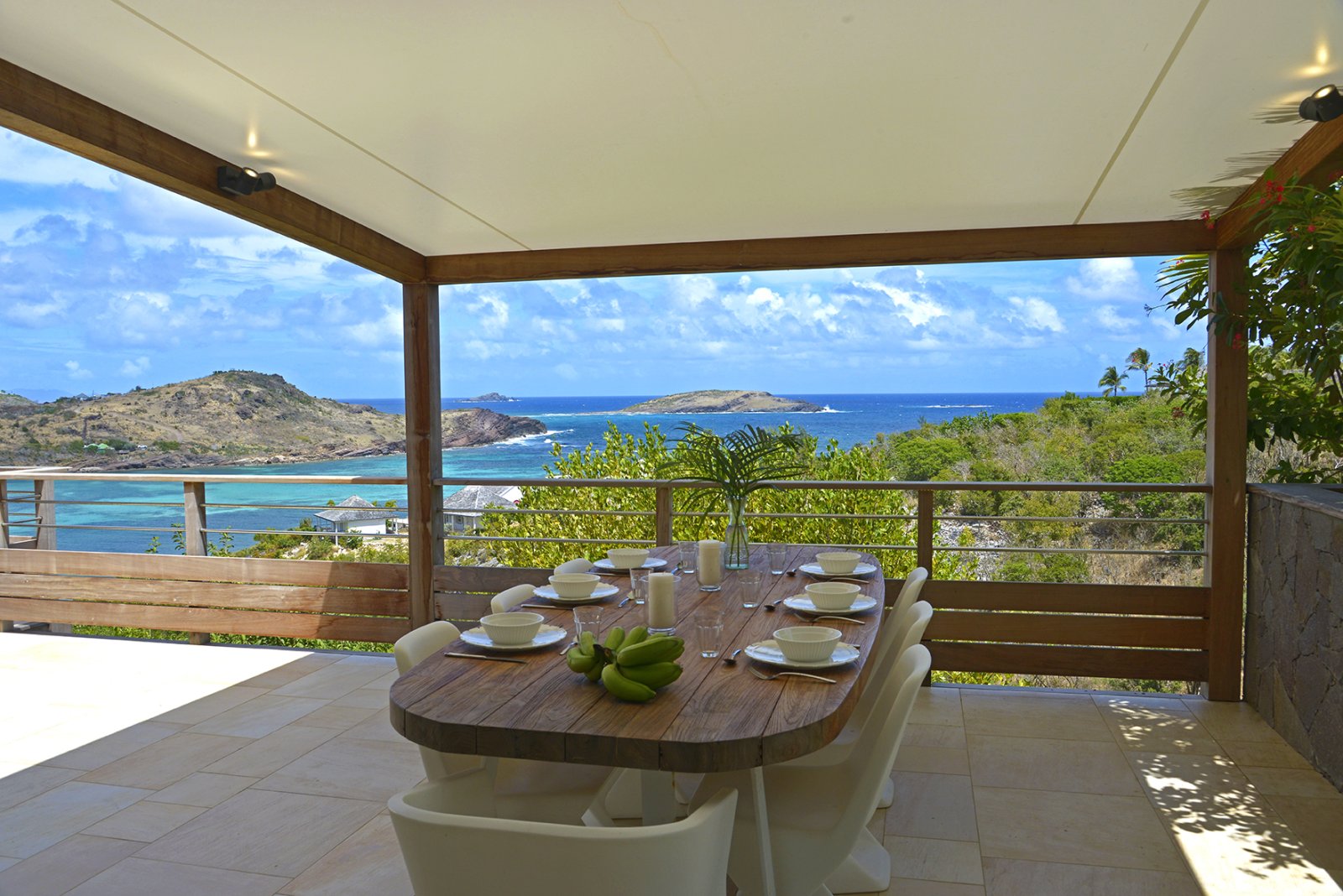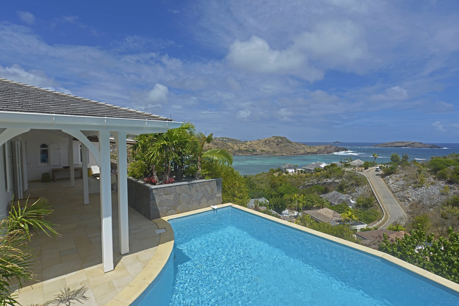 Villa Lagon Jaune (AJL), located on the hillside of the exclusive gated Domaine du Levant neighborhood, offers superb views, terraces, a pool, spacious living room, al fresco dining, and a well equipped kitchen. The villa is just a short walk from the pleasant and calm beach at Petit Cul du Sac.