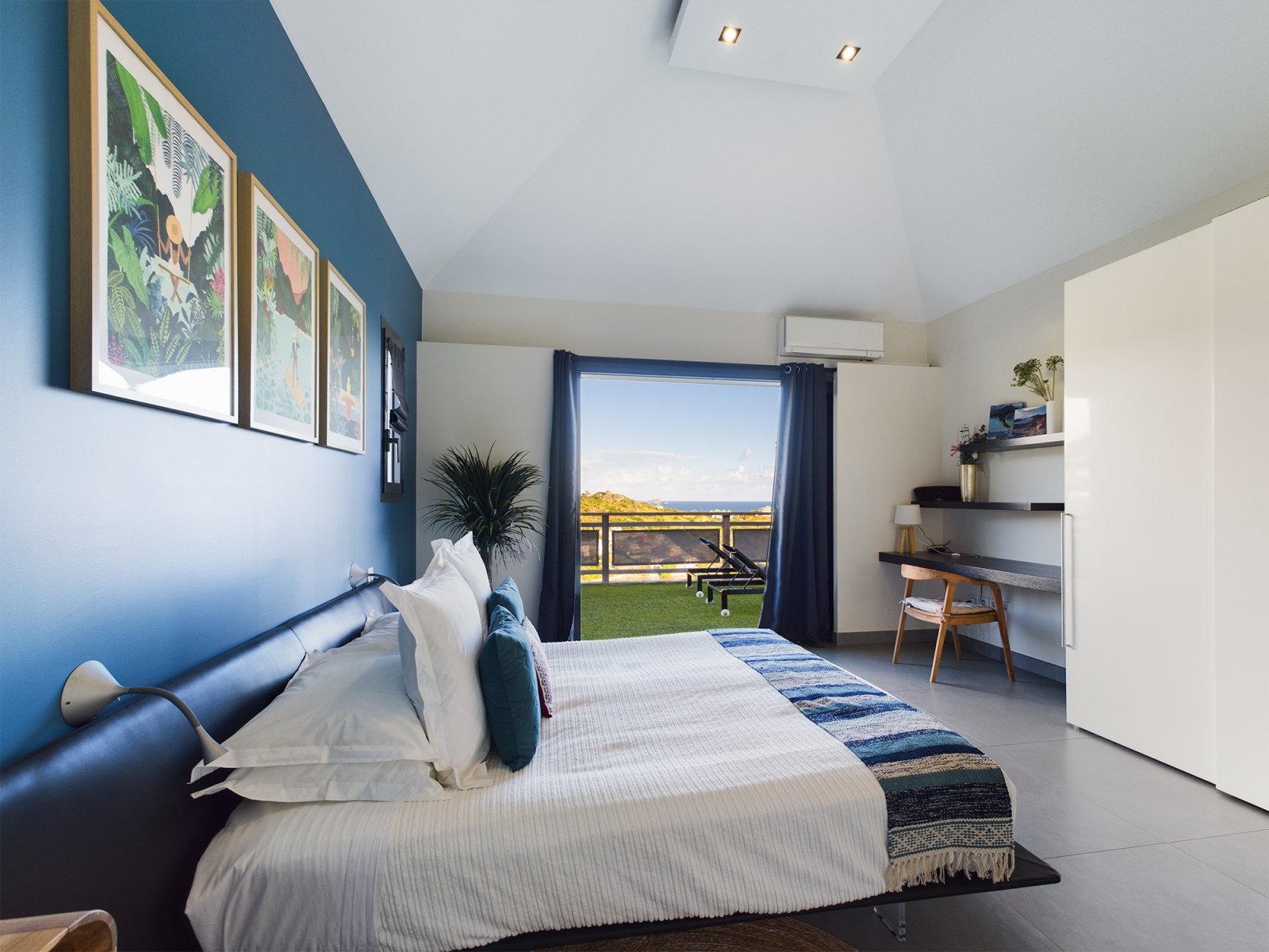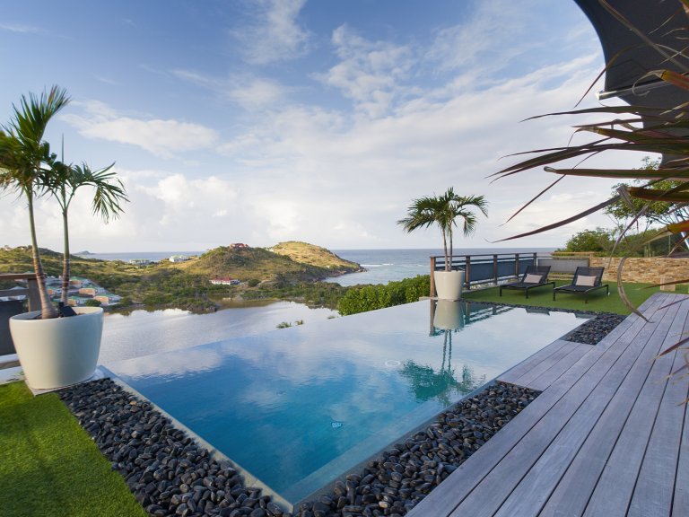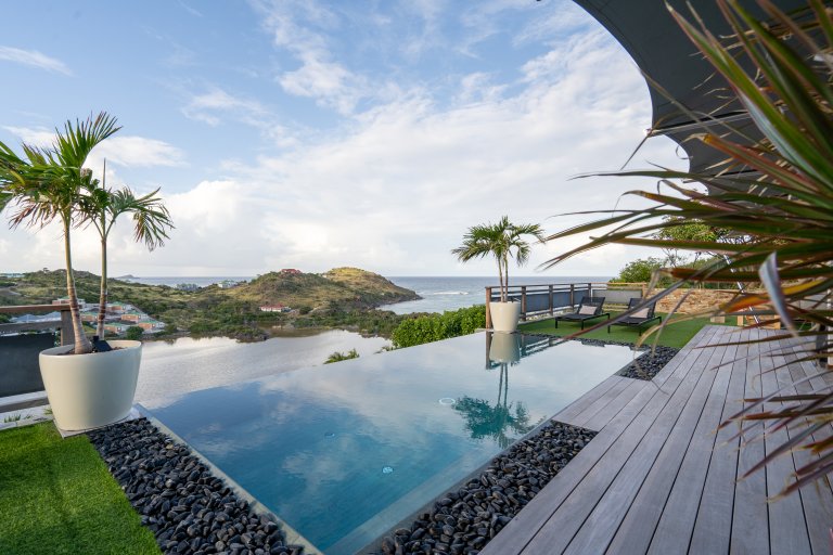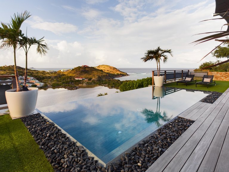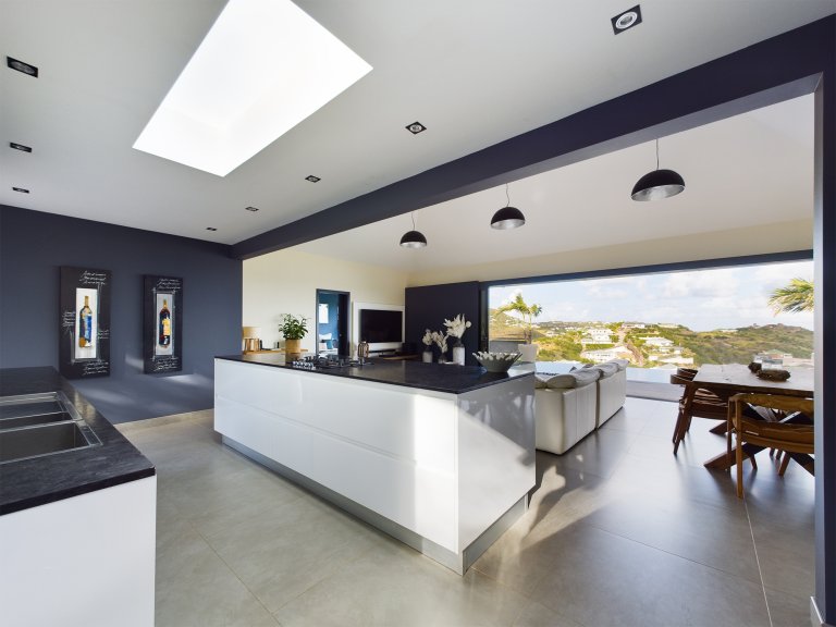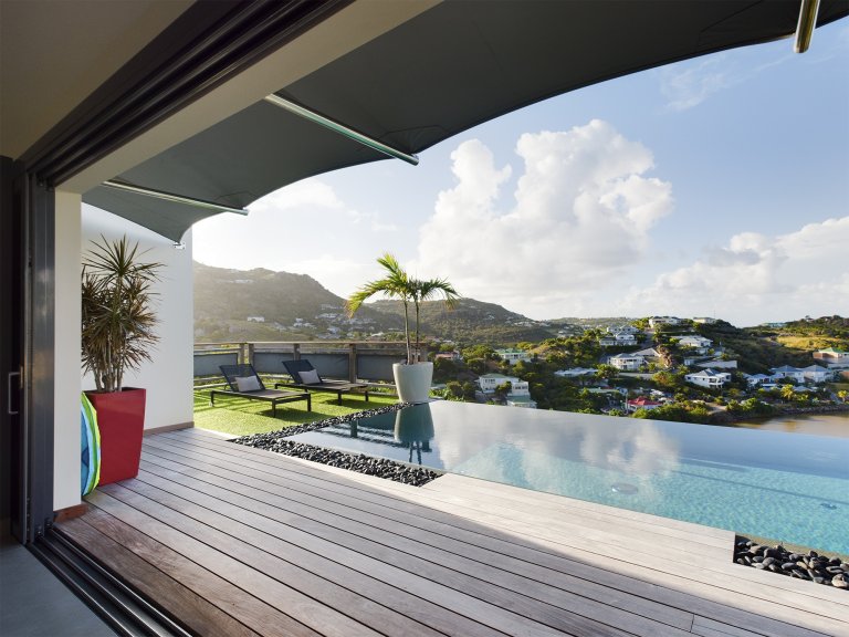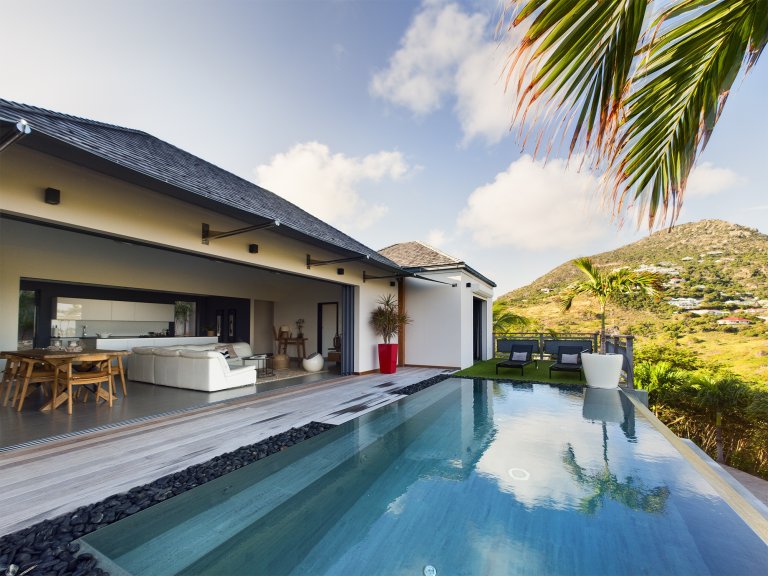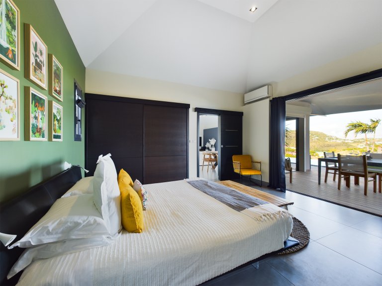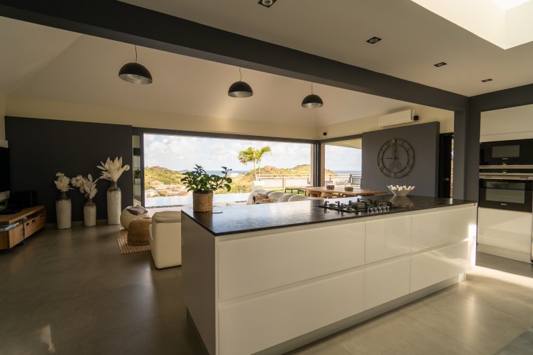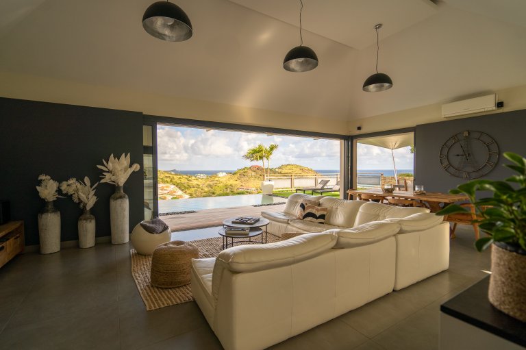 The allure of Villa Open Space (OPE) is precisely what the name suggests: capacious, unencumbered living areas, plenty of room to move freely, and a sense of being at one with the vastness of the sea and sky. While plenty of St. Barth’s luxury rental properties have design-forward styles and star-architect credentials, this intimate vacation home is distinguished by what it does not have: formality, distractions or even unneeded walls. Life flows freely between living, cooking and sleeping areas; between indoors and out; and between the views in the foreground and the azure vistas of Petit Cul de Sac and the green slopes of the surrounding hillsides.