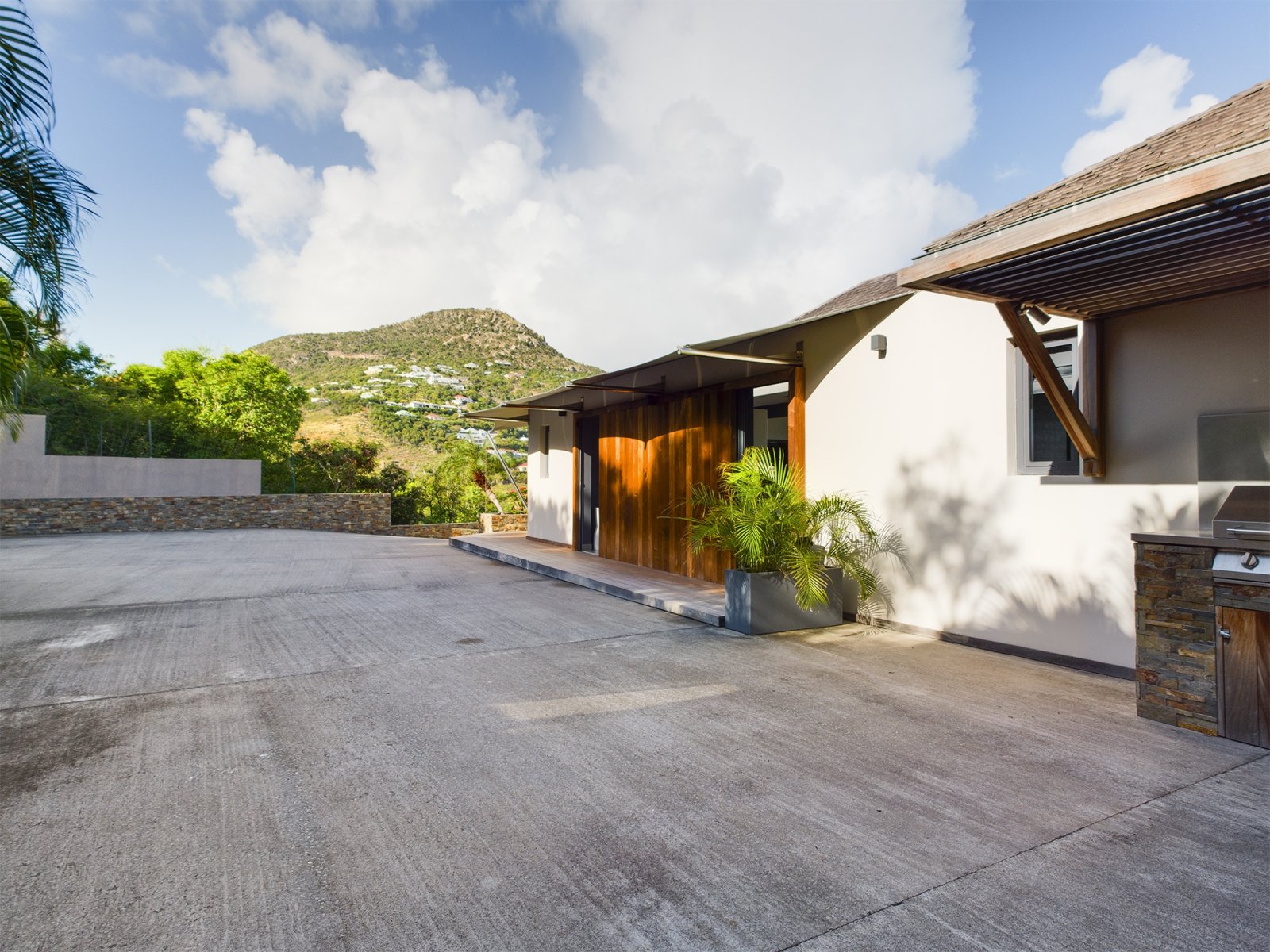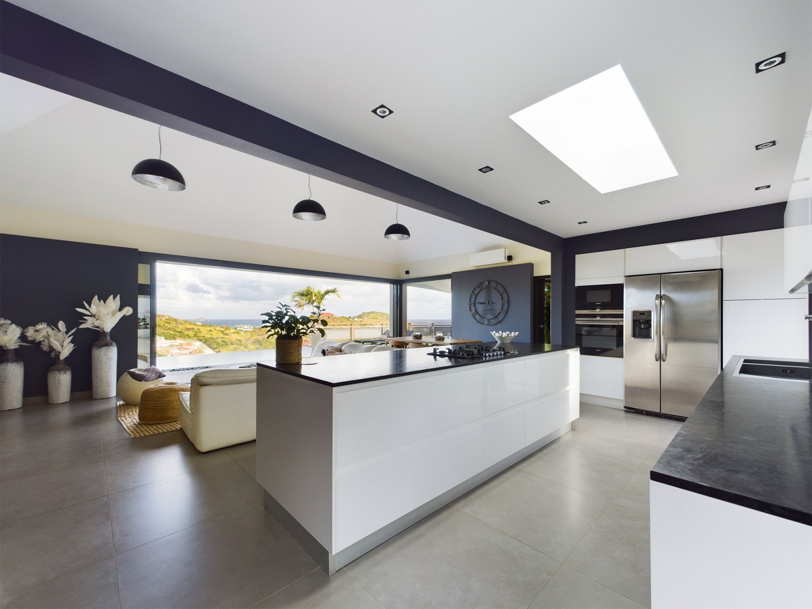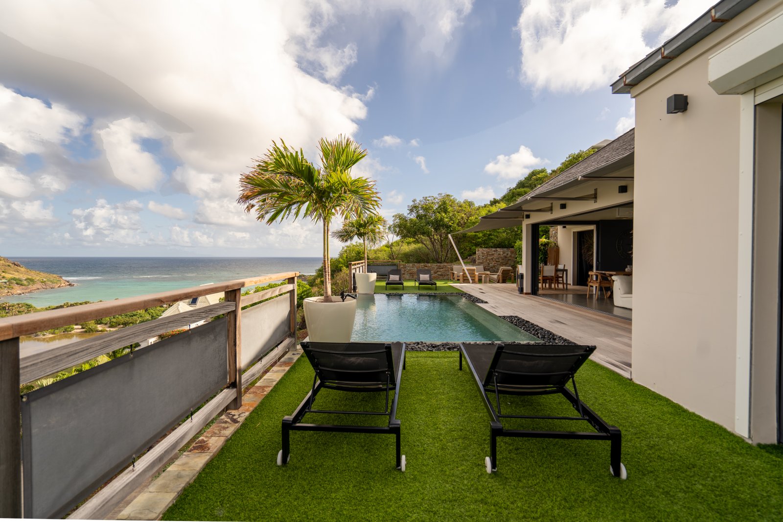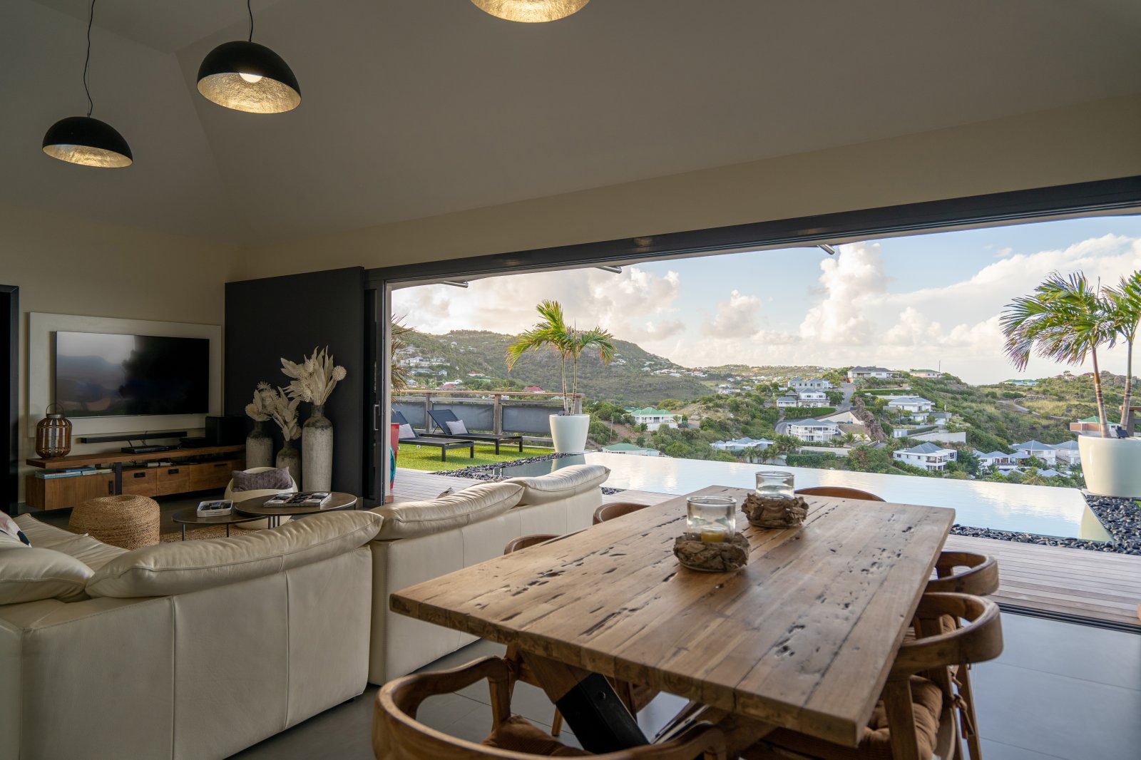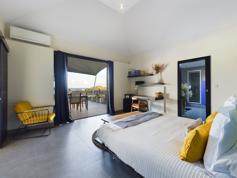 The allure of Villa Open Space (OPE) is precisely what the name suggests: capacious, unencumbered living areas, plenty of room to move freely, and a sense of being at one with the vastness of the sea and sky. While plenty of St. Barth’s luxury rental properties have design-forward styles and star-architect credentials, this intimate vacation home is distinguished by what it does not have: formality, distractions or even unneeded walls. Life flows freely between living, cooking and sleeping areas; between indoors and out; and between the views in the foreground and the azure vistas of Petit Cul de Sac and the green slopes of the surrounding hillsides.