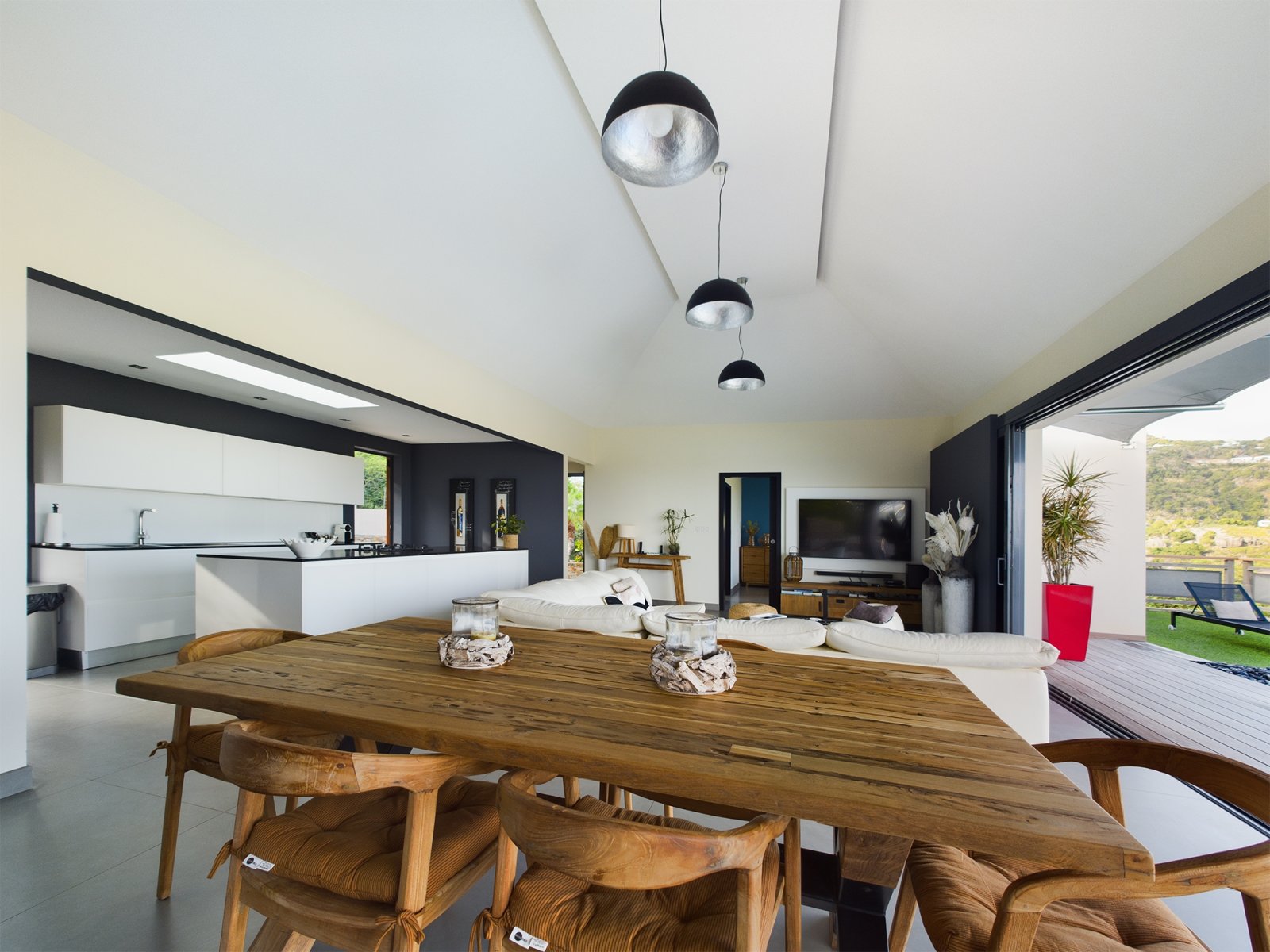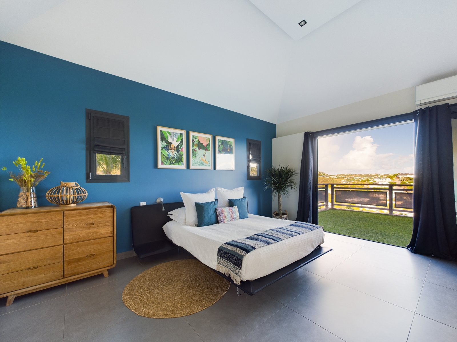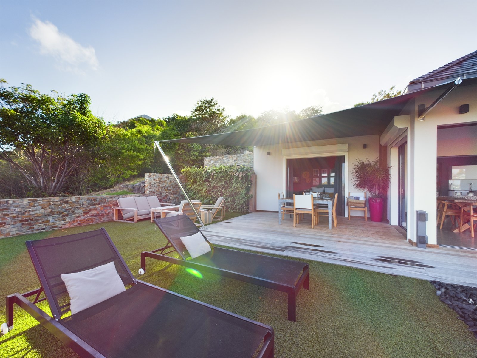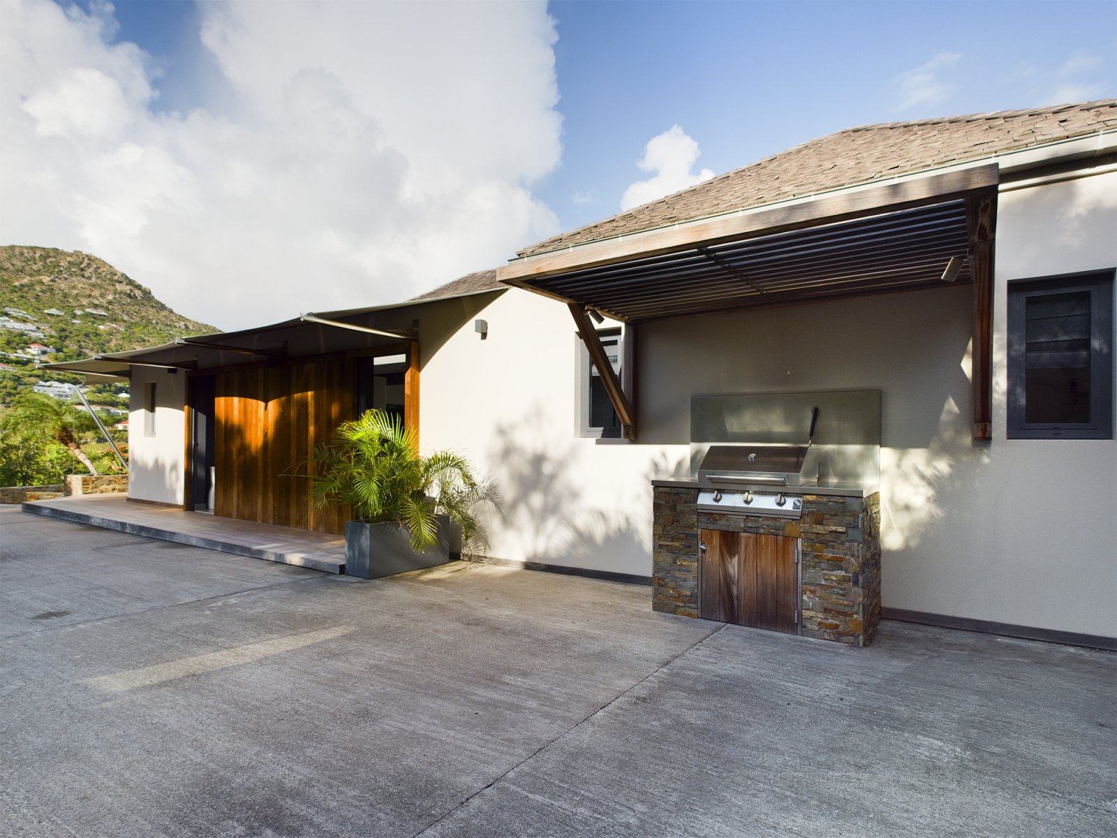 The allure of Villa Open Space (OPE) is precisely what the name suggests: capacious, unencumbered living areas, plenty of room to move freely, and a sense of being at one with the vastness of the sea and sky. While plenty of St. Barth’s luxury rental properties have design-forward styles and star-architect credentials, this intimate vacation home is distinguished by what it does not have: formality, distractions or even unneeded walls. Life flows freely between living, cooking and sleeping areas; between indoors and out; and between the views in the foreground and the azure vistas of Petit Cul de Sac and the green slopes of the surrounding hillsides.
