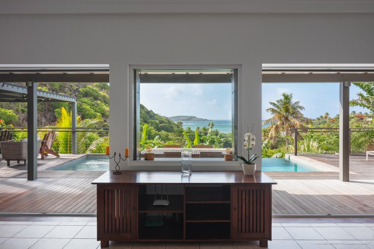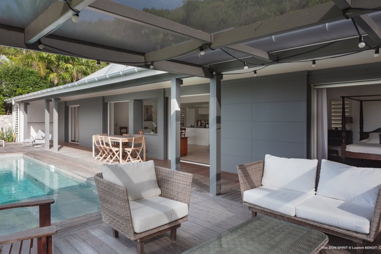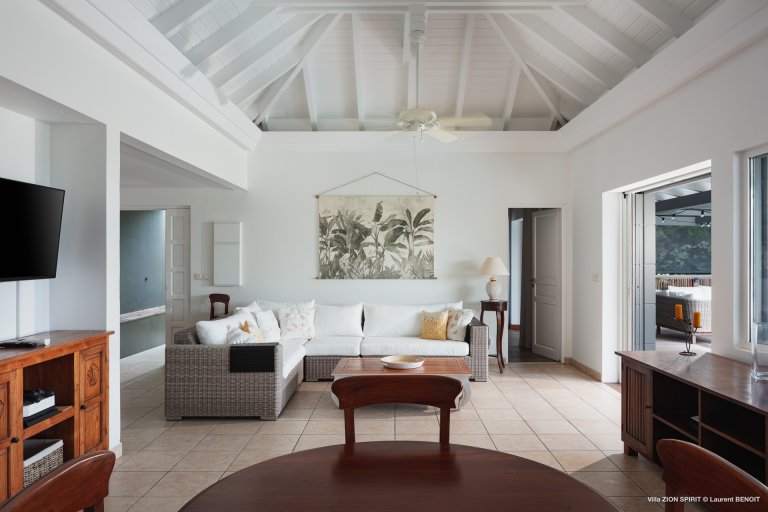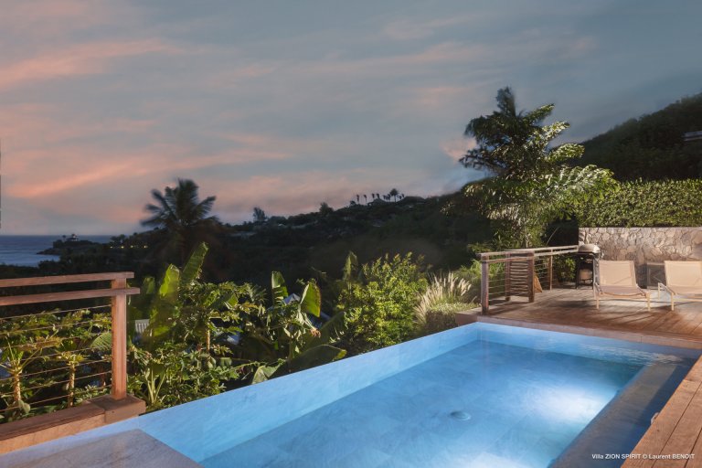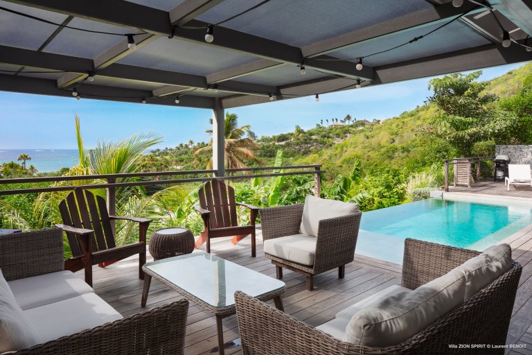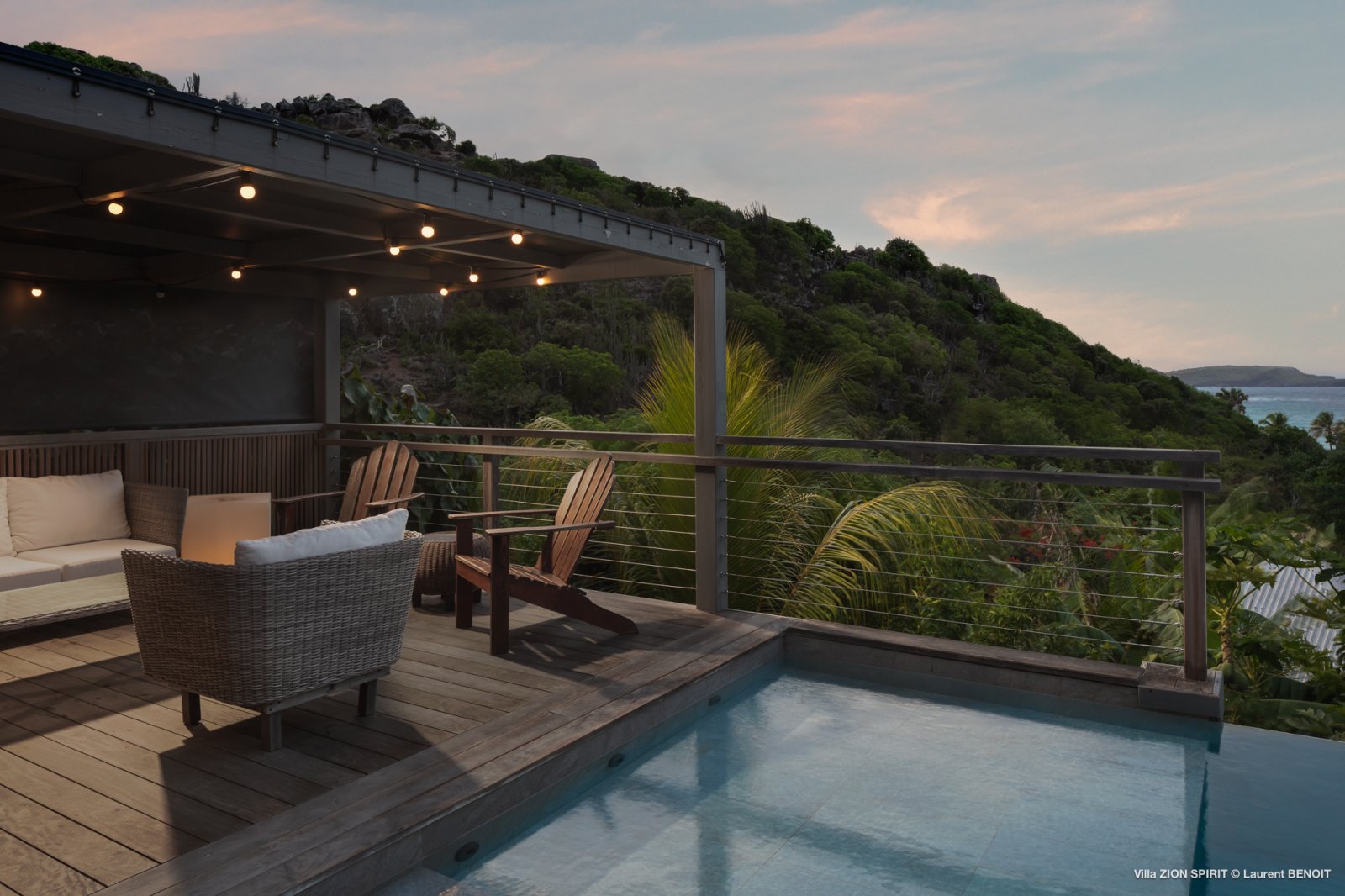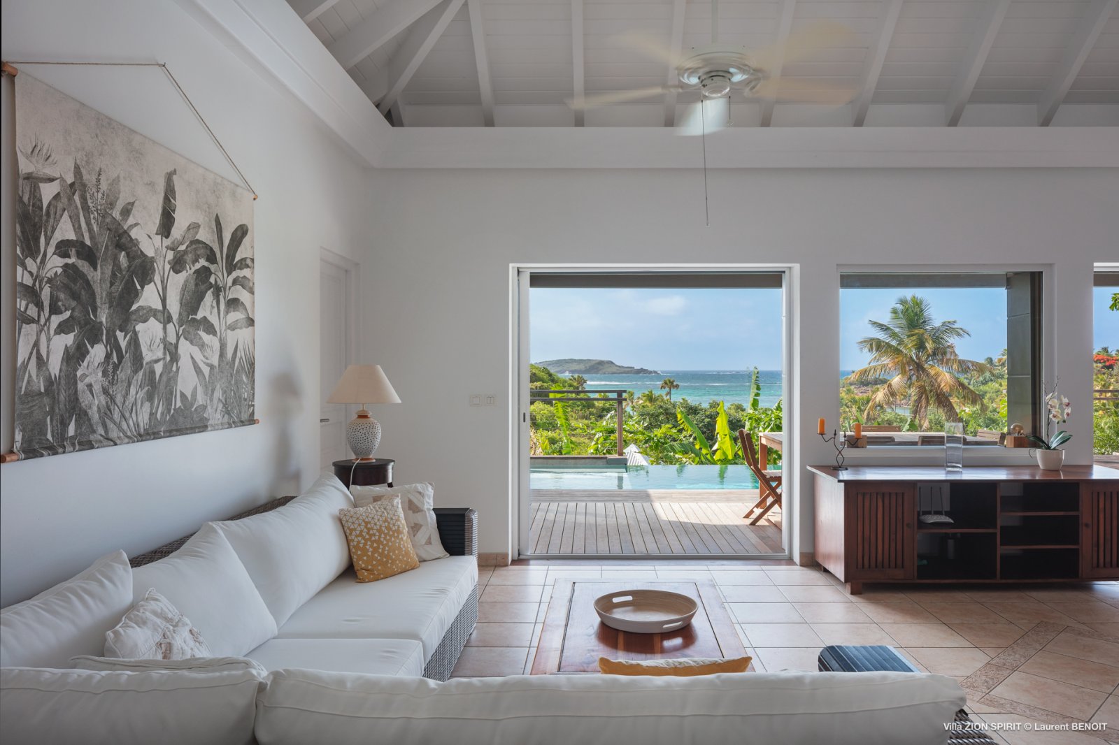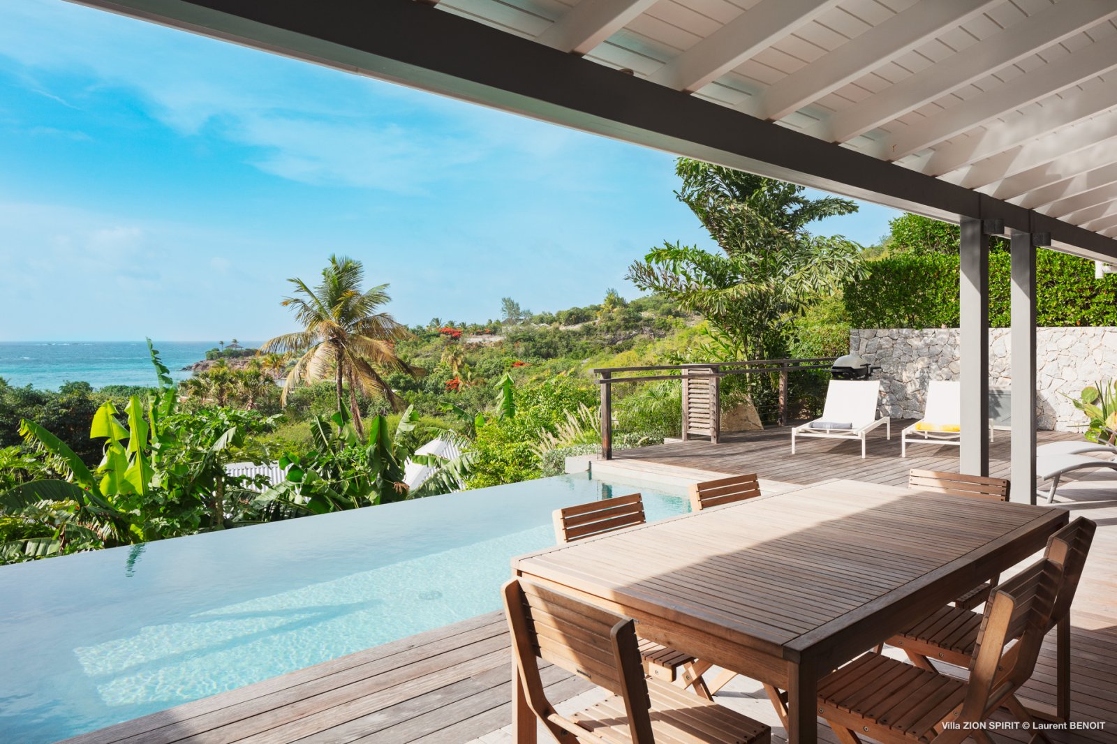 On the far eastern end of the island, nestled into the greenery and with views of the sparkling ocean beyond, Villa Zion Spirit (ZIO) is a villa that fully captures the real spirit of St. Barth. The luxury rental property is private and secluded in the hills of Petit Cul de Sac but also within walking distance of the beach.