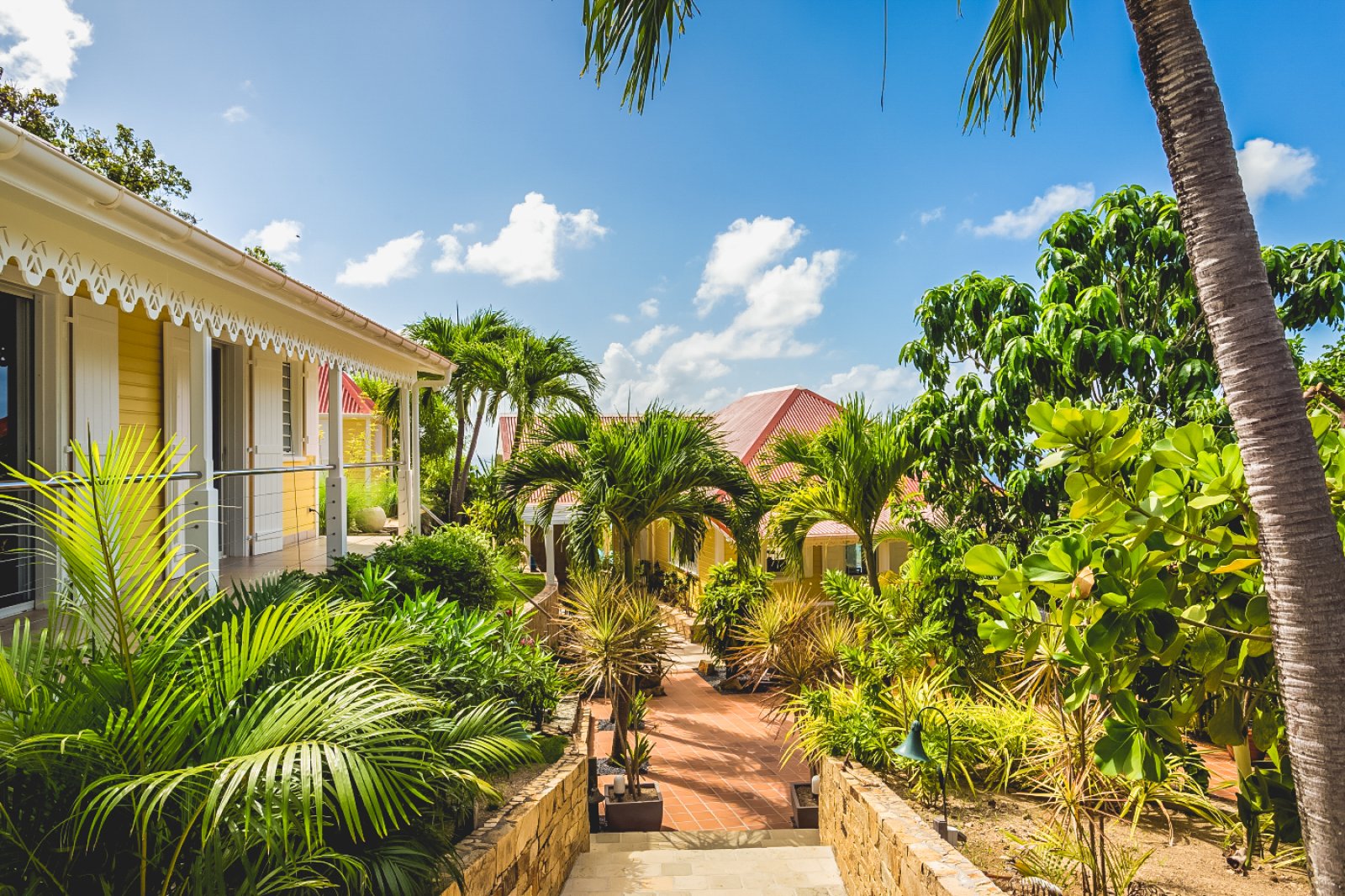 Part of Villa CLO's appeal lies in its real Caribbean style, with bright yellow clapboard siding, red roofs, and intricate gingerbread trim under the eaves. By combining these aesthetic touches with privacy, comfort, and a magnificent view, this property can be said to truly have it all.