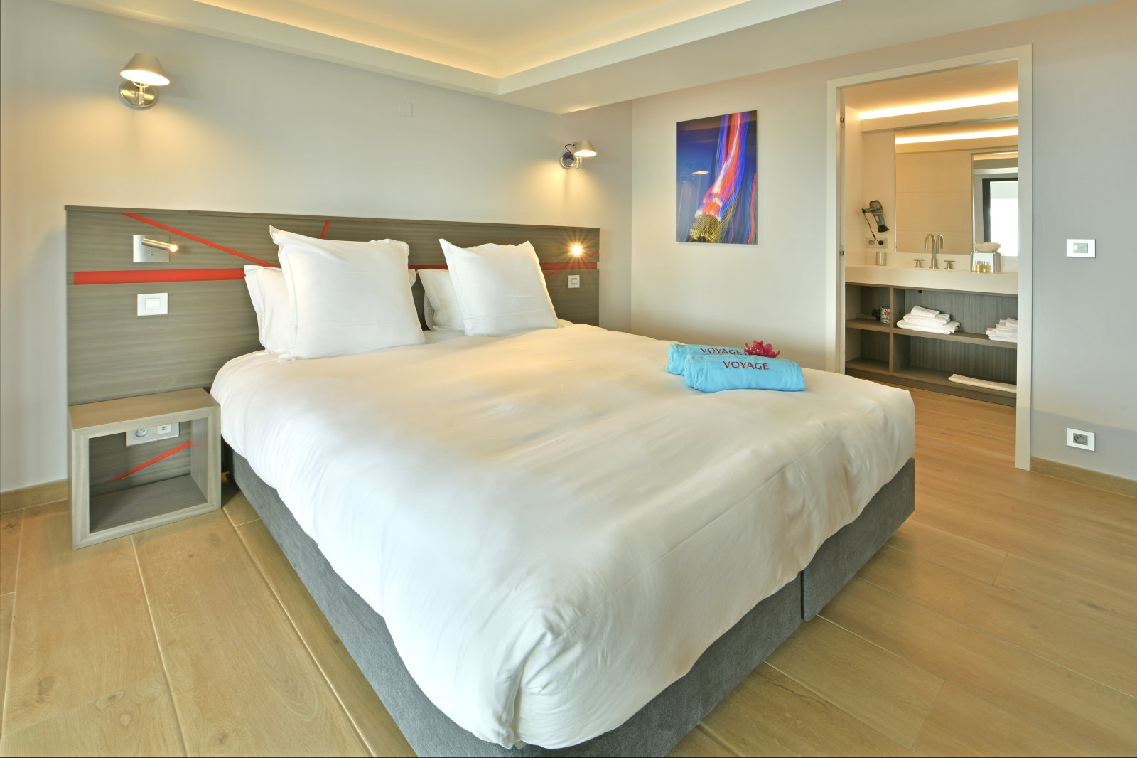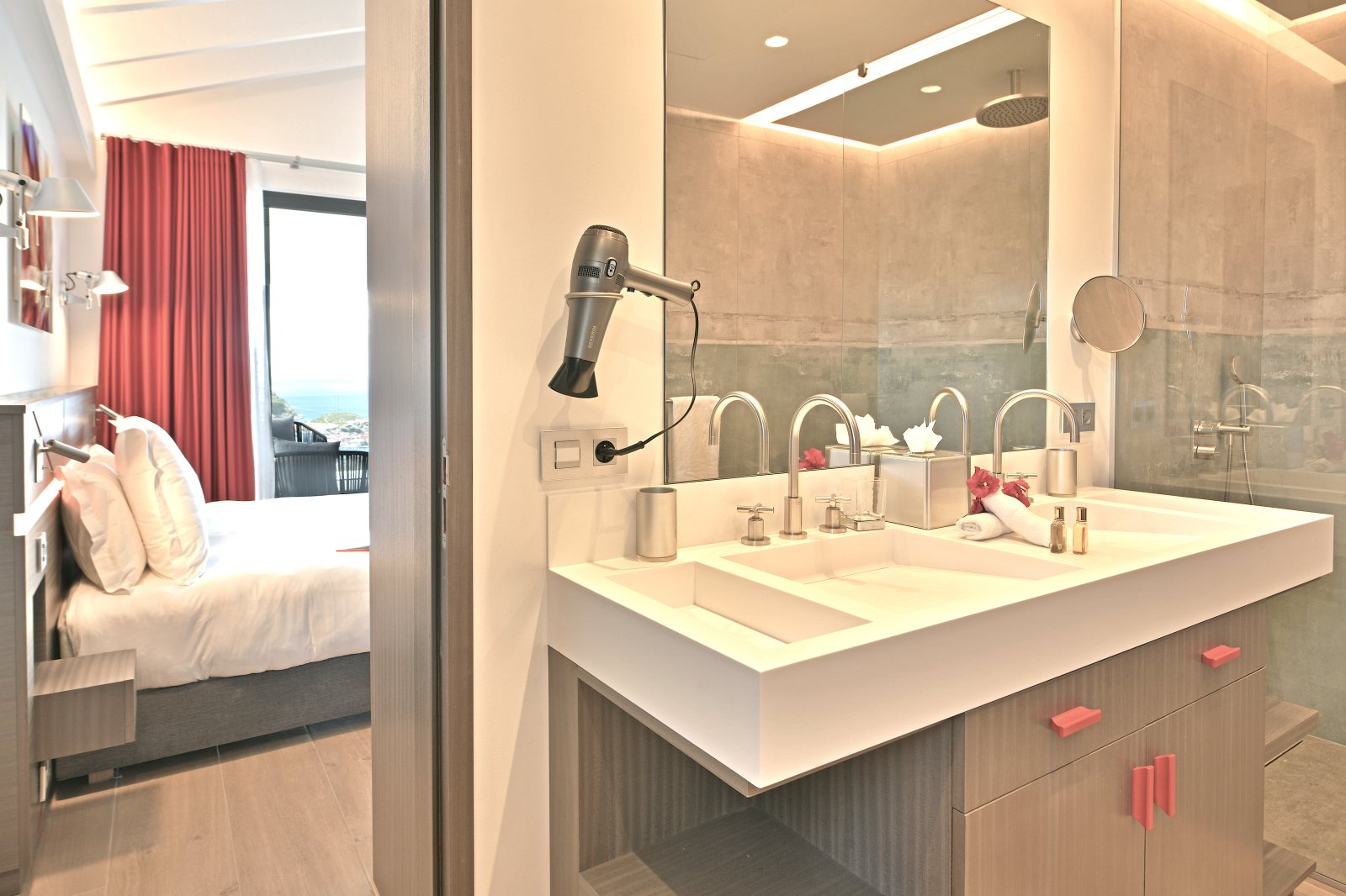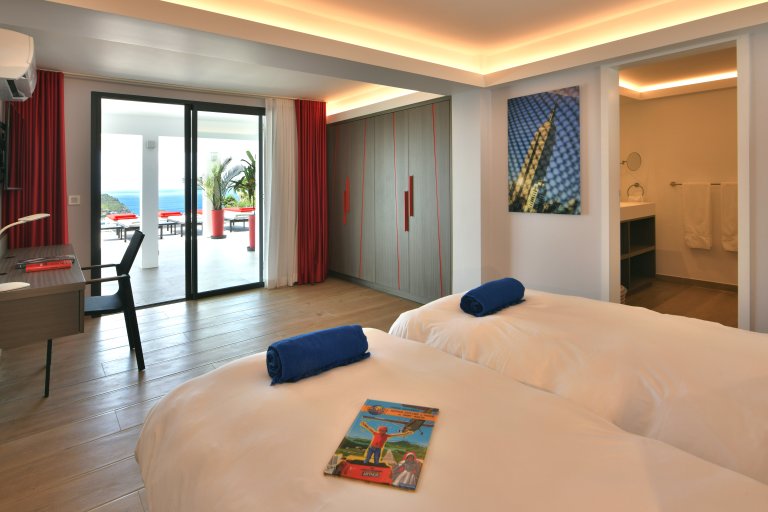 Bed: 2 Twin Beds w/Option as King Bed • En-Suite Bath with Shower and Dual Vanity • Air Conditioning • Flat-Screen TV • Hair Dryer • Safe • Direct Access to Terrace