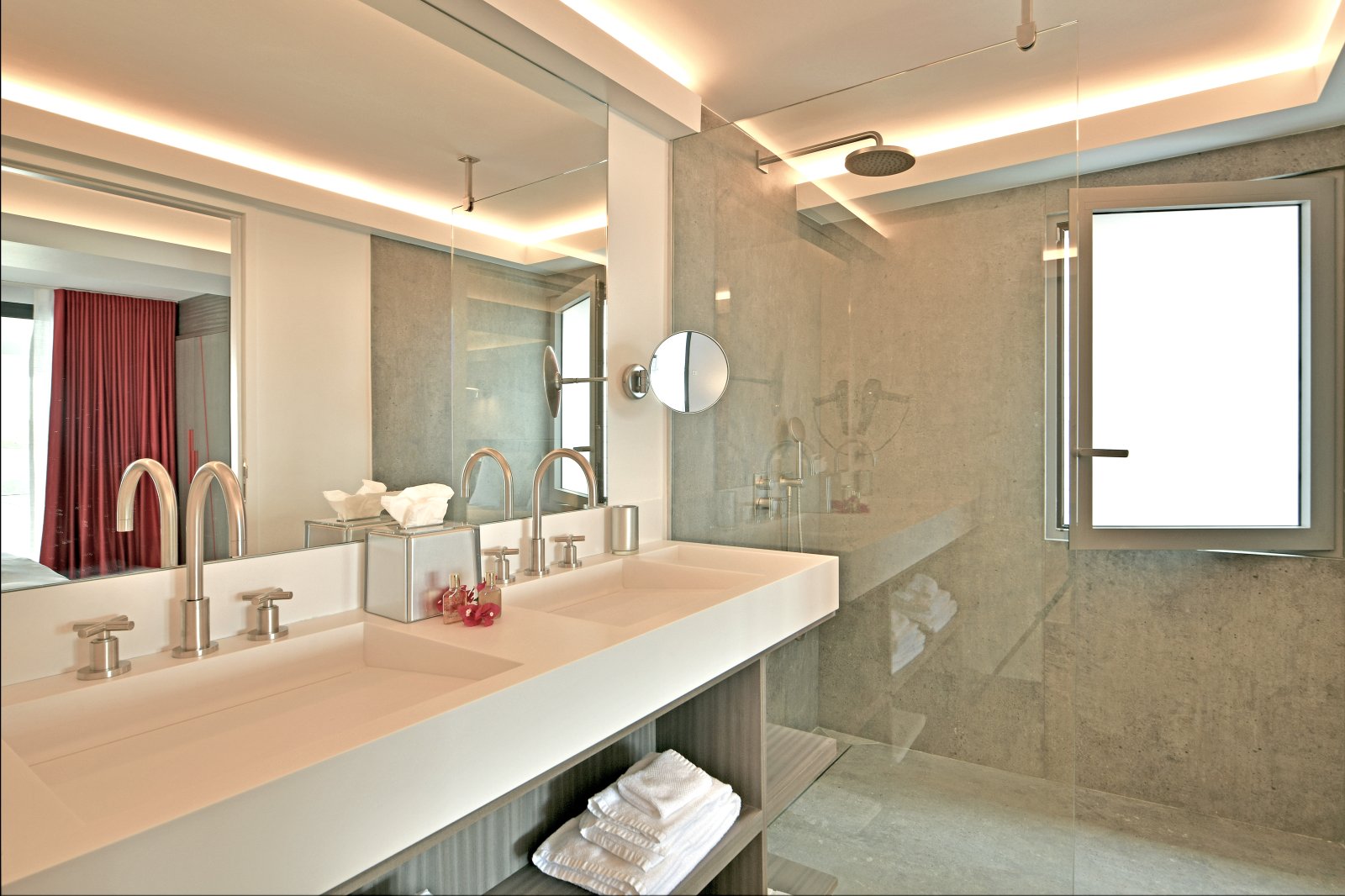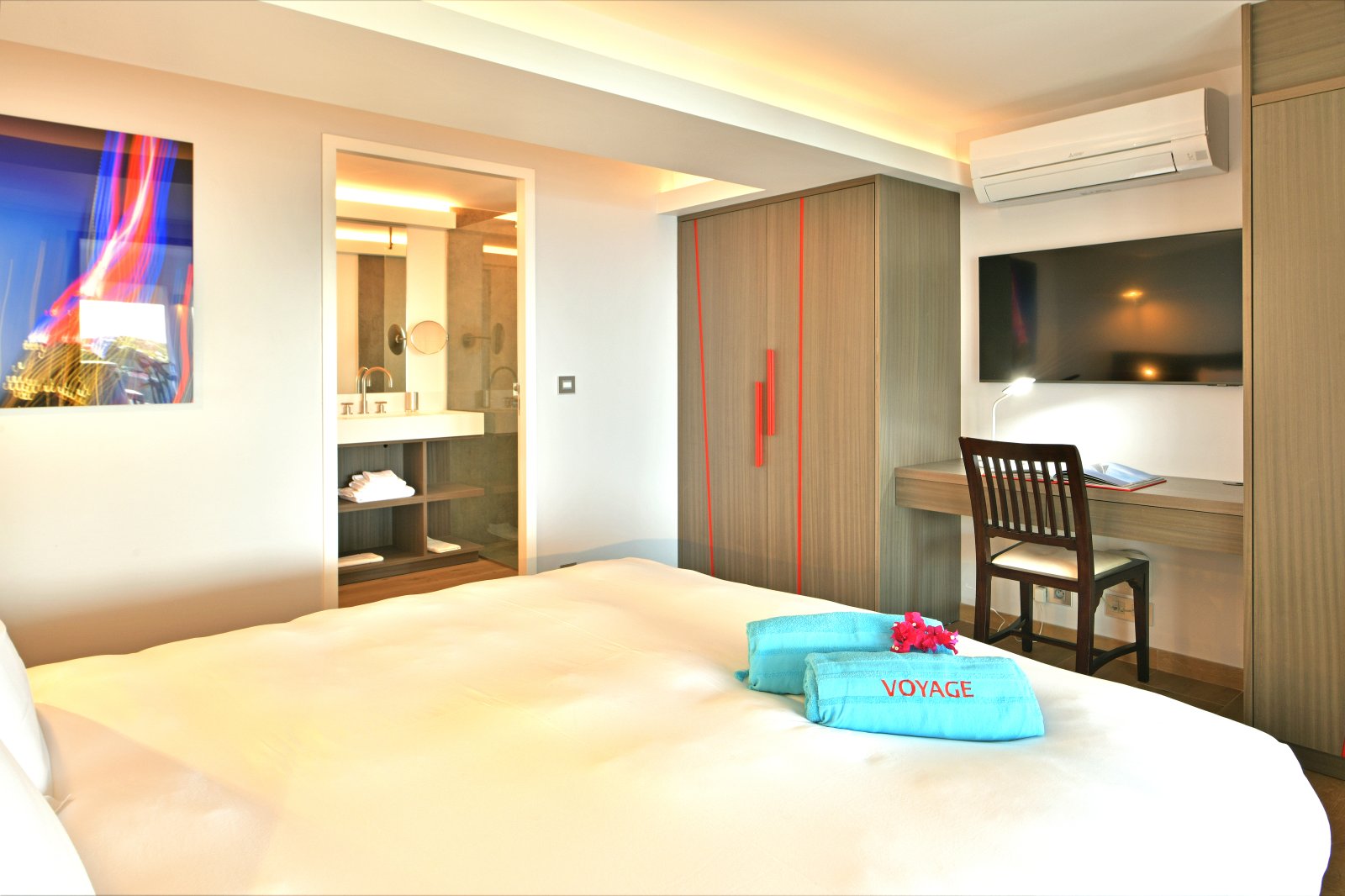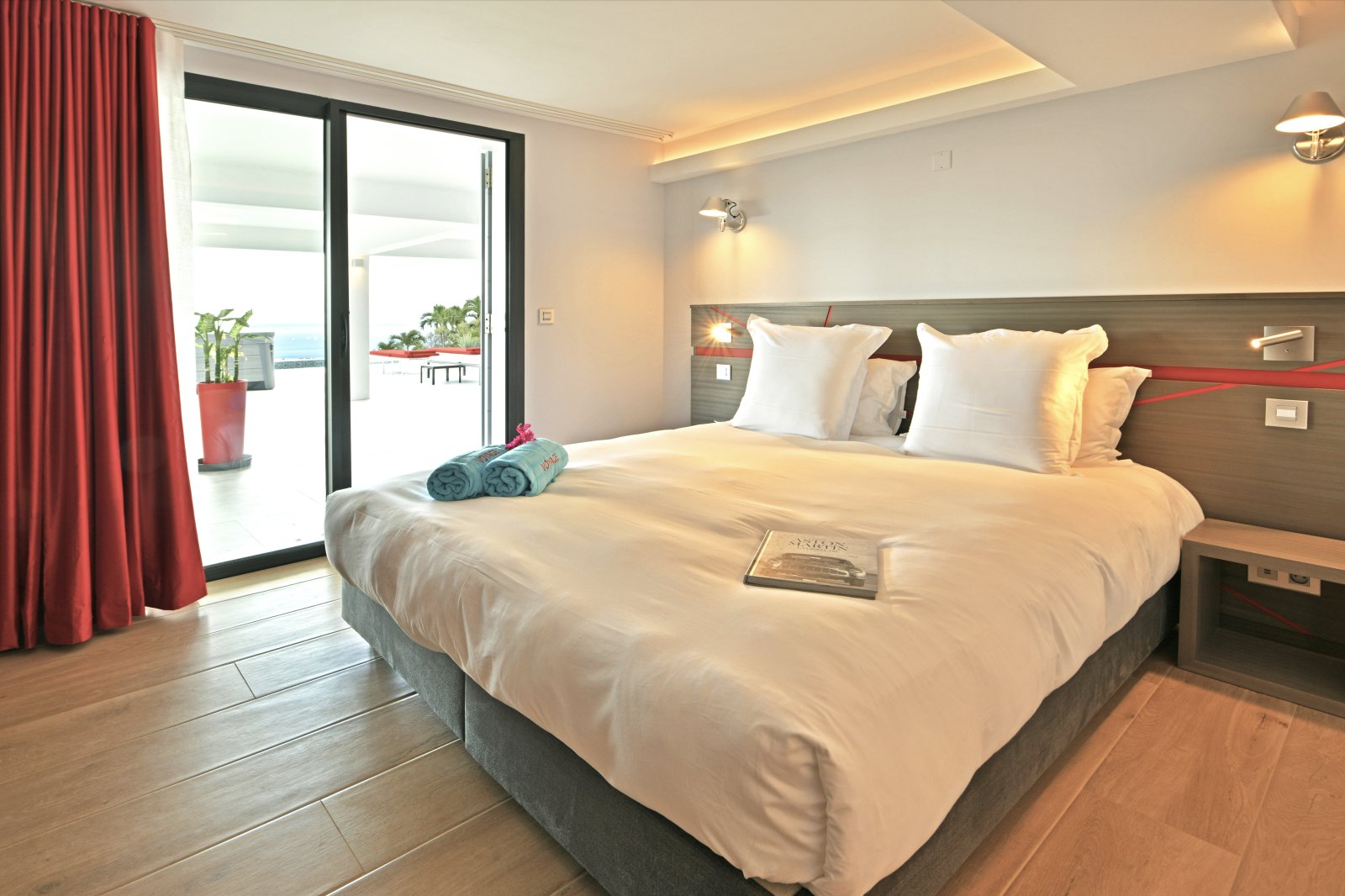 Bed: 2 Twin Beds w/Option as King Bed • En-Suite Bath with Shower and Dual Vanity • Air Conditioning • Flat-Screen TV • Hair Dryer • Safe • Direct Access to Terrace