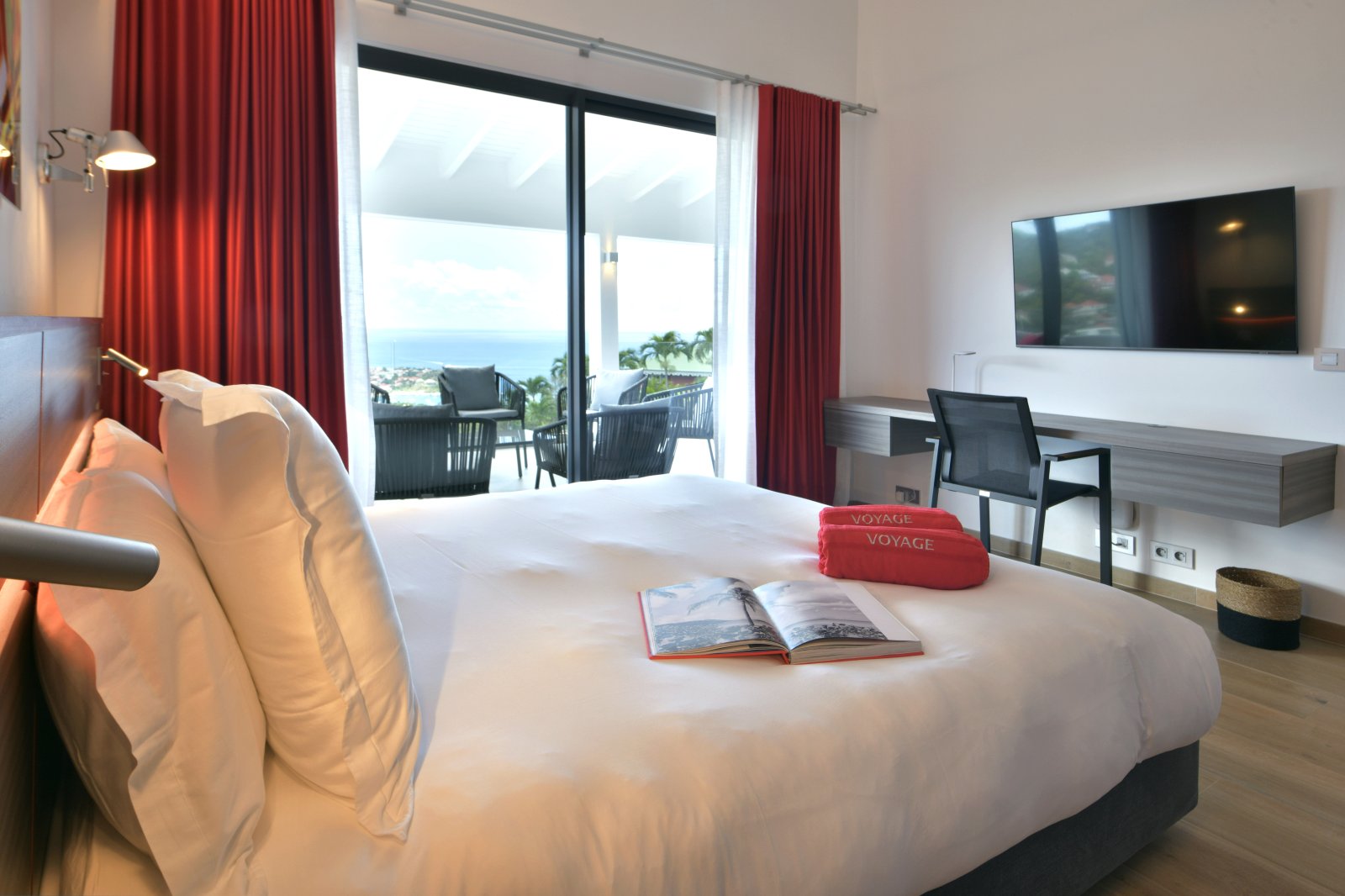 Bed: King Bed • En-Suite Bath • Air Conditioning • Ceiling Fan • Flat-Screen TV • Sound System • Espresso Machine • Mini Refrigerator • Hair Dryer • Safe • Direct Access to Terrace