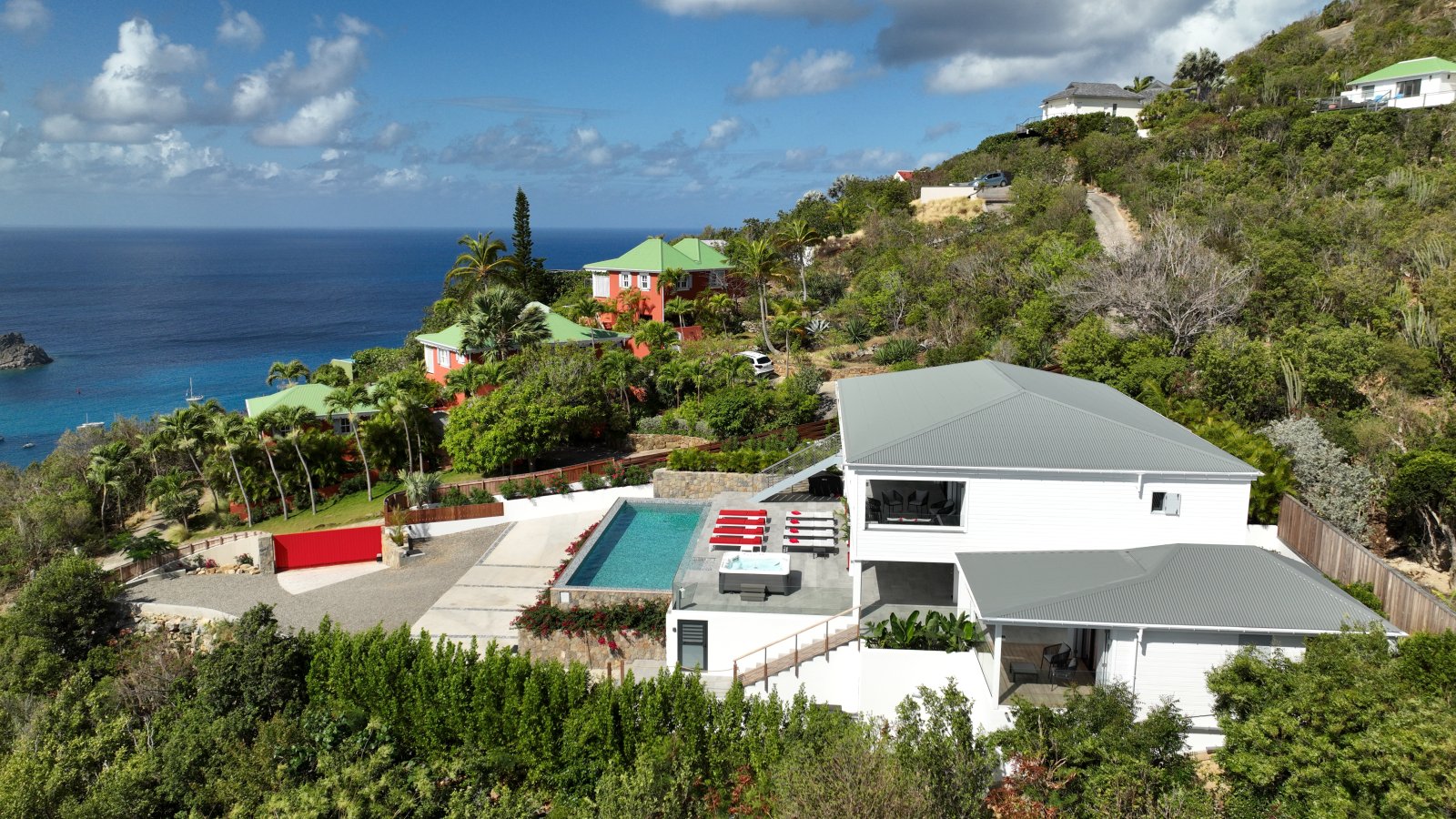 Villa Voyage is positioned just five minutes from beaches, boutiques, restaurants, and nightlife in Gustavia, as well as the airport. At the same time, its location in a private subdivision away from the road offers peace and quiet.