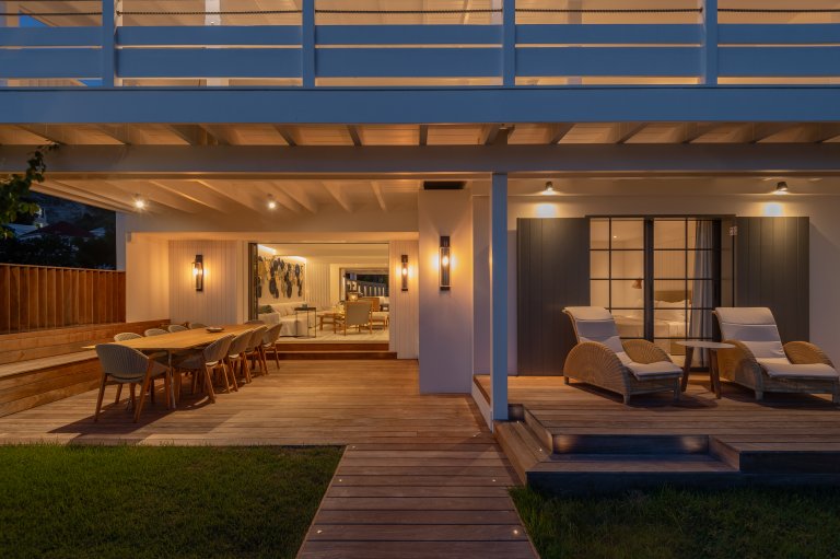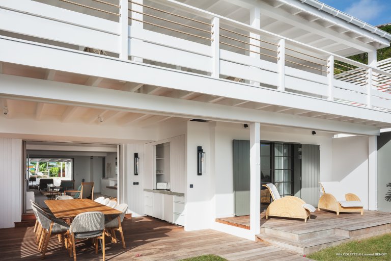 Its extra-close proximity to the Caribbean Sea makes Villa Colette (LET) a unique home in St. Barth. The luxury rental property is in Corossol, right in front of a beach that is a dream for swimming or enjoying the sunset with a drink in your hand and your feet in the sand. Its neighborhood is a traditional village with a small harbor where local pleasure and fishing boats are anchored.