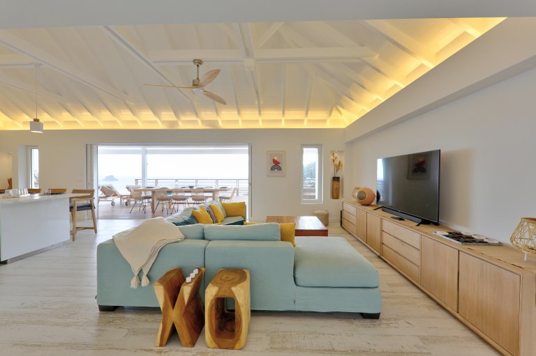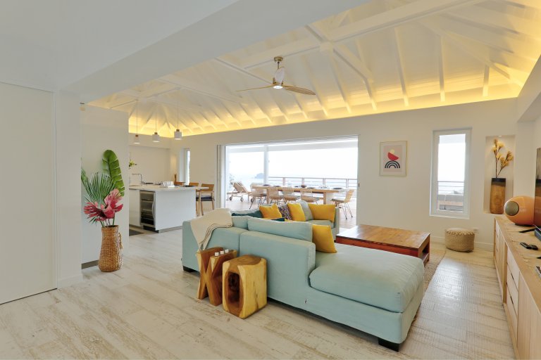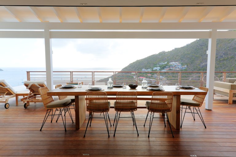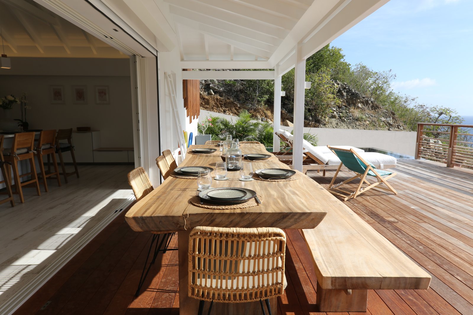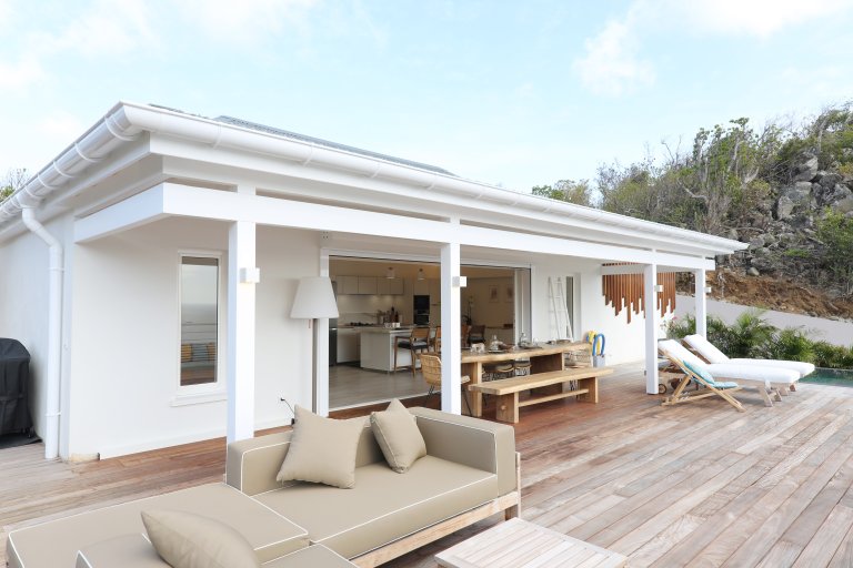 The newly built Villa Coucher de Soleil (COS) is an oasis of true St. Barth living in the quaint Corossol neighborhood. The luxury rental property is designed with calm colors and natural materials for an easy way of life in harmony with nature. As the name suggests, the house gives its guests spectacular sunset views all year long.