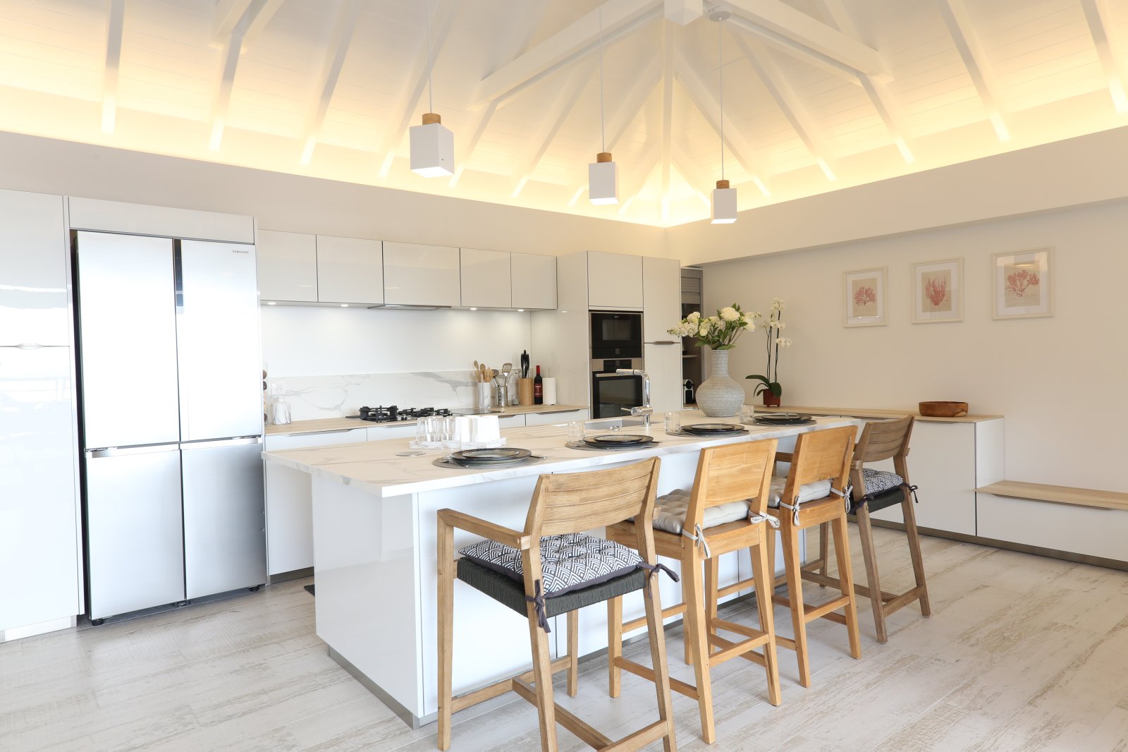 Fully Equipped Kitchen Dishwasher, Oven, Coffee Maker • Blender • Espresso Machine • Juicer • Microwave • Toaster • Wine Cooler • Bar Seating - for 4