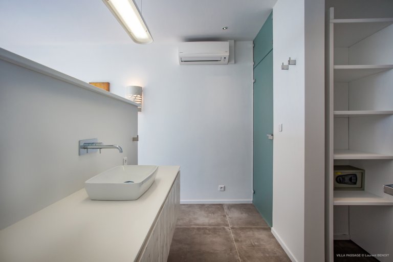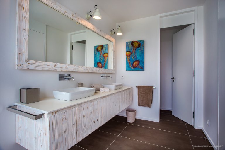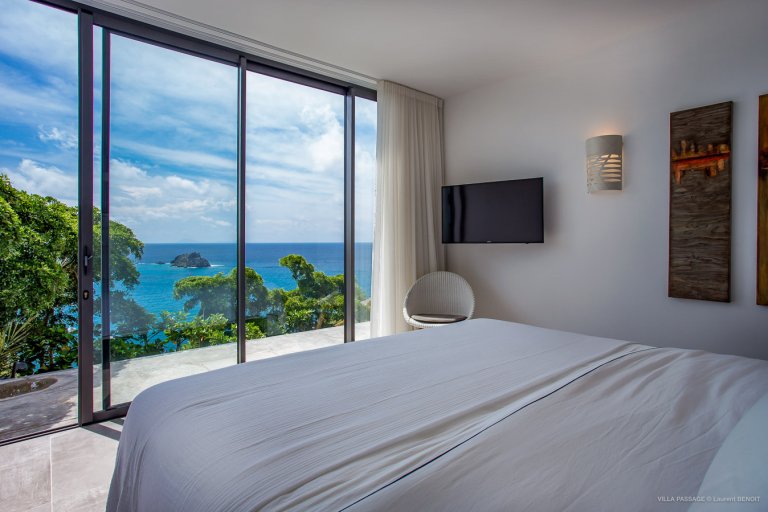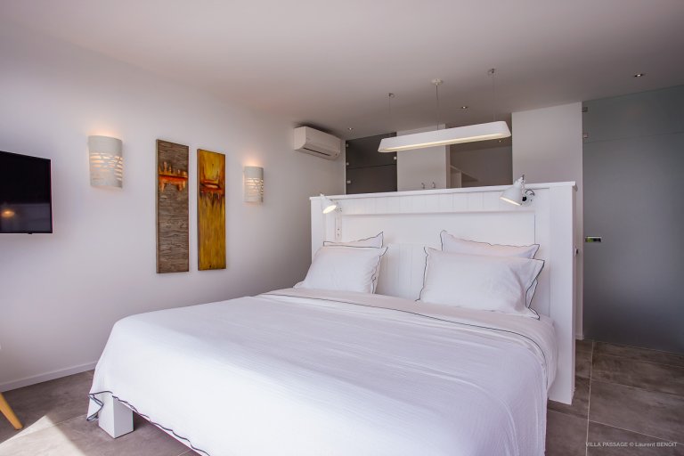 For most of the year, Villa Passage functions as a one-bedroom villa, with the sleeping quarters on the same level as the pool and living area. During the holiday period, it is available as a two-bedroom home, with the second bedroom located on the level below the main living spaces. Both bedrooms are lavish, with king beds, air-conditioning and ensuite bathrooms.