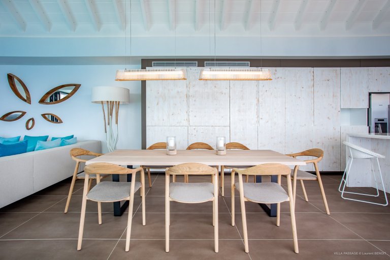 Everywhere you look, there are spectacular panoramas of turquoise and blue. They feel animated as well, as the villa is a good vantage point for watching boats come and go. As many of the exterior walls as possible in this vacation home are made of glass, it is easy to lose yourself in the landscape and to surrender to the Caribbean island vibes.