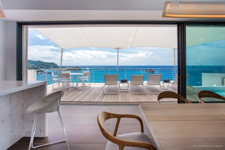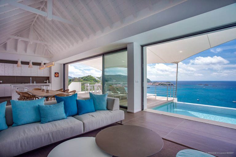 There are many villas and hotels on the island of St. Barth that work well for a romantic weekend. But one of the most beguiling is Villa Passage (PAG), a contemporary luxury rental property situated in Corossol. That location gives it dramatic views over the charming village below and the lights and passing yachts of Gustavia in the distance.