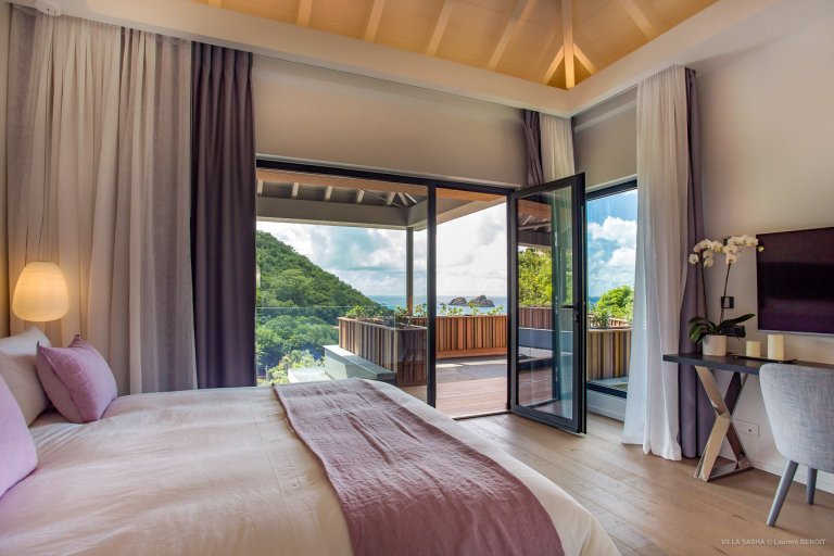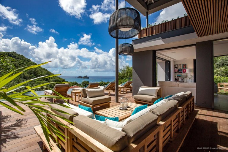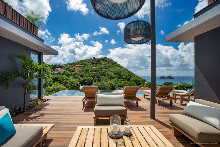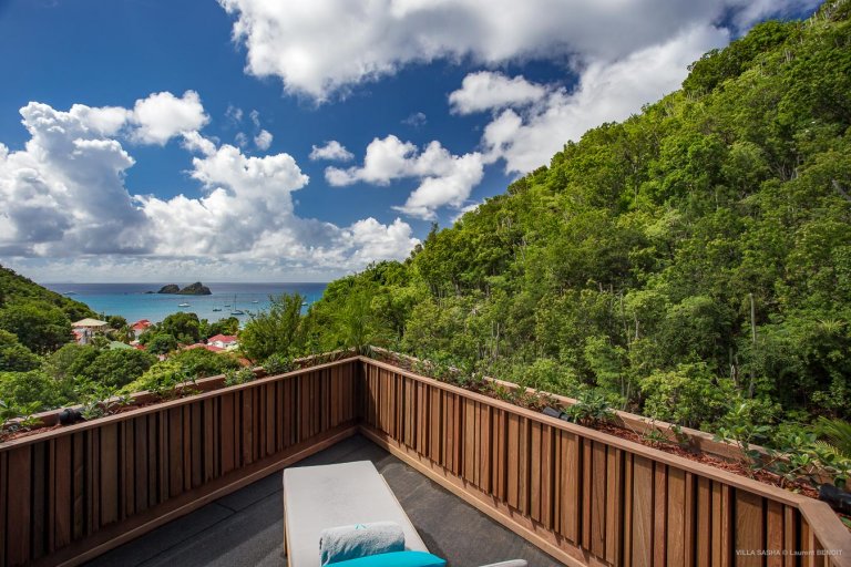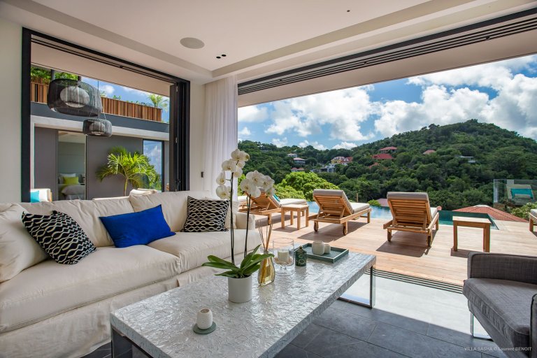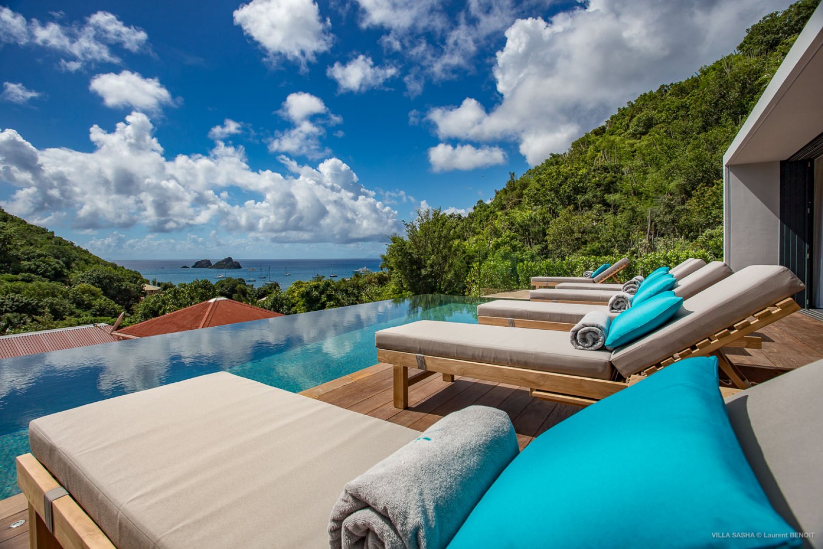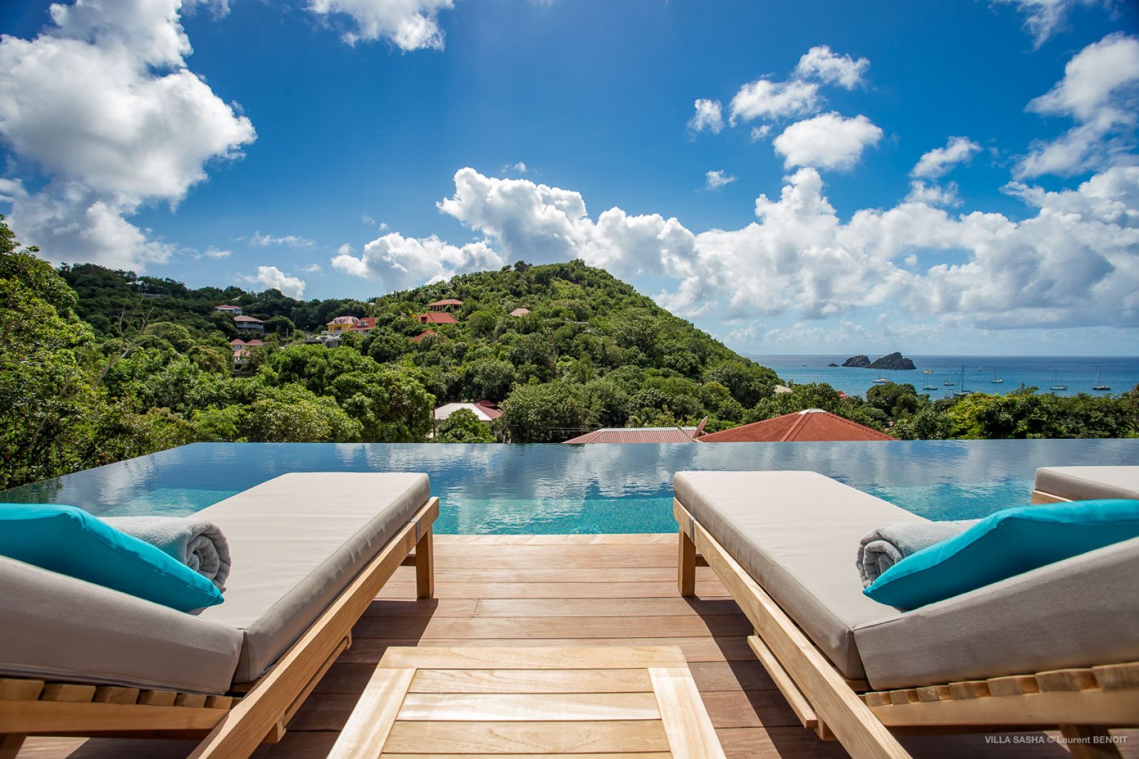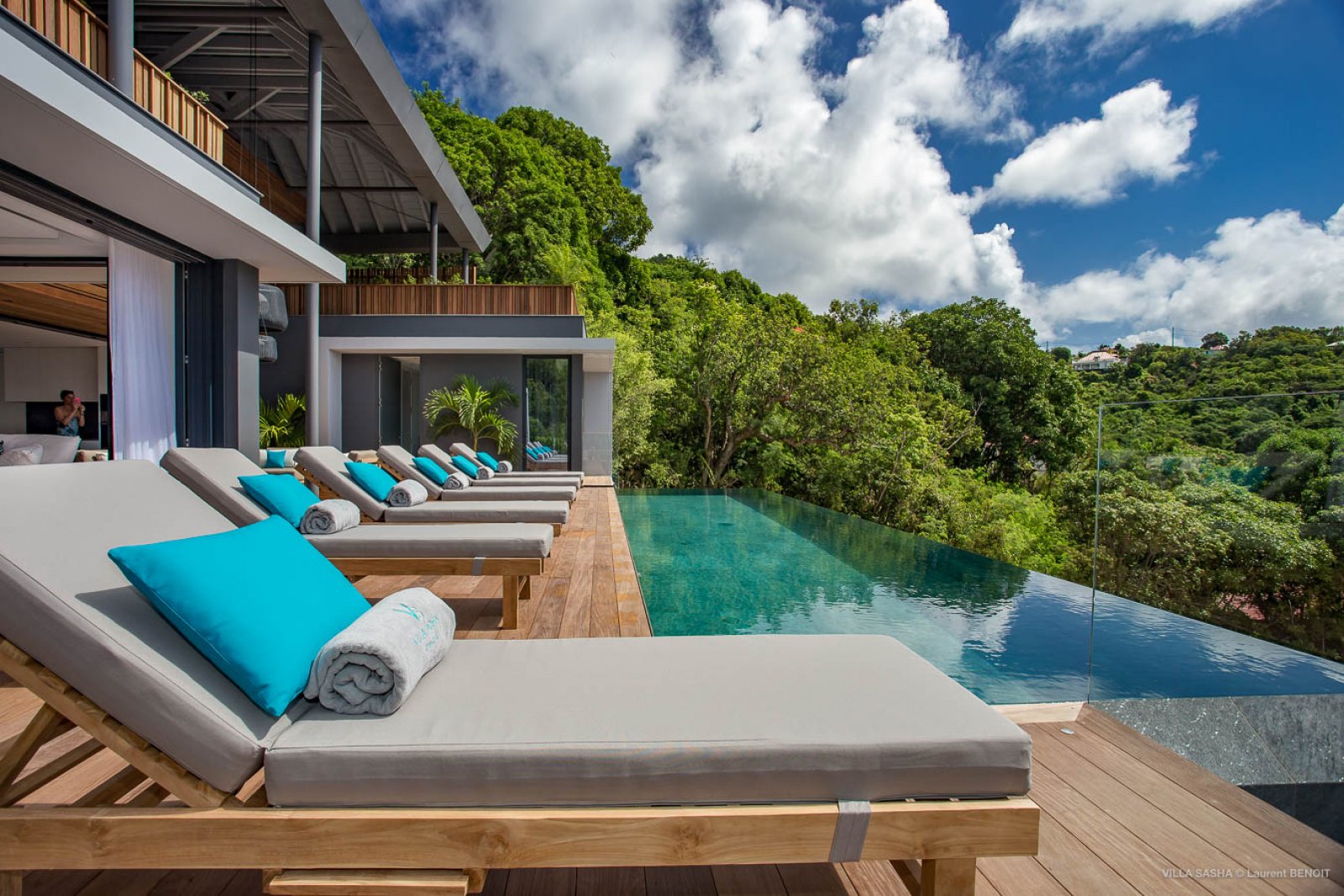 Tucked into the green hills of Corossol, an area that's one of St. Barth's underappreciated gems, the newly built Villa Sasha manages to pull of that ever elusive balancing act. It's sleek modern in look yet homey and comfortably in feeling. The luxury rental property is made even more peaceful and relaxing by its views of the verdant landscape, shimmering sea, and vibrant sunsets.