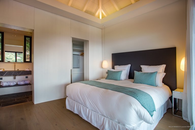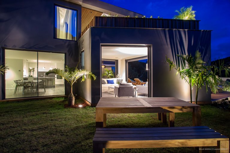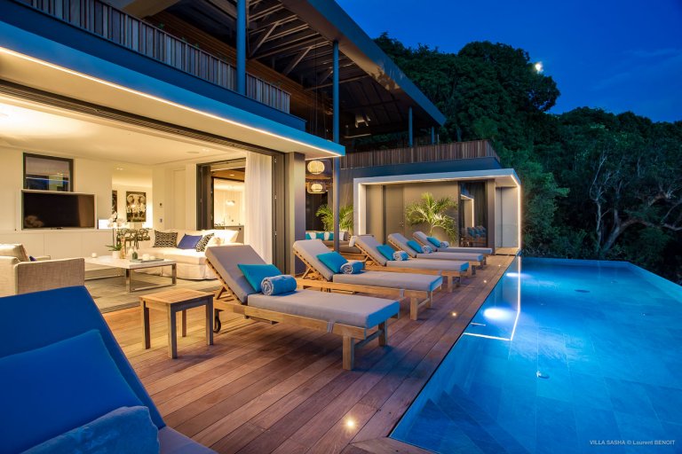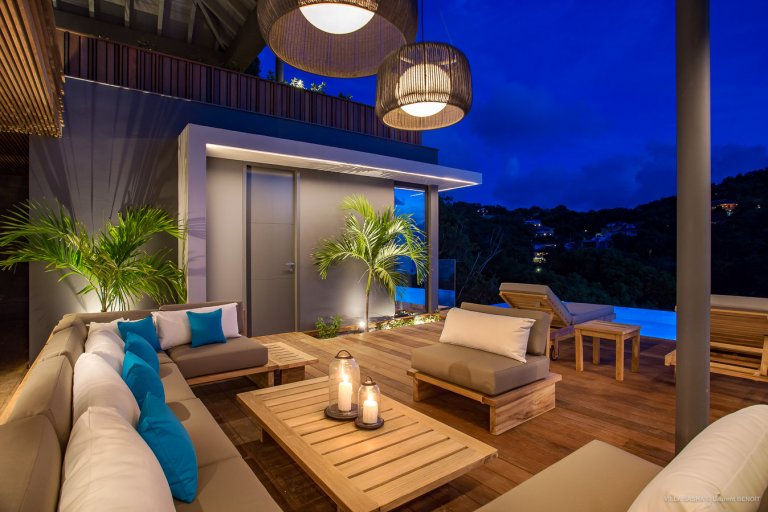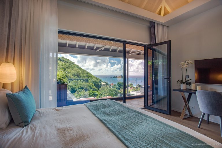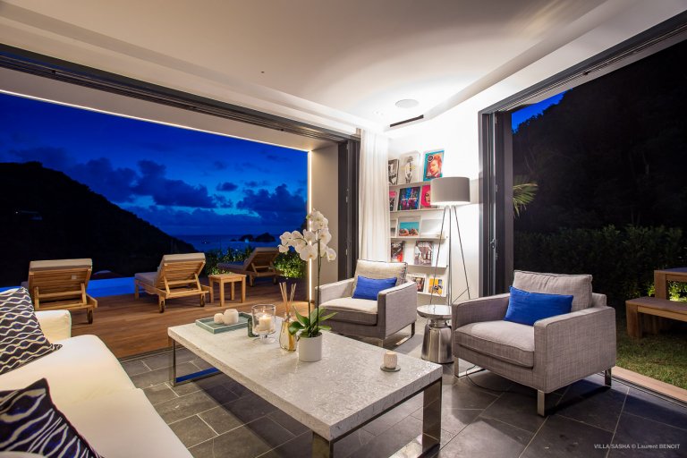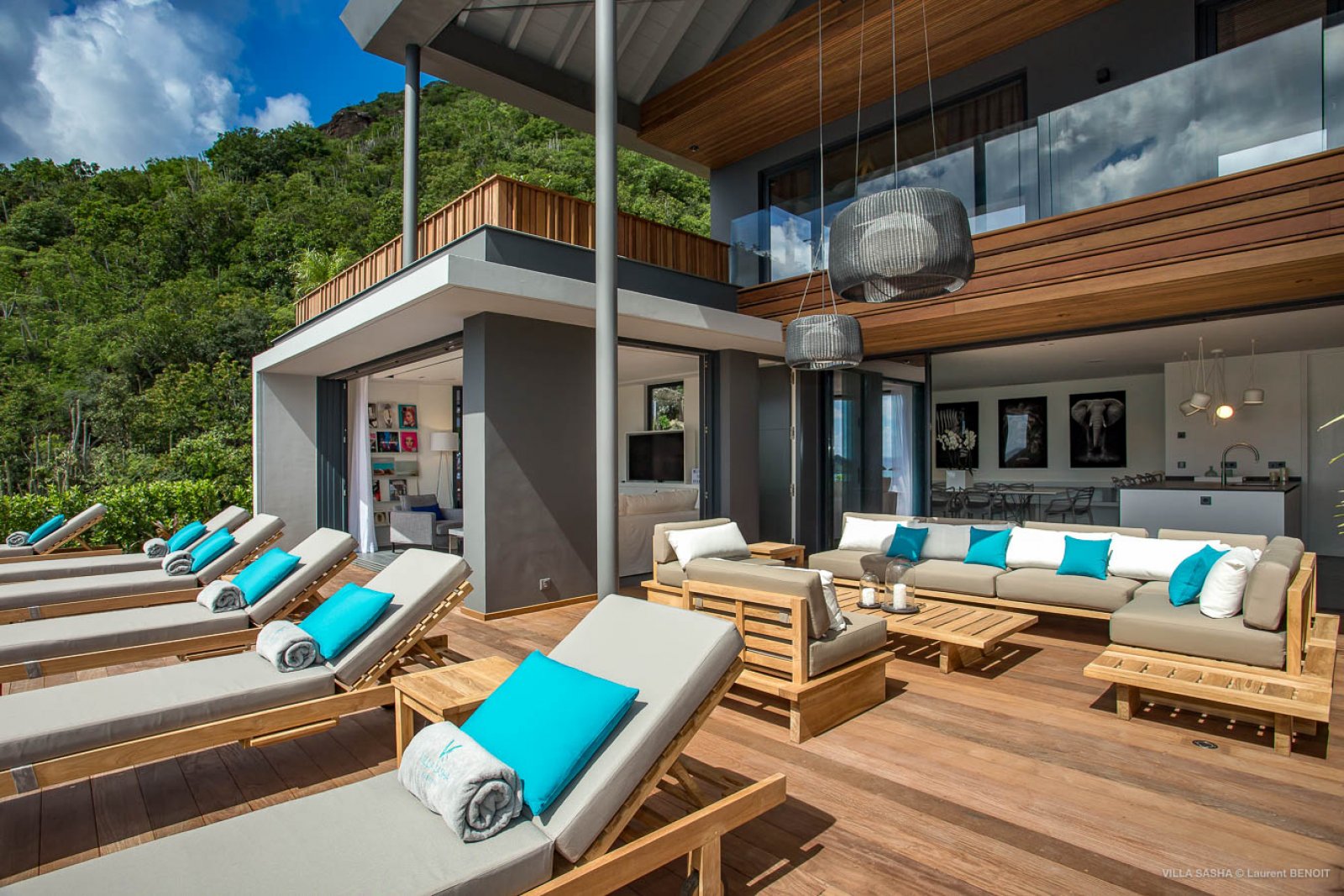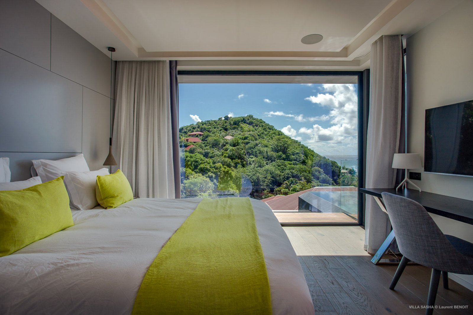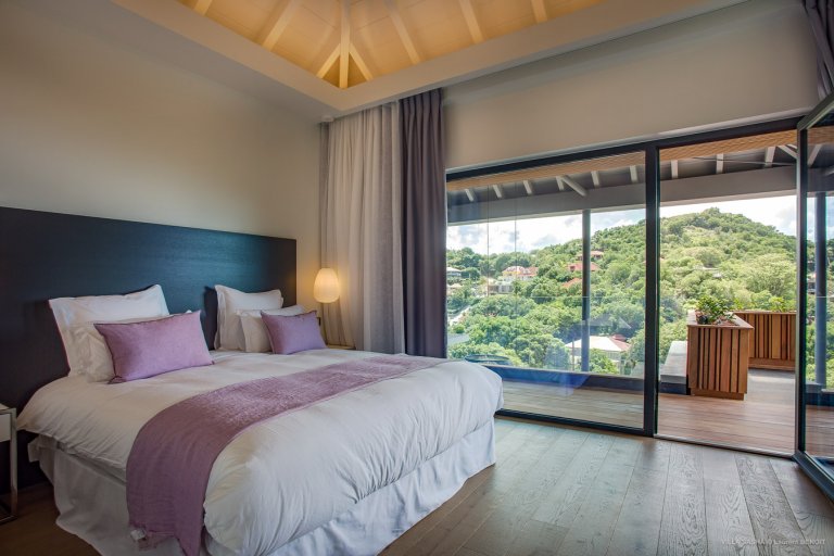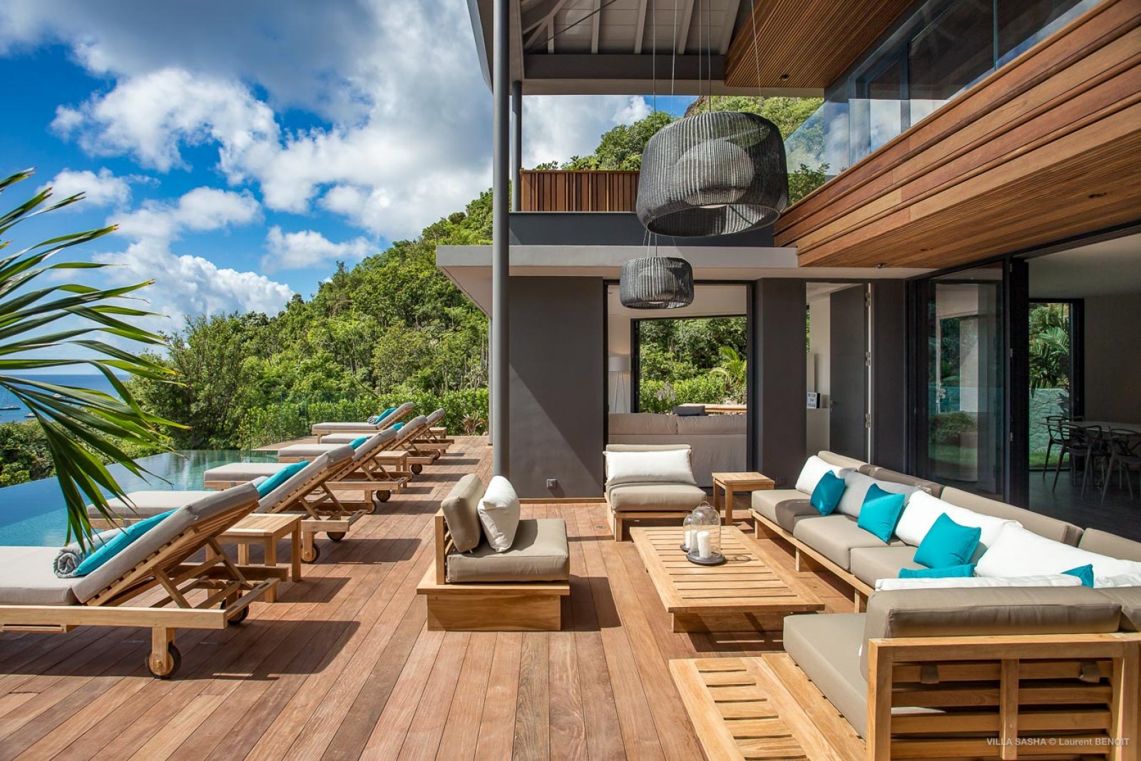 Tucked into the green hills of Corossol, an area that's one of St. Barth's underappreciated gems, the newly built Villa Sasha manages to pull of that ever elusive balancing act. It's sleek modern in look yet homey and comfortably in feeling. The luxury rental property is made even more peaceful and relaxing by its views of the verdant landscape, shimmering sea, and vibrant sunsets.