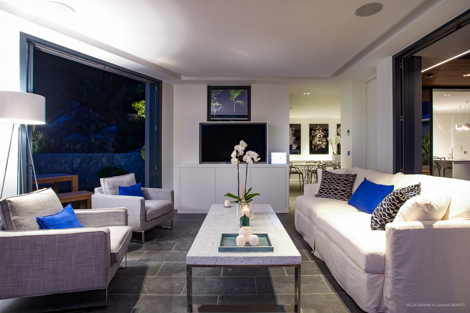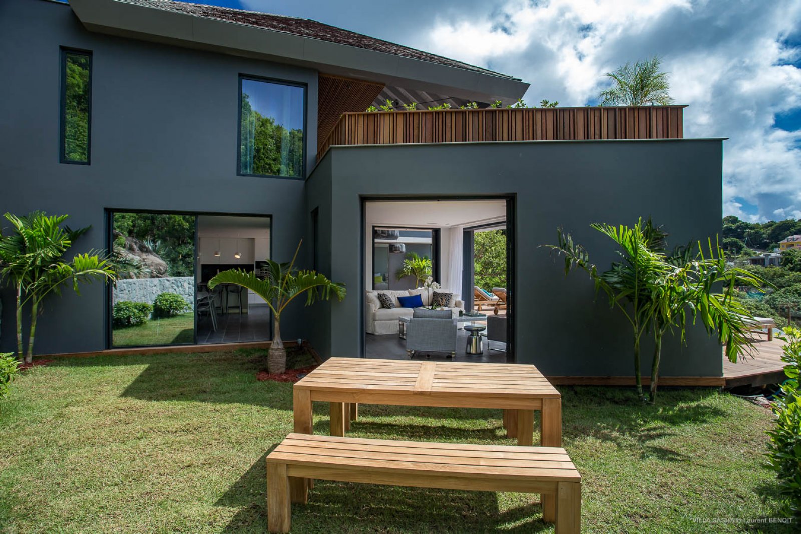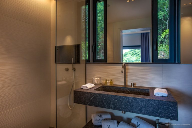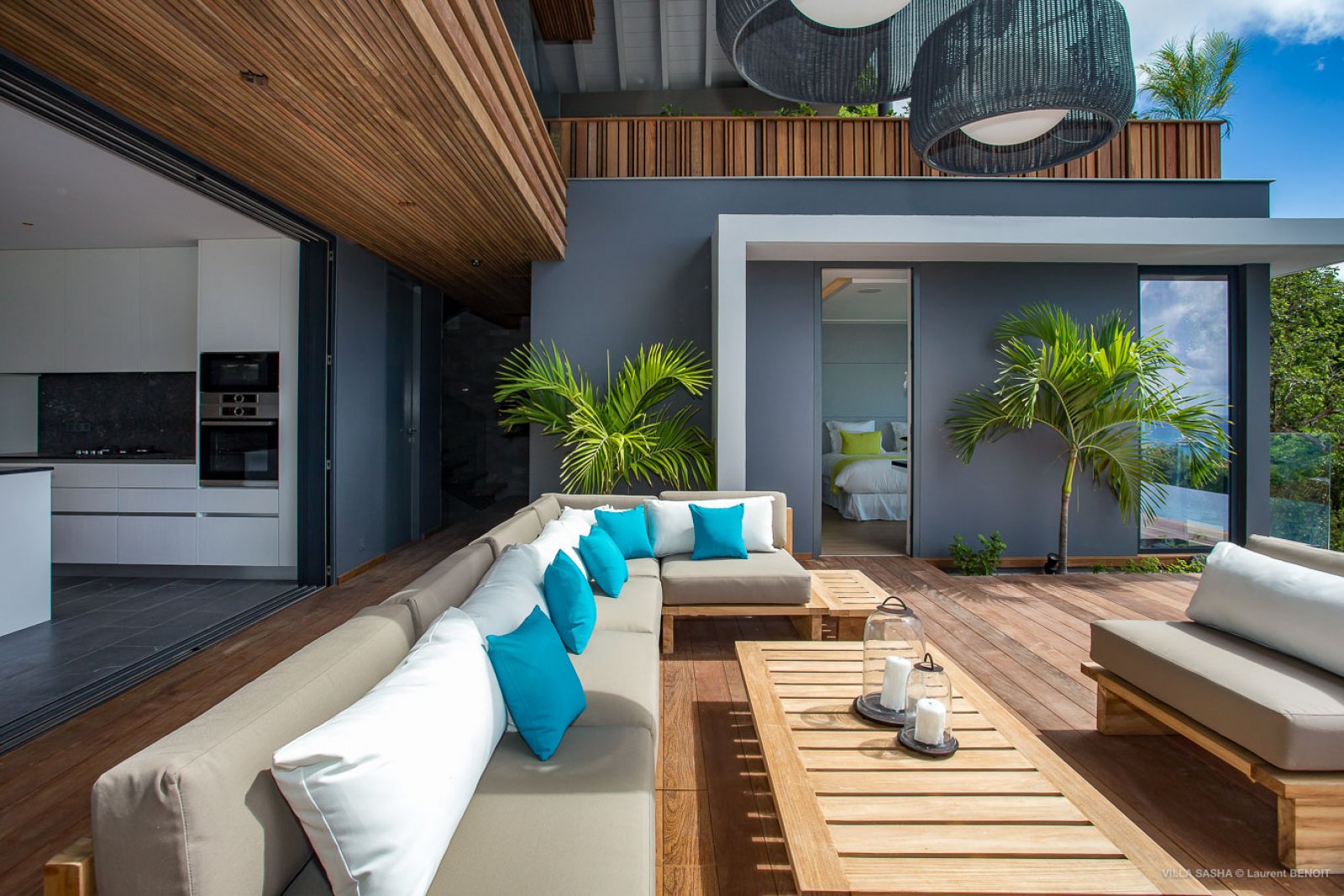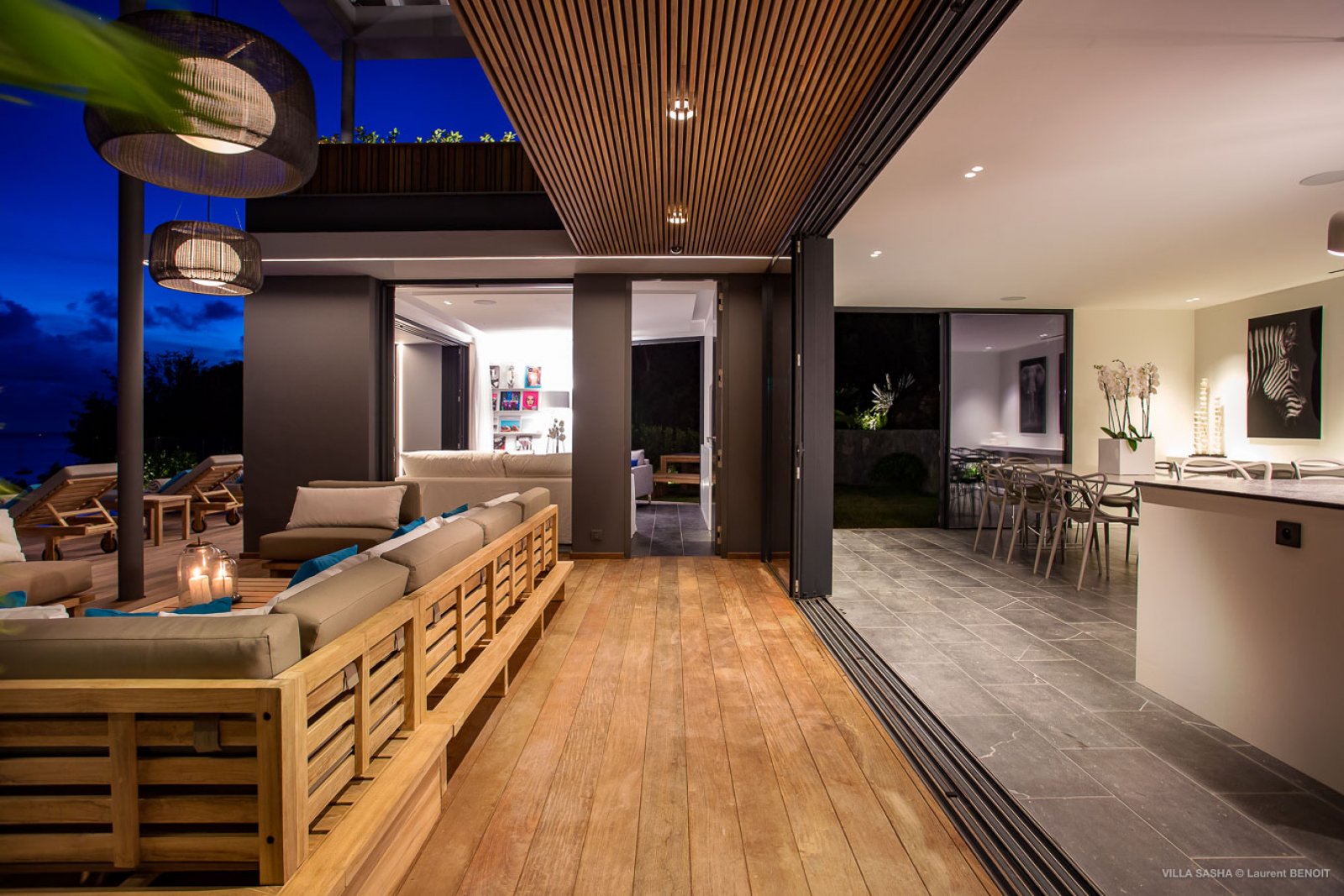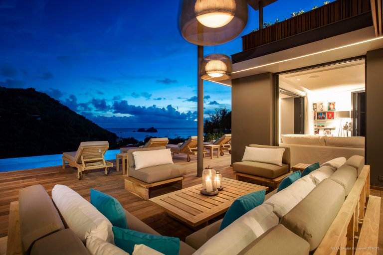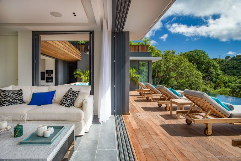 Tucked into the green hills of Corossol, an area that's one of St. Barth's underappreciated gems, the newly built Villa Sasha manages to pull of that ever elusive balancing act. It's sleek modern in look yet homey and comfortably in feeling. The luxury rental property is made even more peaceful and relaxing by its views of the verdant landscape, shimmering sea, and vibrant sunsets.