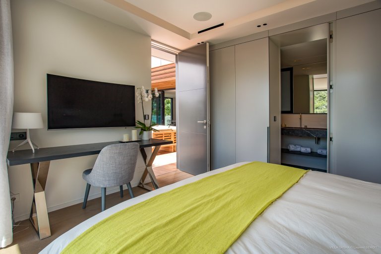 The vacation home is versatile, with a layout that makes it well suited to groups of friends celebrating a special occasion together and to parents on holiday with their children, and the concierge can customize an extra-special stay for any type of guests. The bedrooms are separated, so there is plenty of privacy, along with ample spaces for people to come together.