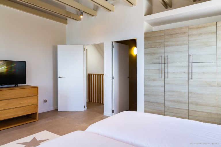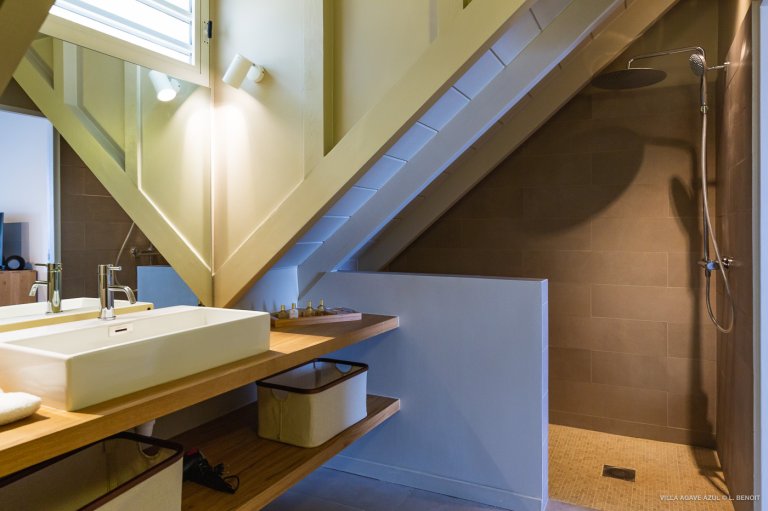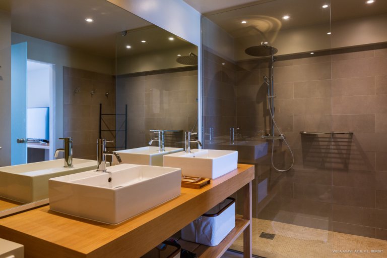 Villa Casa Azul's upper level offers two adjacent bedrooms, one designed as a second master bedroom with a kind bed, and the second as a children's room with three twin beds. Both rooms have sea views and private ensuite baths. The fourth bedroom has recently been added and is situated on a level below the pool area. Villa Casa Azul is especially appropriate for families with a strong preference for a smoke-free environment, as the owners respectfully require that smoking be strictly limited to the terrace, and that no candles be used anywhere on the property. The villa was recently upgraded with optical fiber pro Internet.