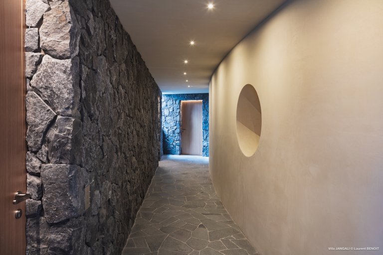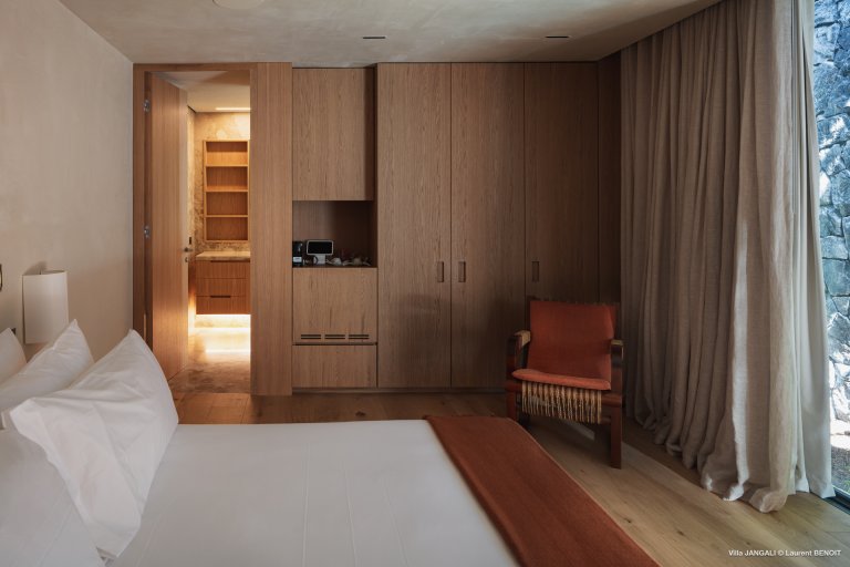 All five bedrooms are situated on the lower level, equal in size and style, with a minimalist yet welcoming design. Each enjoys direct access to the grounds, giving a sense of independence while remaining part of the whole.