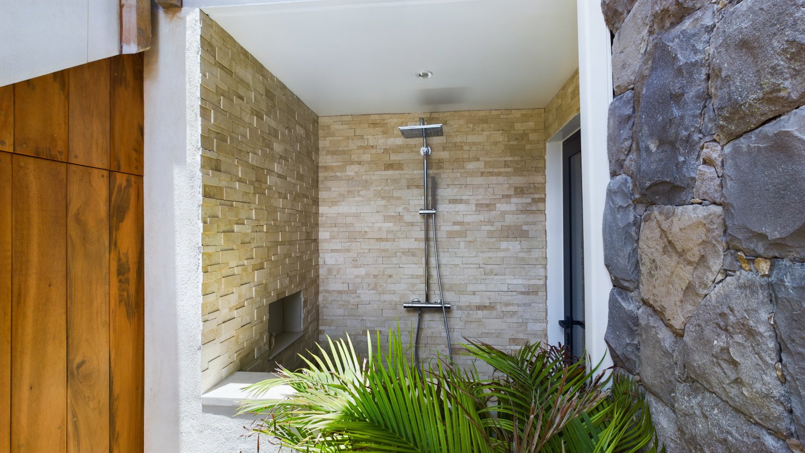 Unsurprisingly, the newly built Villa On the Rock (OTR) is perched on a rocky promontory. It sits at the far end of Flamands Beach, not quite beachfront but within easy walking distance to the sand and the waves.