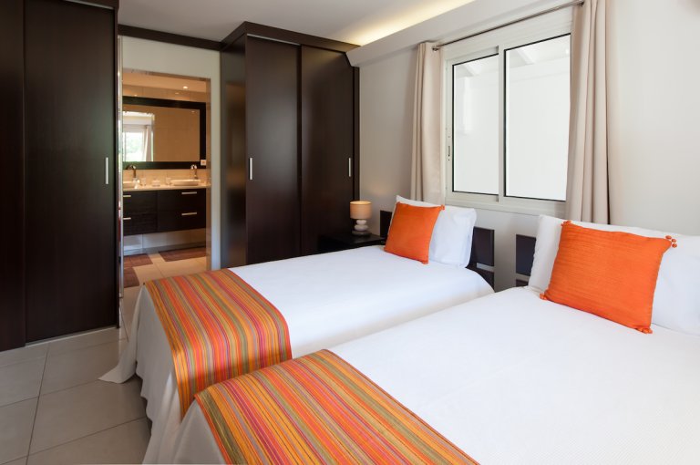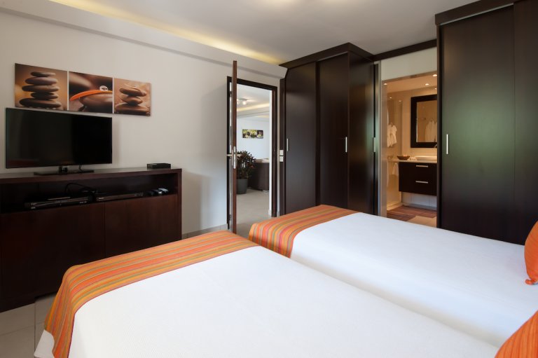 Bed: 2 Twin Beds w/Option as King Bed • Air Conditioning • En-Suite Bath with Dual Vanity