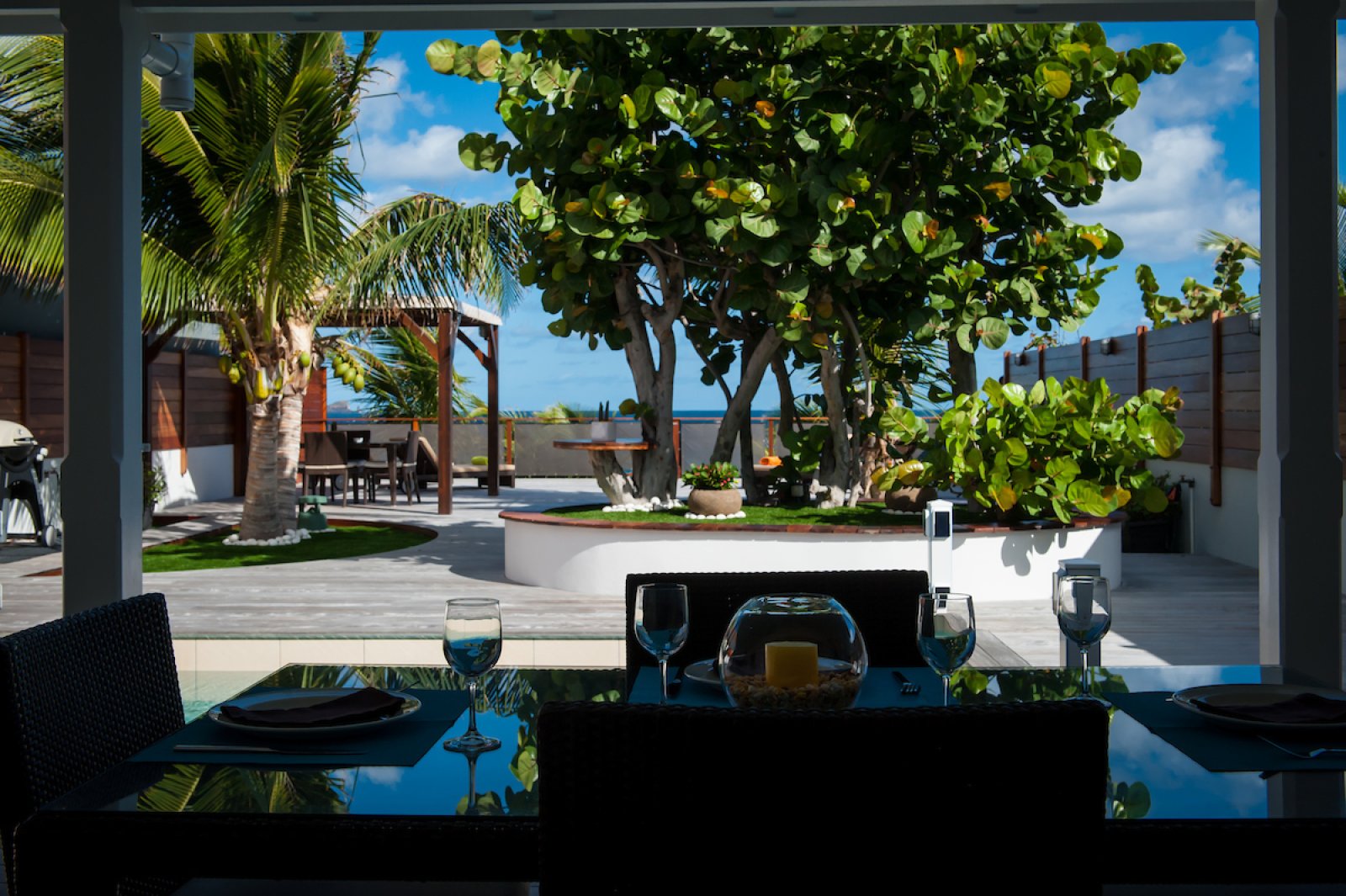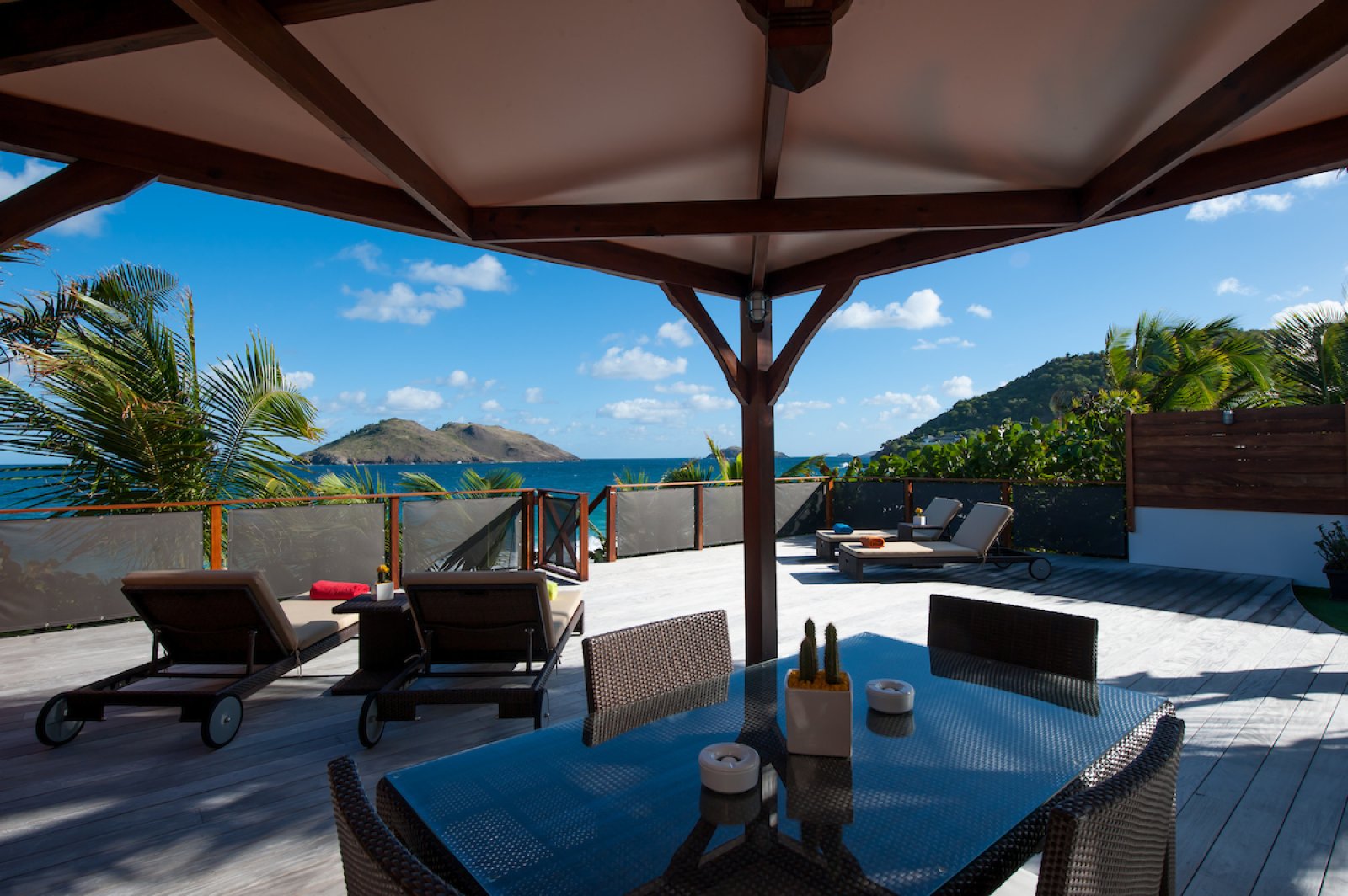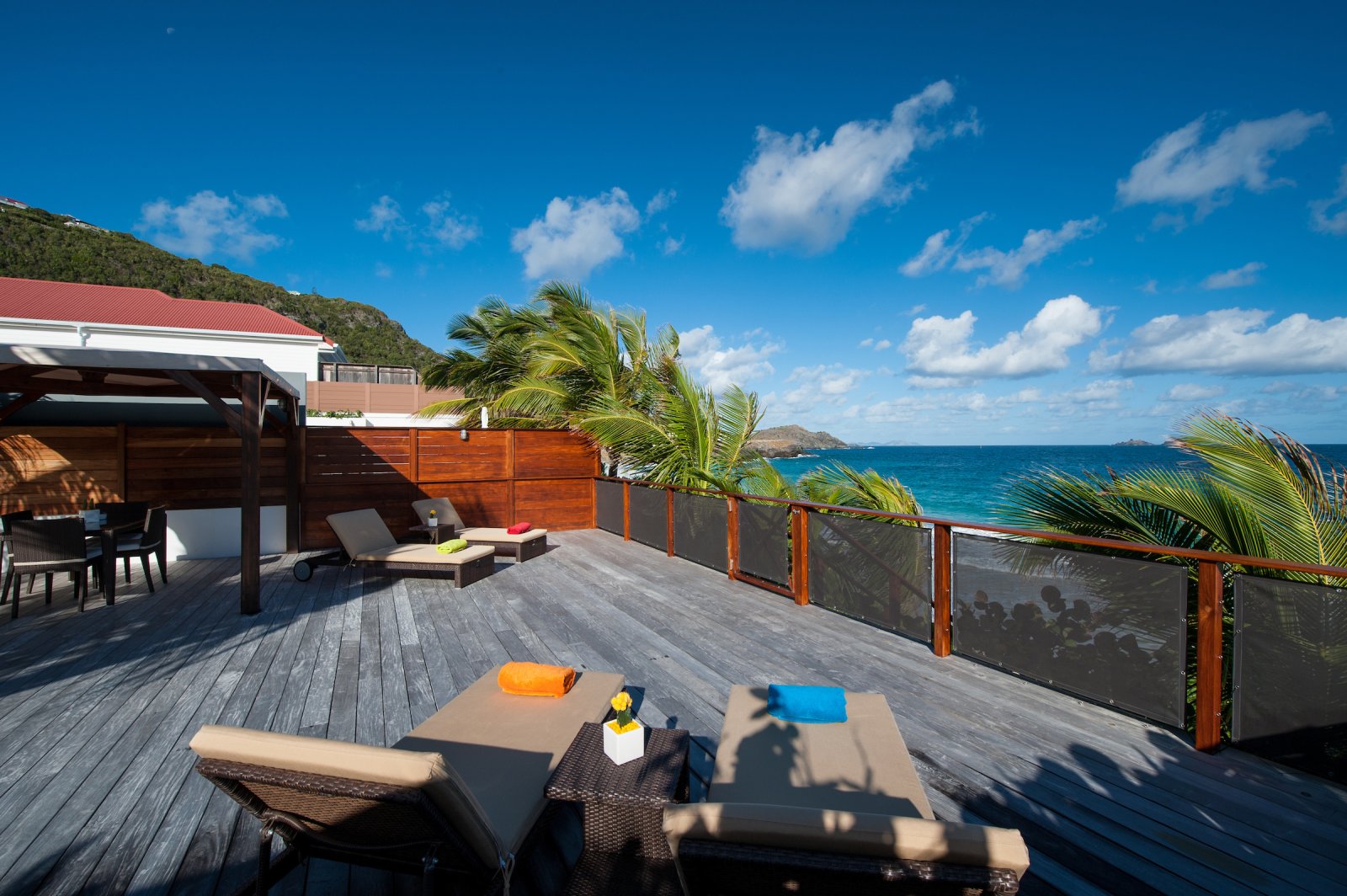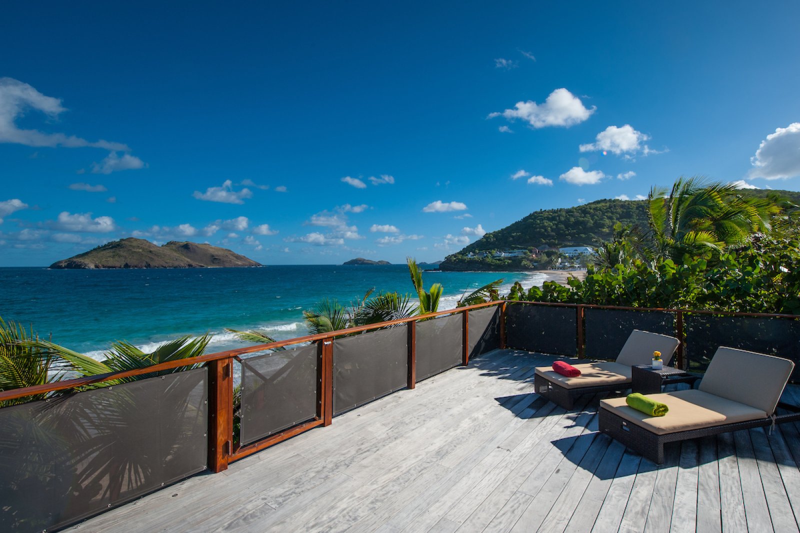 The newly renovated Villa Micela will surely become one of the most sought-after rental properties on the island. Situated directly on the white-sand beach at Flamands, enjoying the ocean breezes and a stunning view of the Atlantic, this smartly designed home offers it all. The integrated living, indoor-dining, and kitchen areas open directly onto the sun-drenched hardwood deck and pool. At the far end of the deck is a covered outdoor dining area that arriving guests know instantly will be their favorite place for every meal.