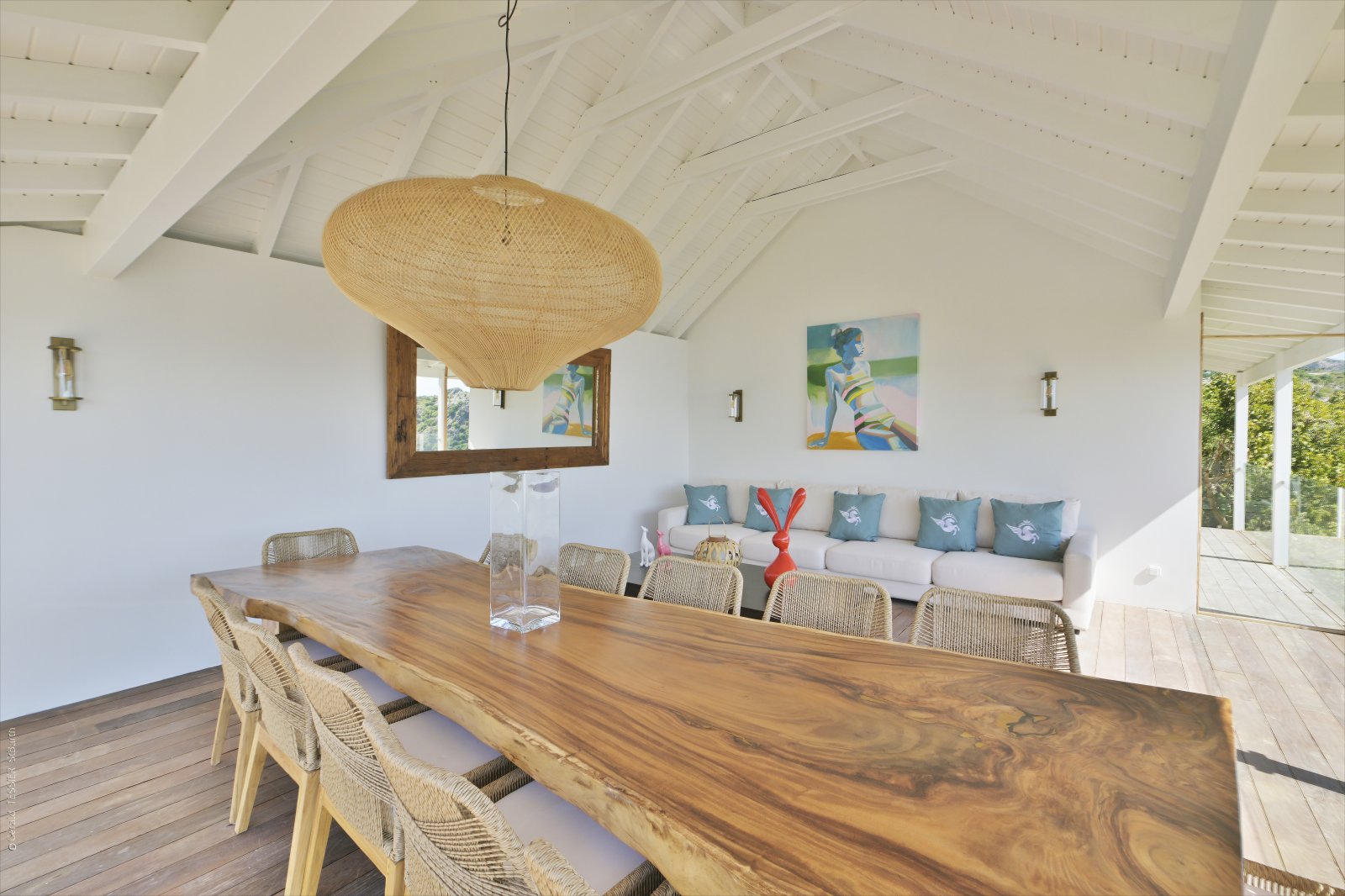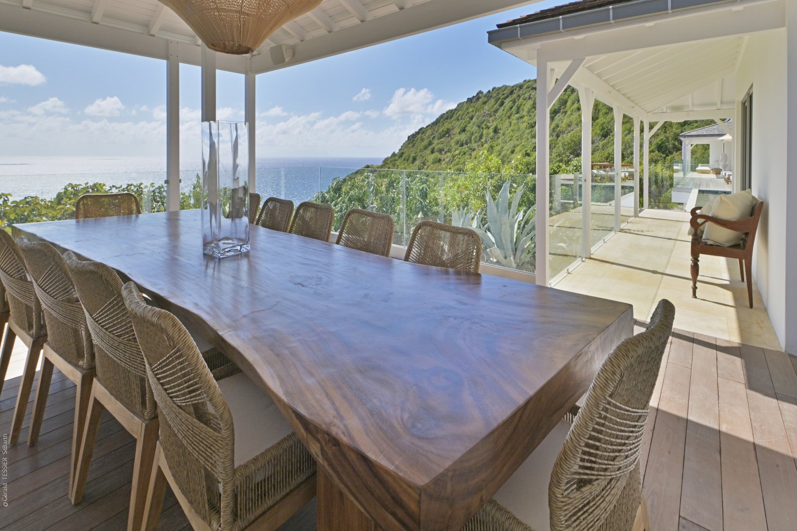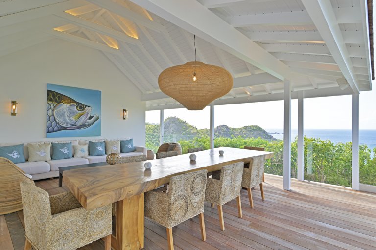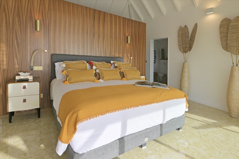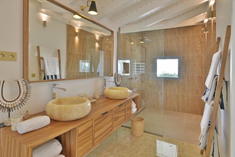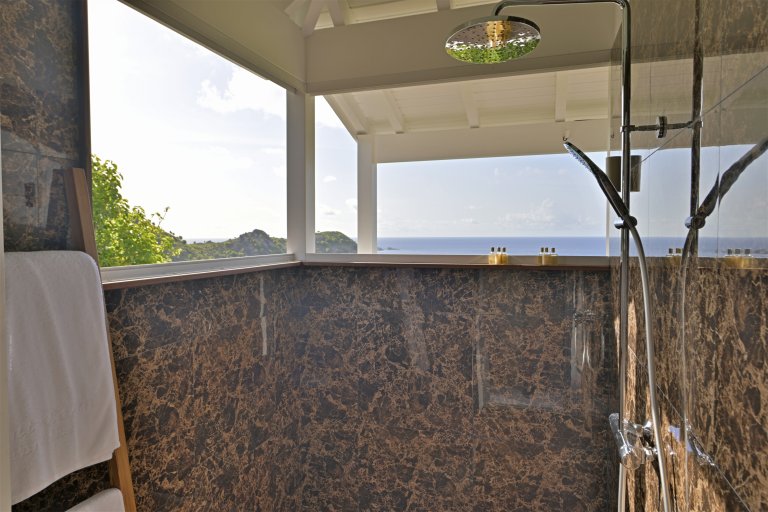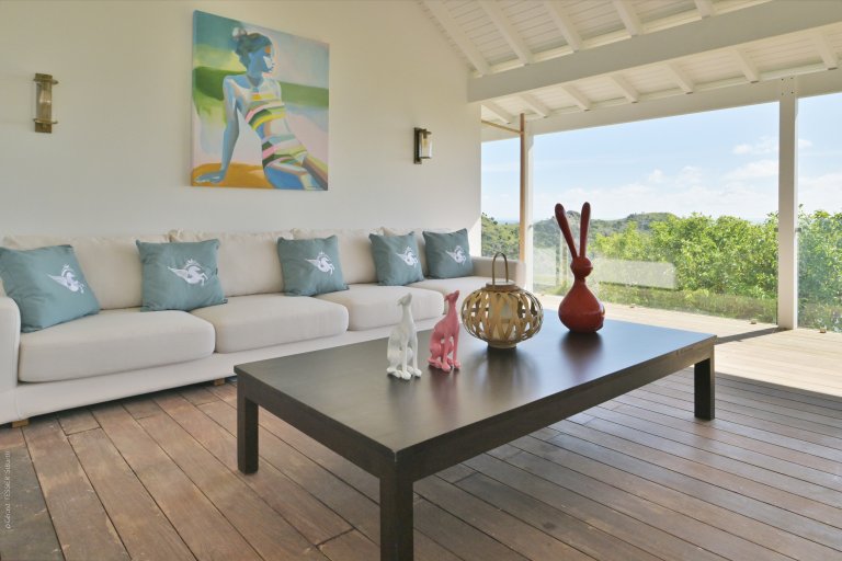Following a recent renovation, Villa Secret Garden has a modern look but still retains its warm and inviting character. The new design of the luxury rental property makes judicious use of noble materials, sumptuous stone, colorful touches, and eye-catching art. But perhaps the most appealing feature is the incredible view over Gouverneur Beach and the hills that surround it. This is one of the best in St. Barth.
