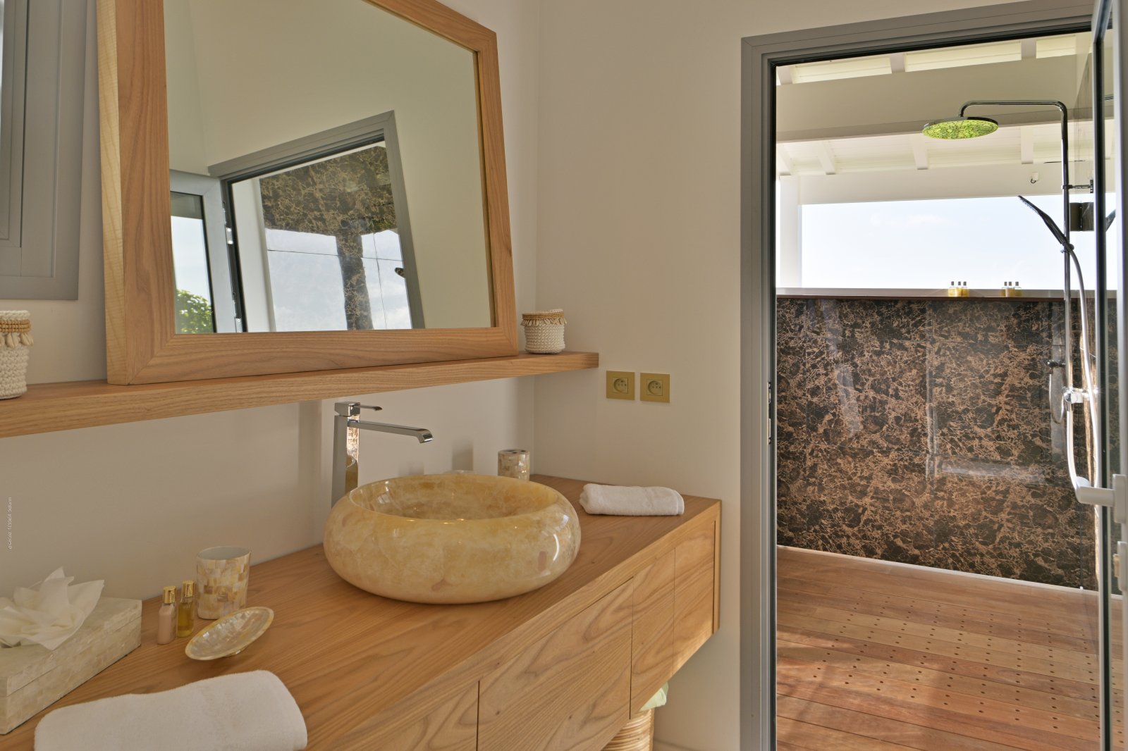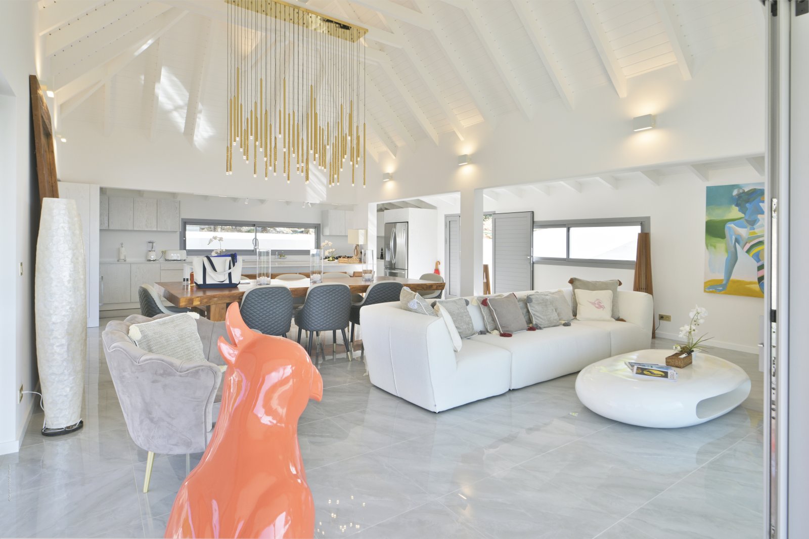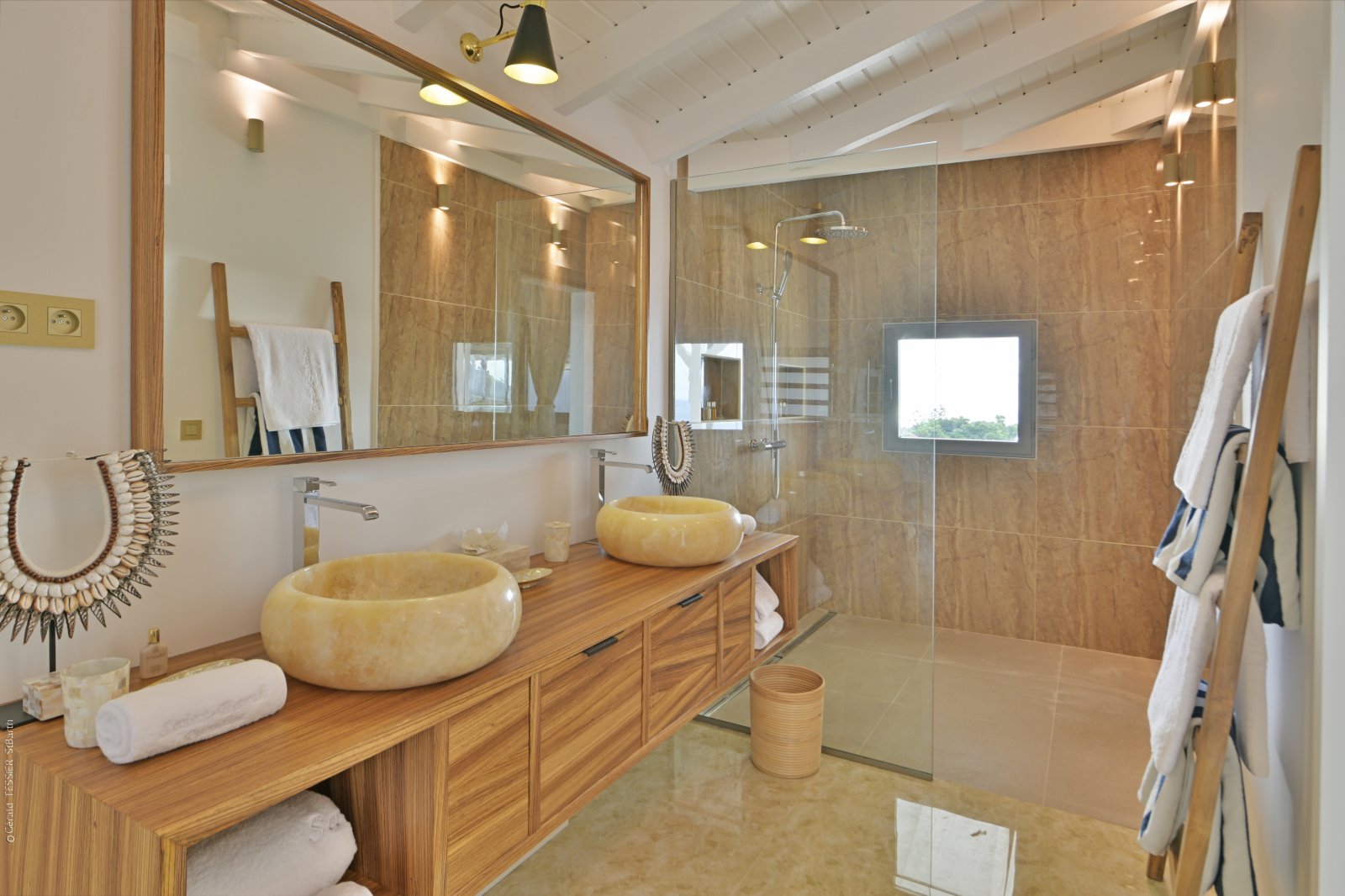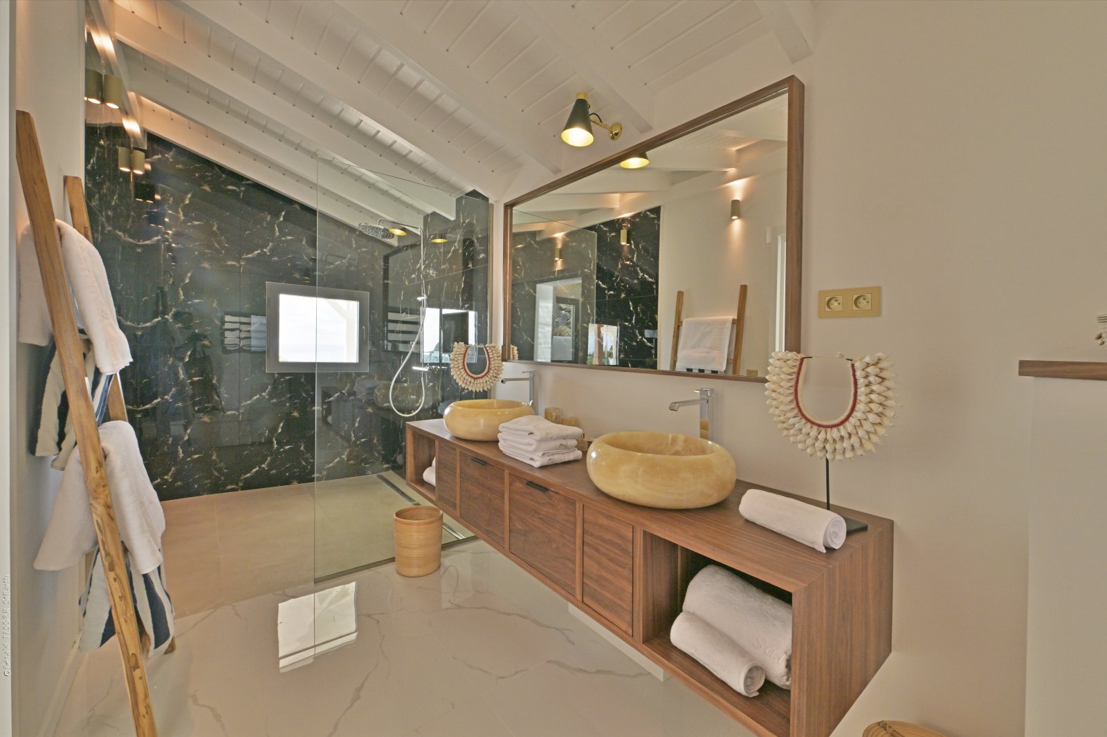 Following a recent renovation, Villa Secret Garden has a modern look but still retains its warm and inviting character. The new design of the luxury rental property makes judicious use of noble materials, sumptuous stone, colorful touches, and eye-catching art. But perhaps the most appealing feature is the incredible view over Gouverneur Beach and the hills that surround it. This is one of the best in St. Barth.